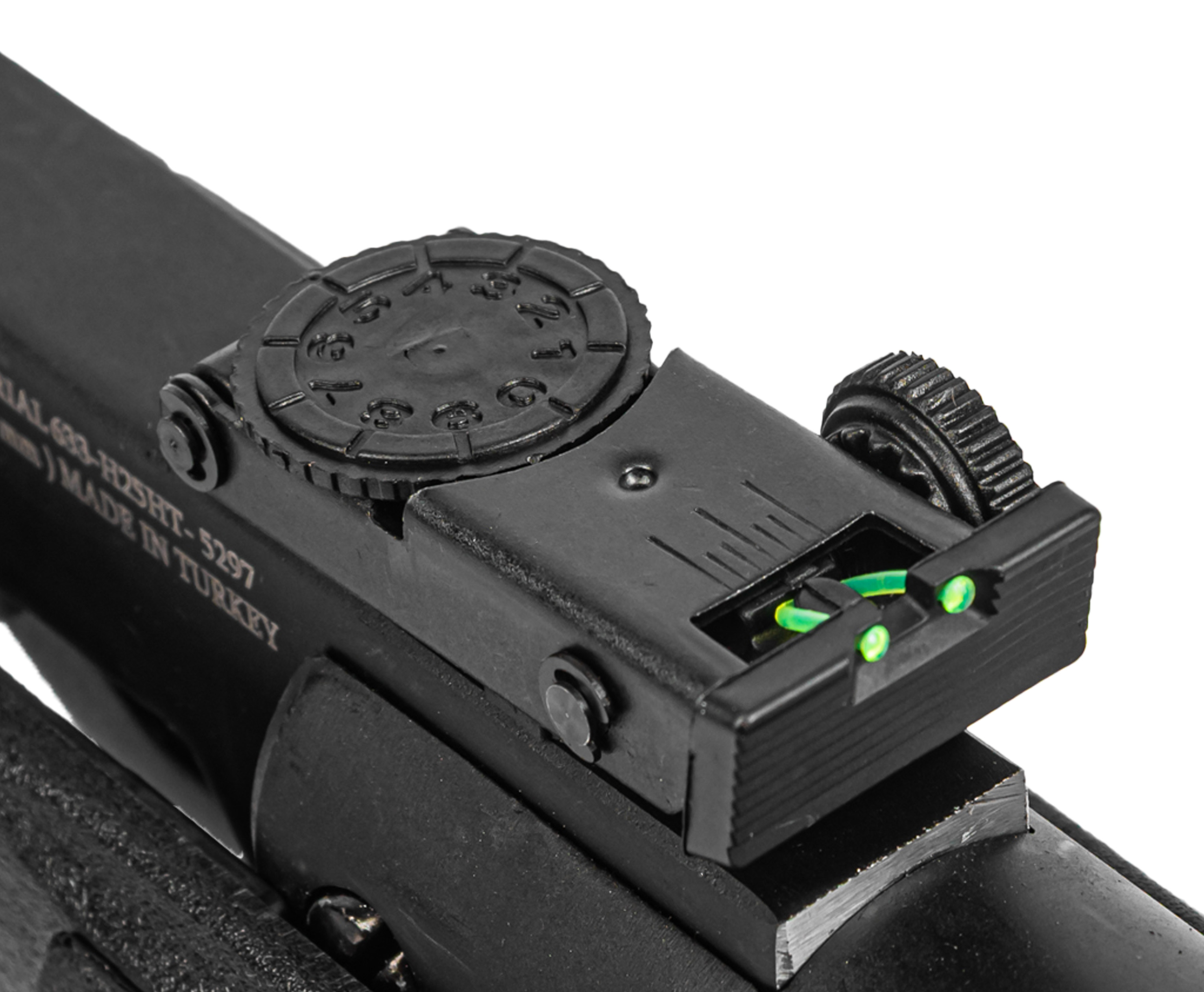 В полной мере раскрыть потенциал кучности поможет комплектная оптика, которая поставляется в паре с посадочными кольцами для монтажа. Крепеж совместим со штатной направляющей планкой «Ласточкин хвост» 11 мм. Для любителей классических приспособлений остается доступ к открытой мушке и регулируемому целику - оформление светоотражающими вставками сделало наведение еще более комфортным.