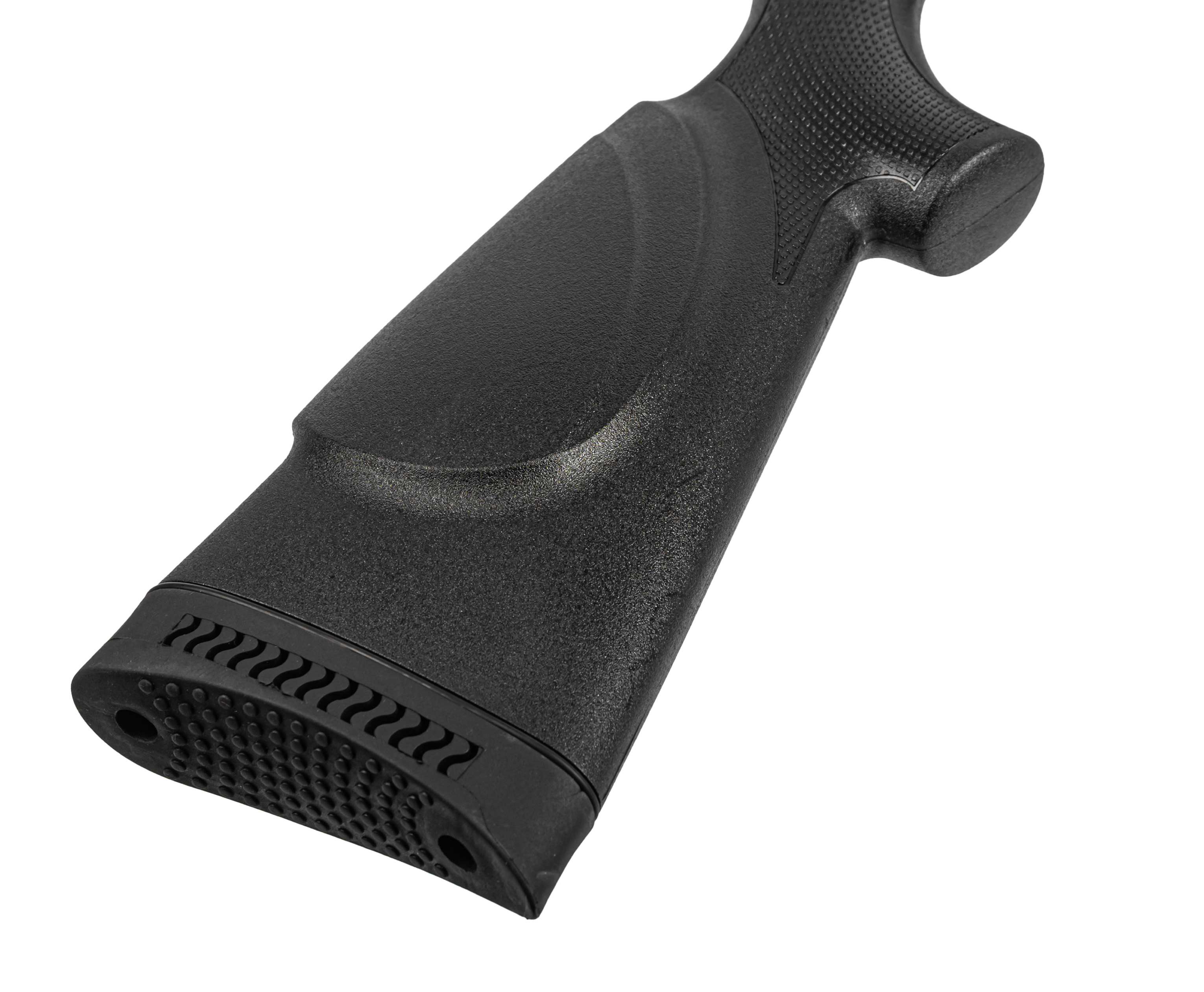 Предохранитель внесен в спусковую скобу - манипуляции с ним осуществляются указательным пальцем, что положительно сказывается на удобстве обращения. Соблюсти корректную вкладку поможет амбидекстральный приклад с резиновым амортизирующим тыльником. Фурнитура винтовки выполнена из пластика, ввиду чего масса изделия осталась в пределах 2.9 кг.
