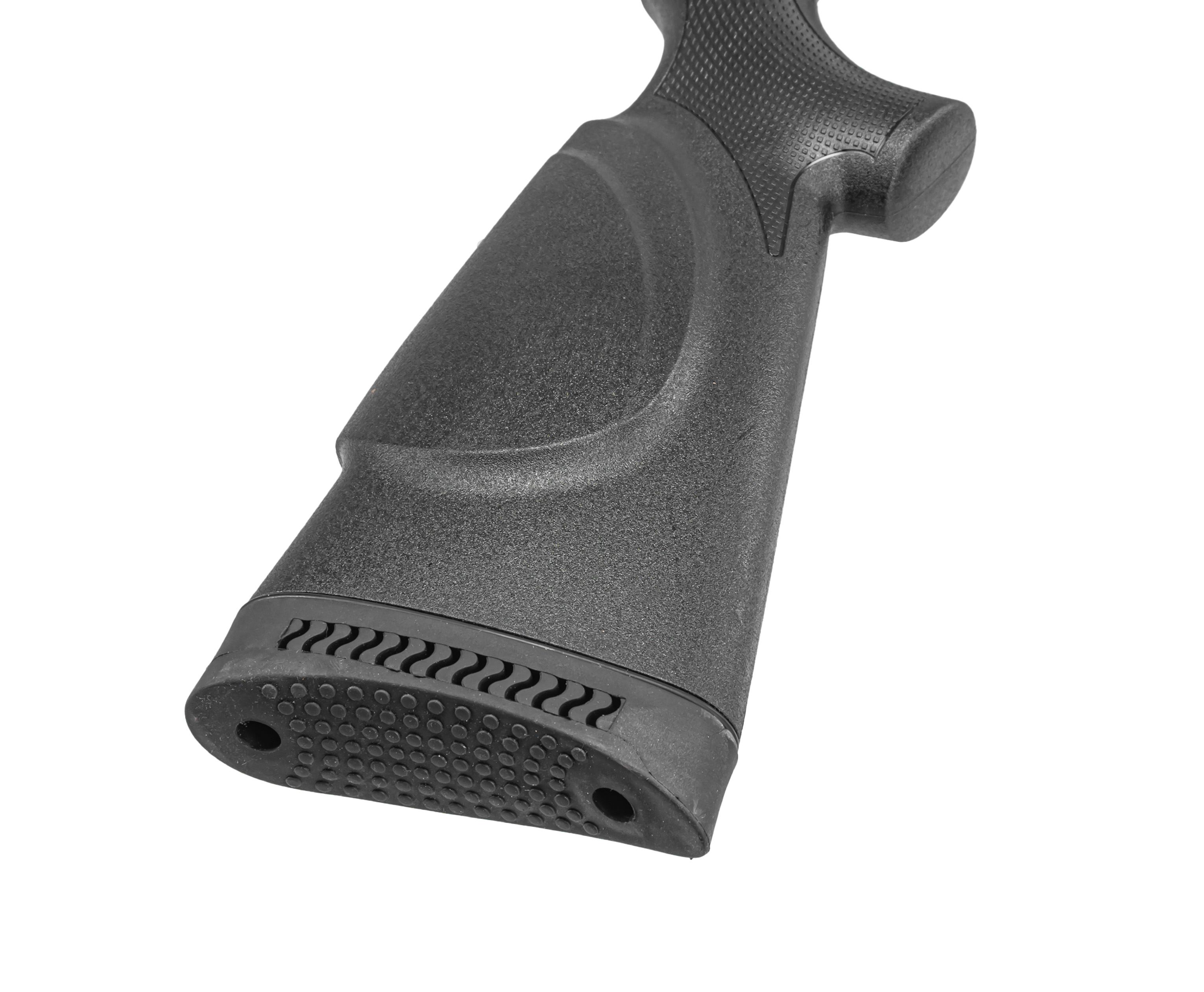 Винтовка Вега получилась легкой и прикладистой, чему способствует внедрение эргономичной пластиковой фурнитуры. Заявленная масса пневматики не превышает 2.7 кг, а условия для комфортного удержания для правши и левши создает плечевой упор с амбидекстральной щекой. Плотную вкладку, в свою очередь, обеспечивает резиновый амортизирующий затыльник.