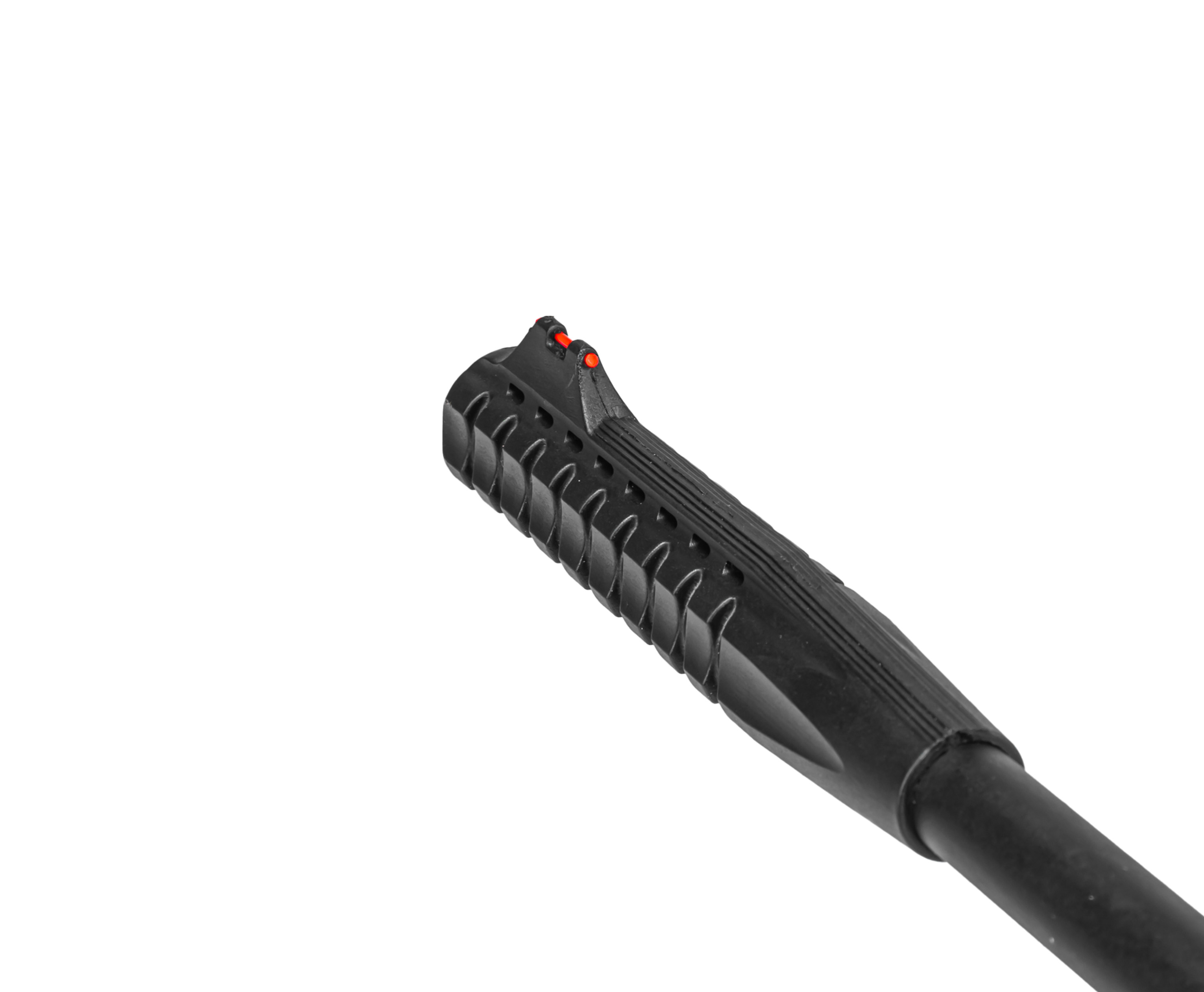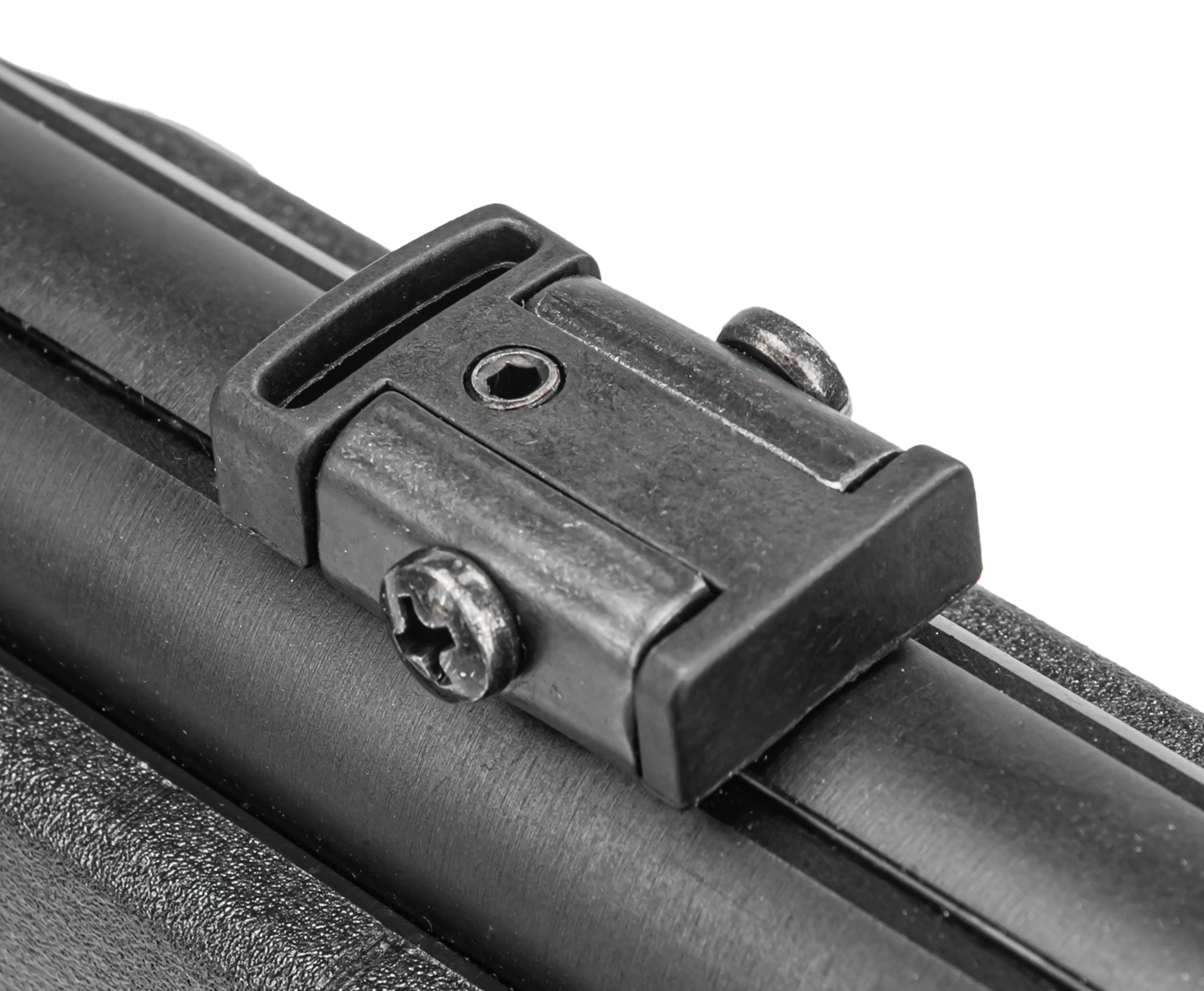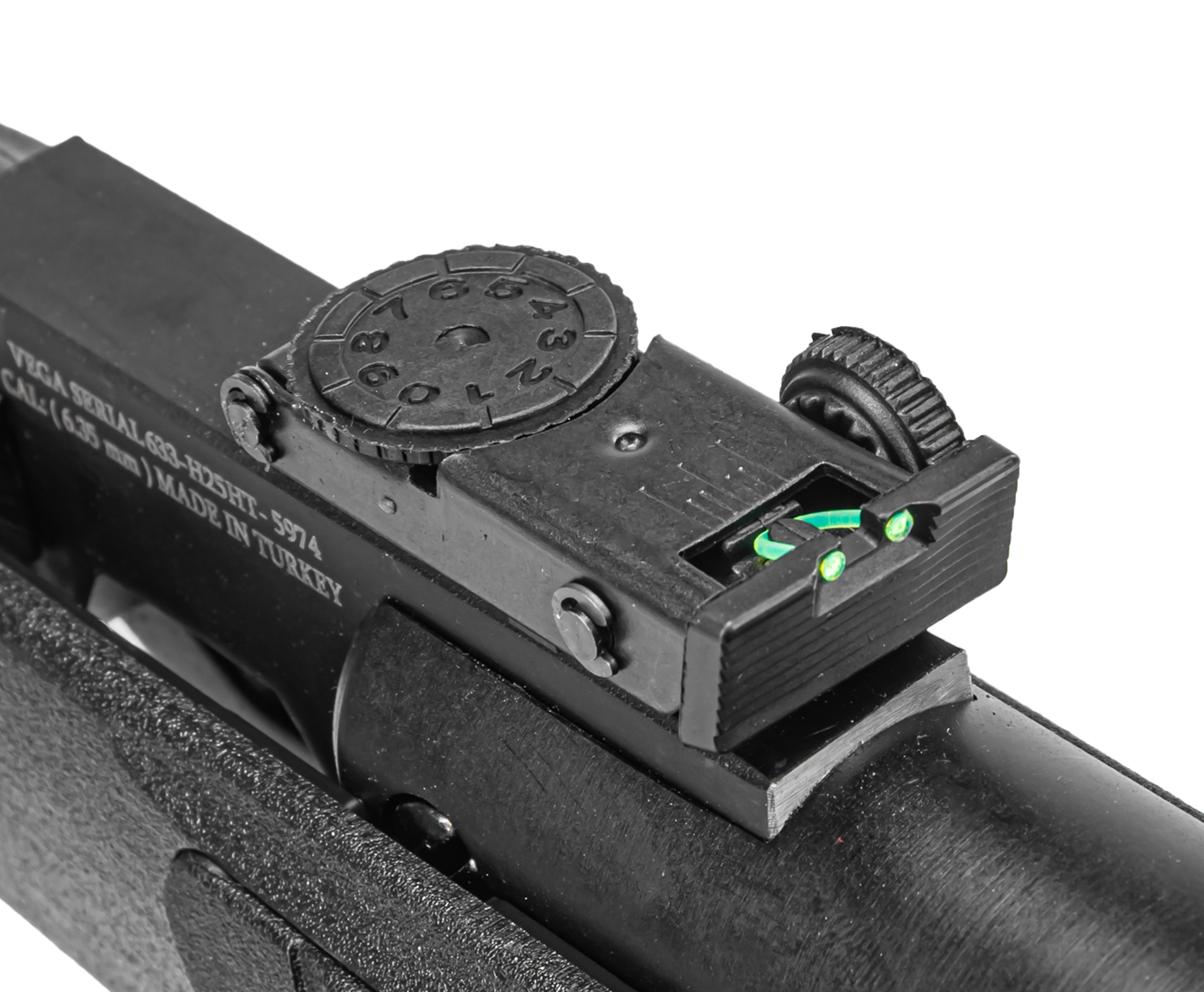 С завода пневматика оснащается классическими открытыми приспособлениями в виде мушки и целика. Последний предусматривает настройку по двум осям, а для лучшей заметности элементы дополнены светоотражающими вставками. Вдобавок к этому винтовка выделяется наличием направляющей «Ластохвост», на которую по усмотрению будущего владельца устанавливается оптика на совместимых кольцах.