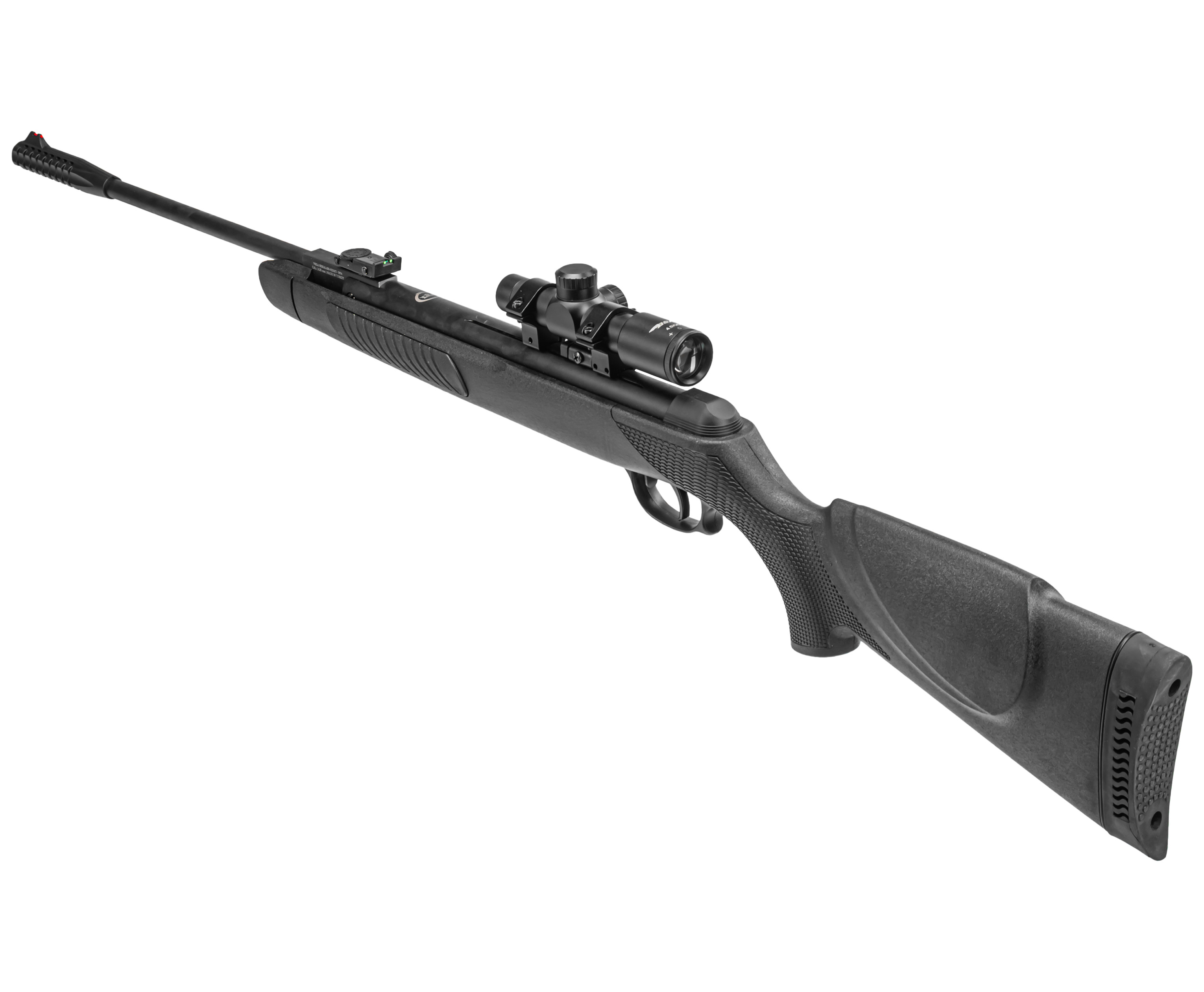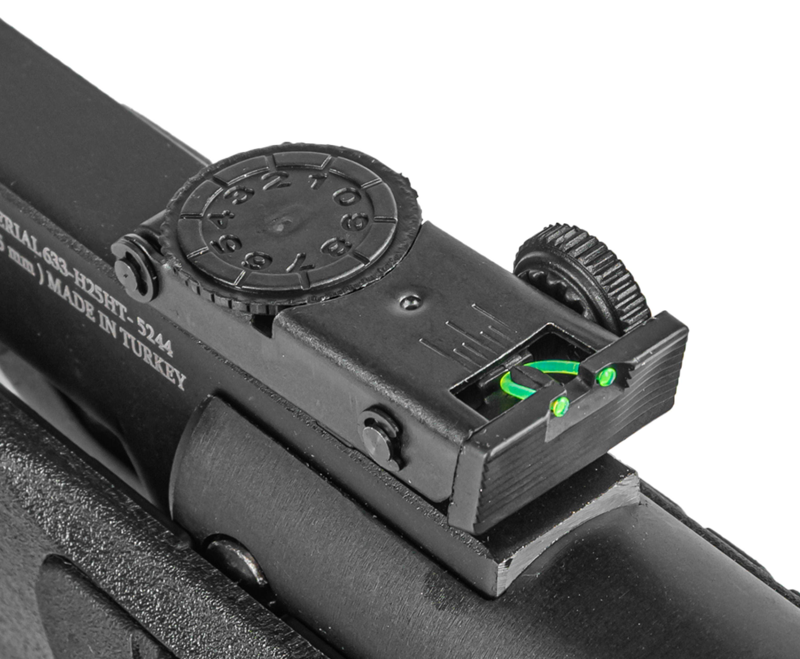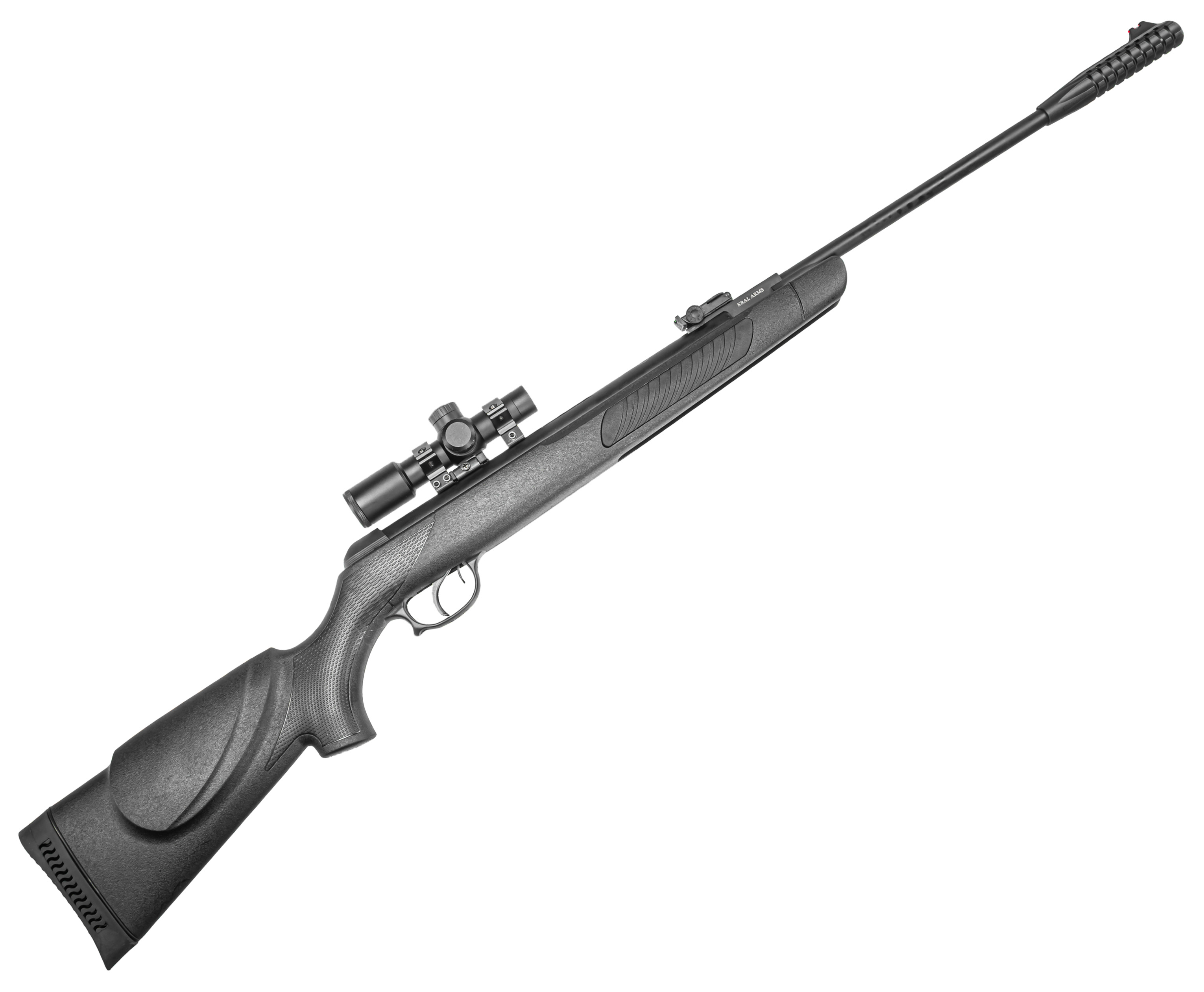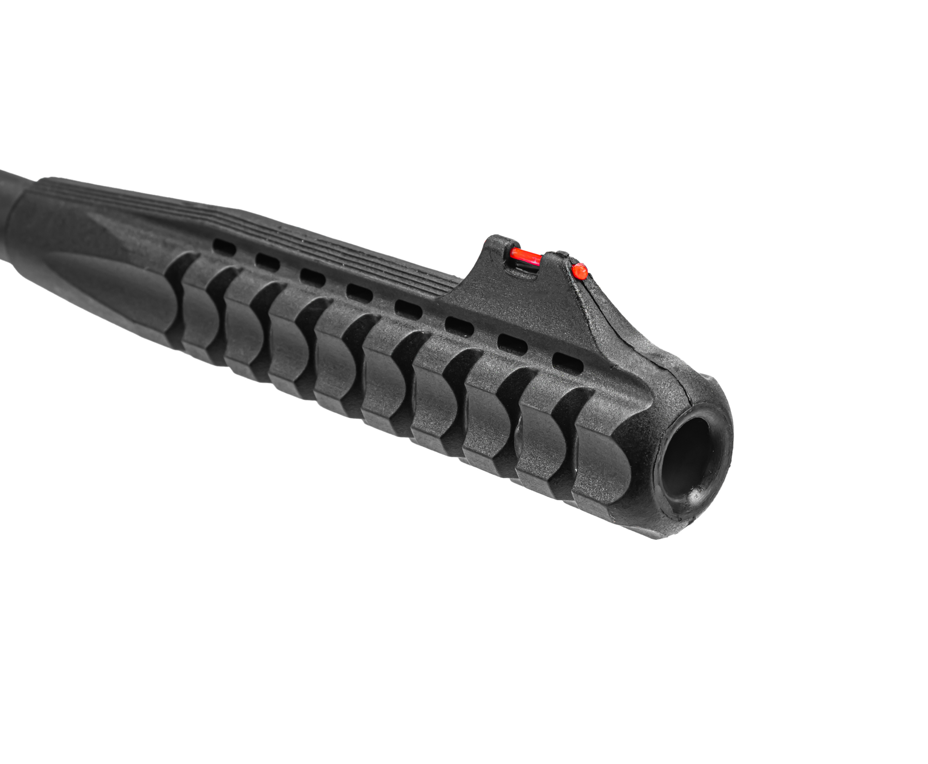 С завода пневматика оснащается классическими открытыми приспособлениями в виде мушки и целика. Последний предусматривает настройку по двум осям, а для лучшей заметности элементы дополнены светоотражающими вставками. Вдобавок к этому винтовка выделяется наличием направляющей «Ластохвост», на которую по усмотрению будущего владельца устанавливается оптика на совместимых кольцах.