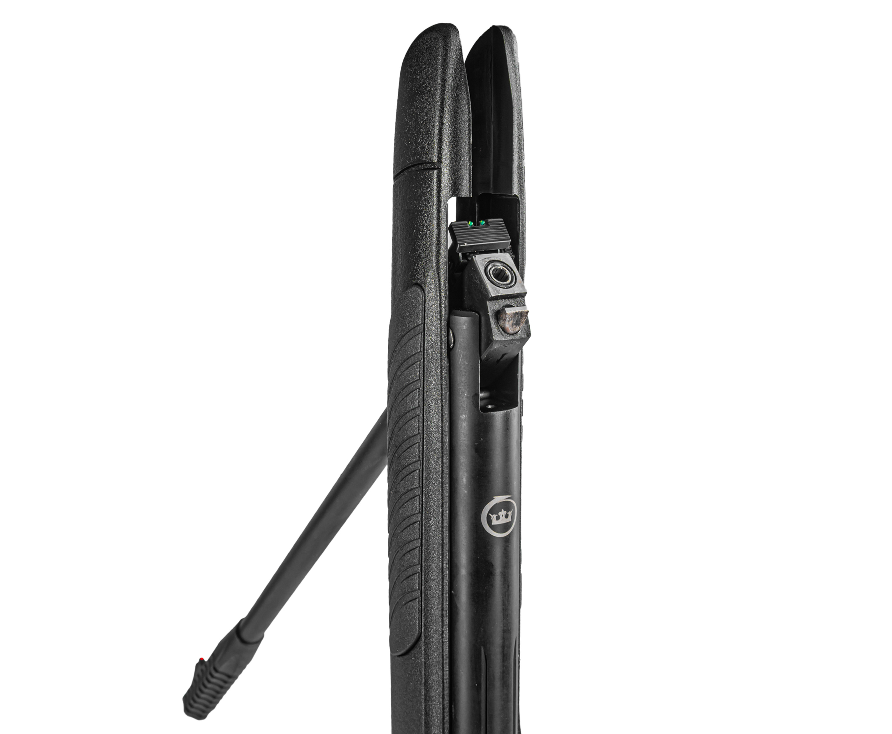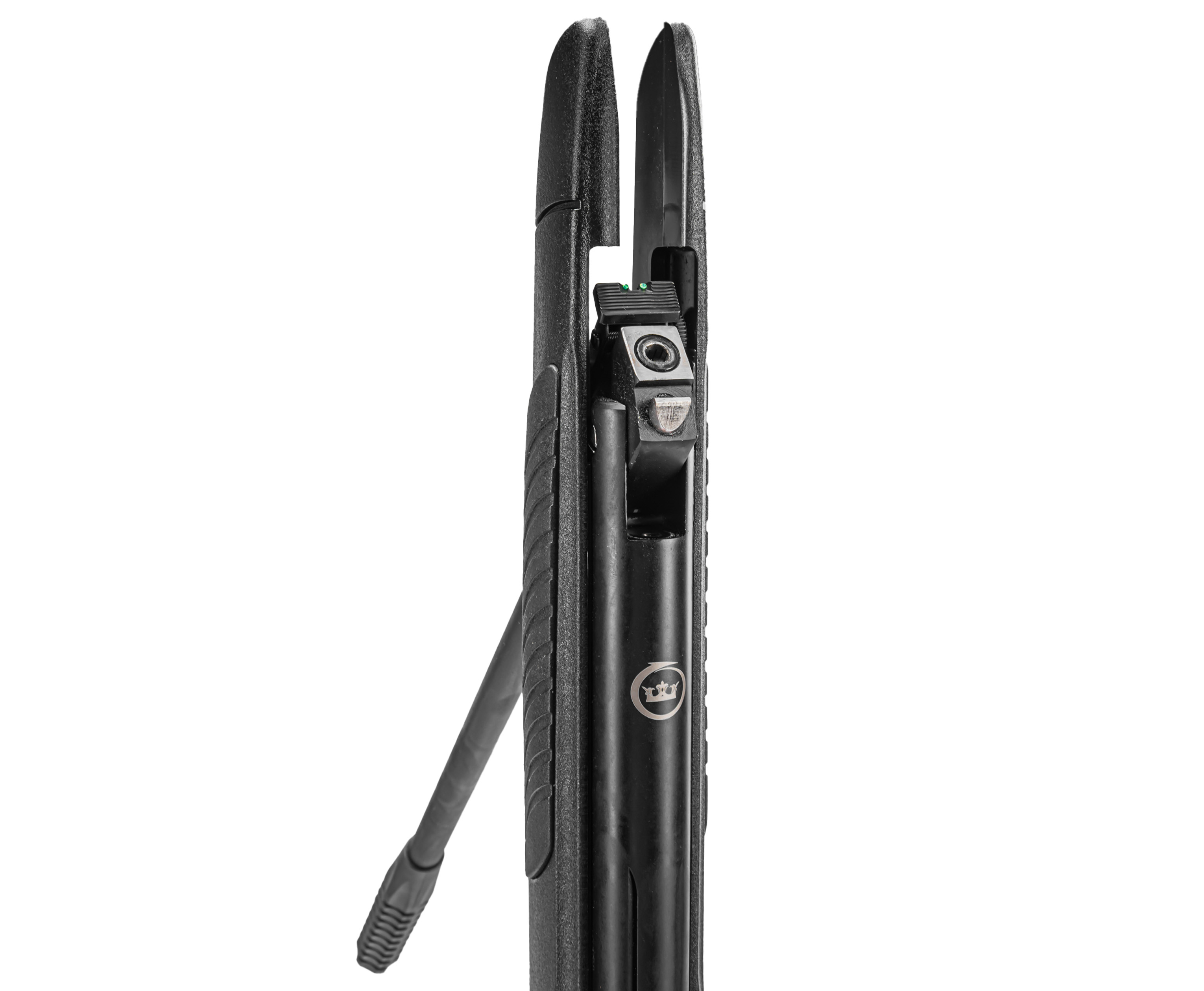 Пневматическая винтовка Kral 6.35 мм предполагает функционирование в одиночном режиме. Взведение оружия происходит путем «переламывания» ствола в его основании, для чего понадобится задействовать свободную руку и обхватить дульник. После смещения бланка раскрывается казенник для ручного досылания боеприпаса.
