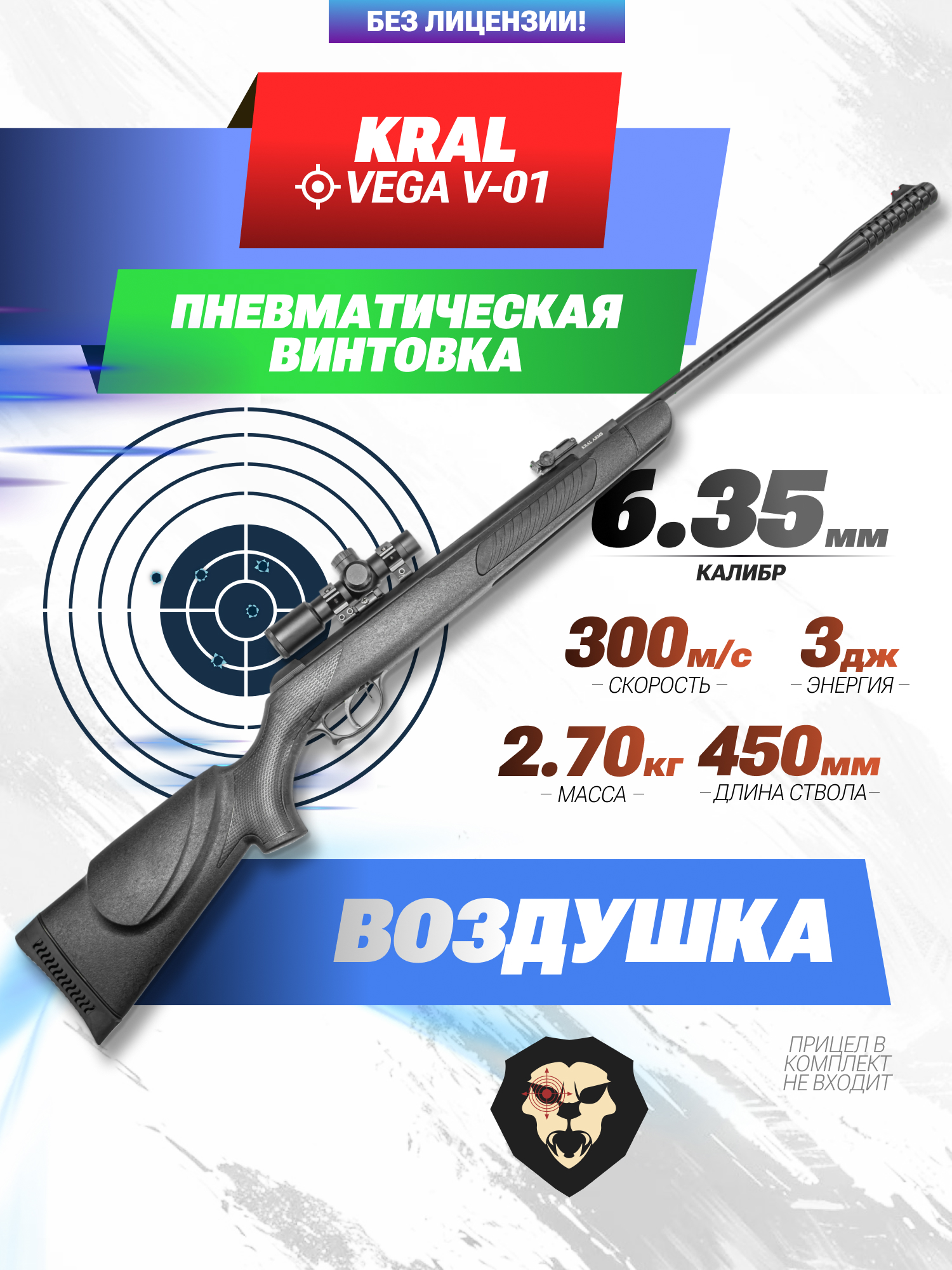 Пневматическая винтовка Kral Vega V-01 6.35 мм (пластик) купить в интернет-магазине Popadiv10.