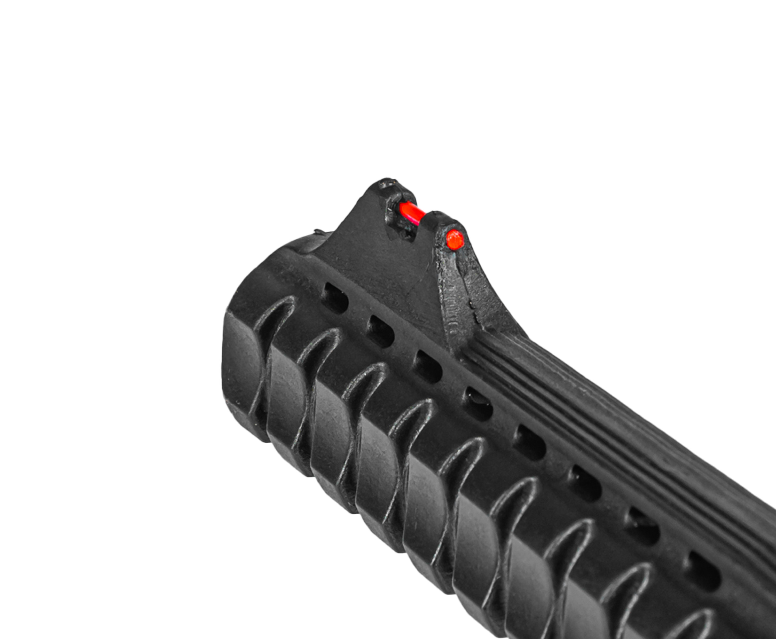 Вернув ствол в исходное положение, пневматика выставляется на предохранитель - переключатель для снятия внесен внутрь скобы для удобства. Нажатием на триггер пружина распрямляется и давит на поршень, вследствие чего происходит компрессия воздуха, который попадает в канал ствола и выталкивает снаряд. Наведение на мишень выполняется при помощи механических открытых приспособлений с цветовой индикацией - чтобы повысить точность, можно смонтировать оптику на кольцах, совместимых с планкой «Ластохвост».
