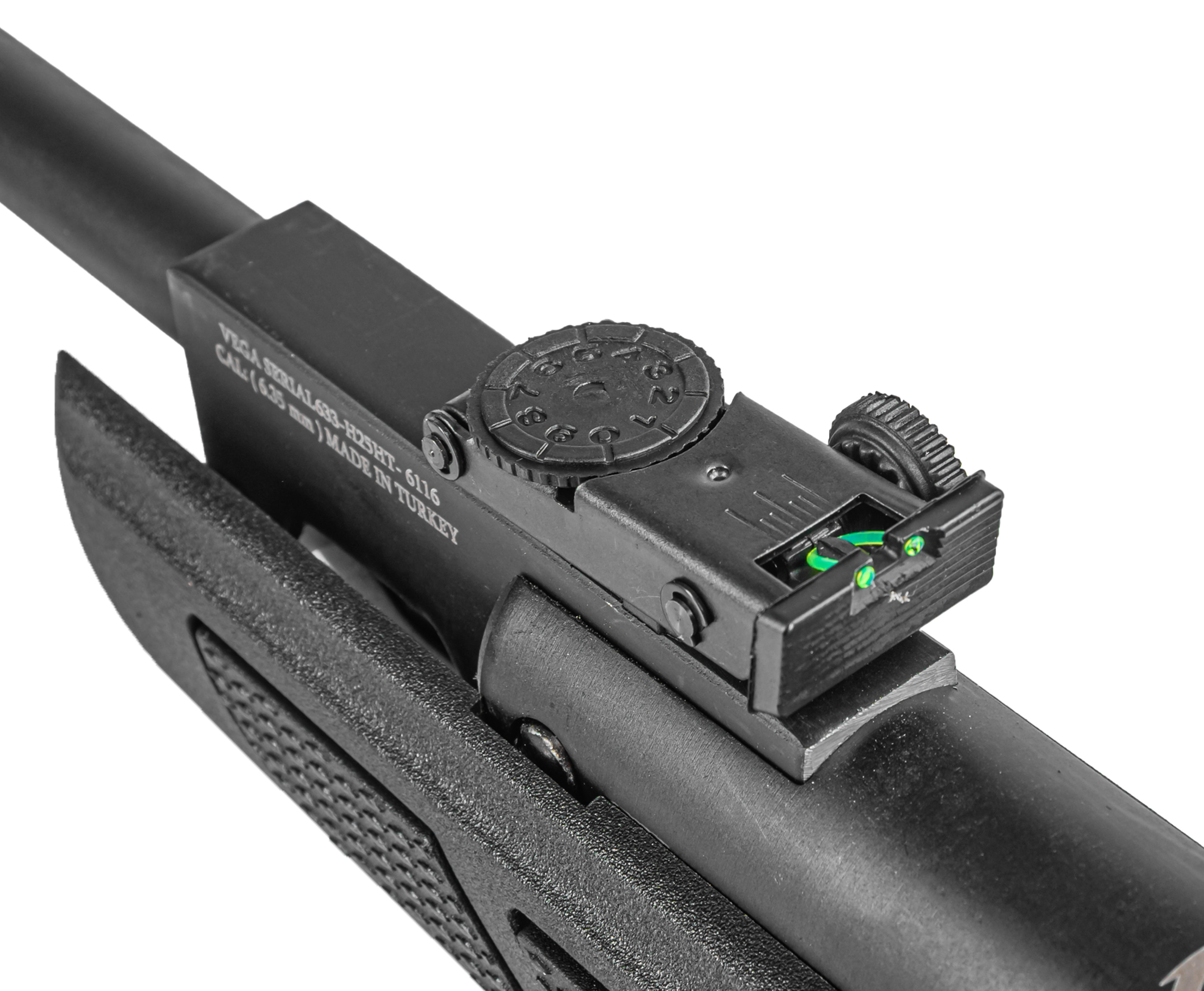 Расширяя линейку пружинно-поршневой пневматики, компания выпустила винтовки Vega. Рассматриваемая модель V-06 в первую очередь обращает на себя внимание благодаря ортопедическому прикладу. Плечевой упор создает плотную комфортную вкладку в прицел за счет наличия подщечника, настраиваемого по высоте, и резинового амортизирующего затыльника. Так как ложа выполнена из полимера, дополнительно удалось сократить вес оружия до 2.83 кг.
