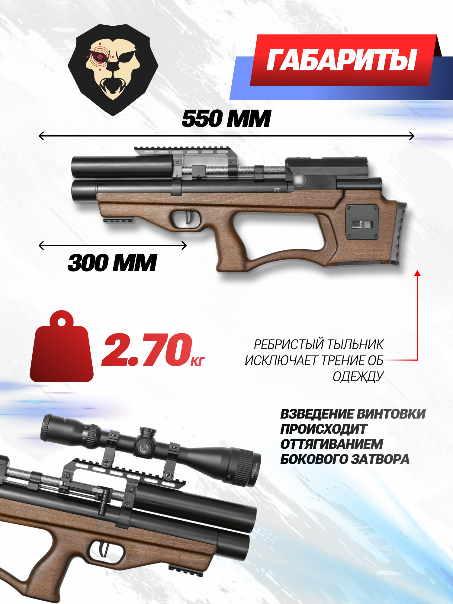 Пневматическая винтовка Krugergun 5.5 мм Снайпер Bullpup (300 мм, передний взвод, редуктор, высокий мостик, дерево) купить в интернет-магазине Popadiv10.