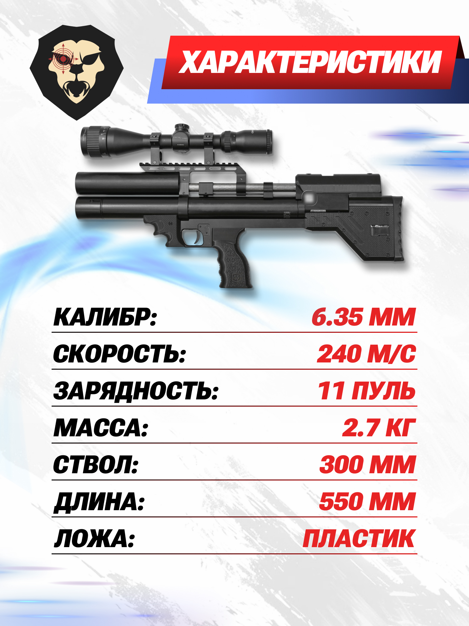 Информация о товаре "Пневматическая винтовка Krugergun 6.35 мм Снайпер Bullpup (300 мм, передний взвод, высокий мостик, пластик, редуктор)" носит ознакомительный характер, и не является публичной офертой, определяемой положениями Статьи 437 Гражданского кодекса Российской Федерации, характеристики, внешний вид, цвет и комплектация могут быть изменены производителем без уведомления.