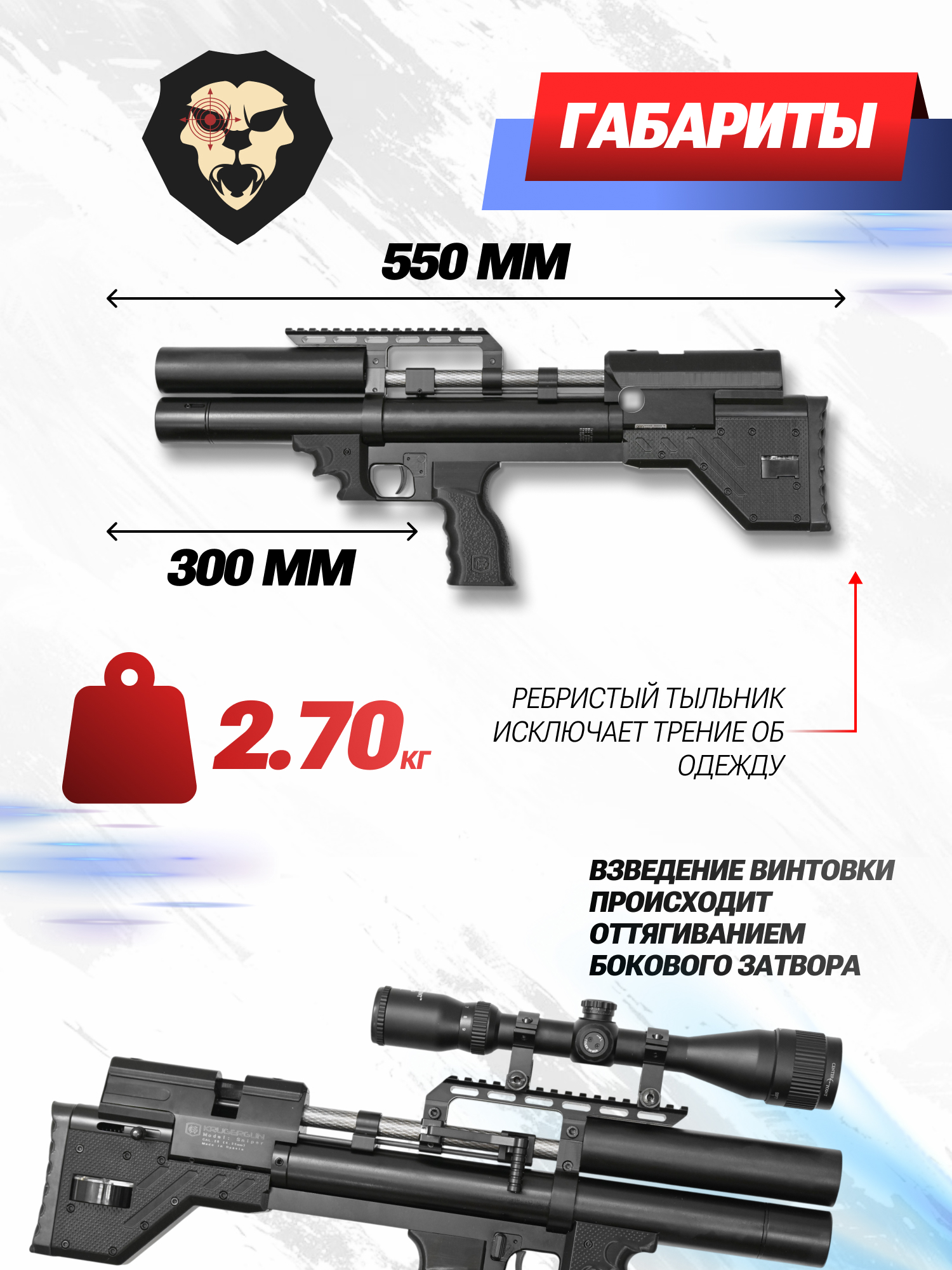 | Комплектация | Винтовка, упаковка, магазин, набор уплотнителей, заправочный штуцер, краткая документация, копия сертификата (по запросу покупателя) |