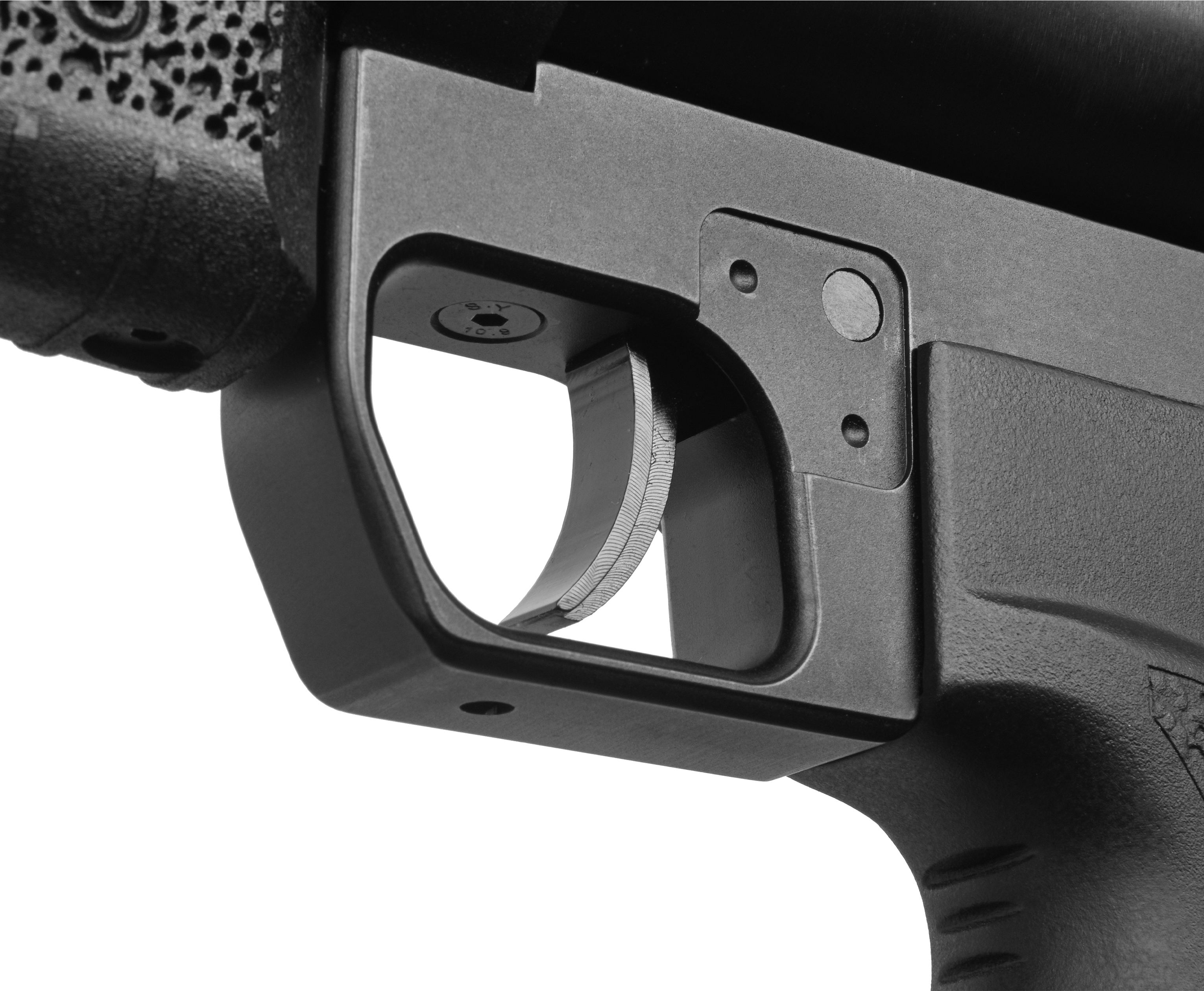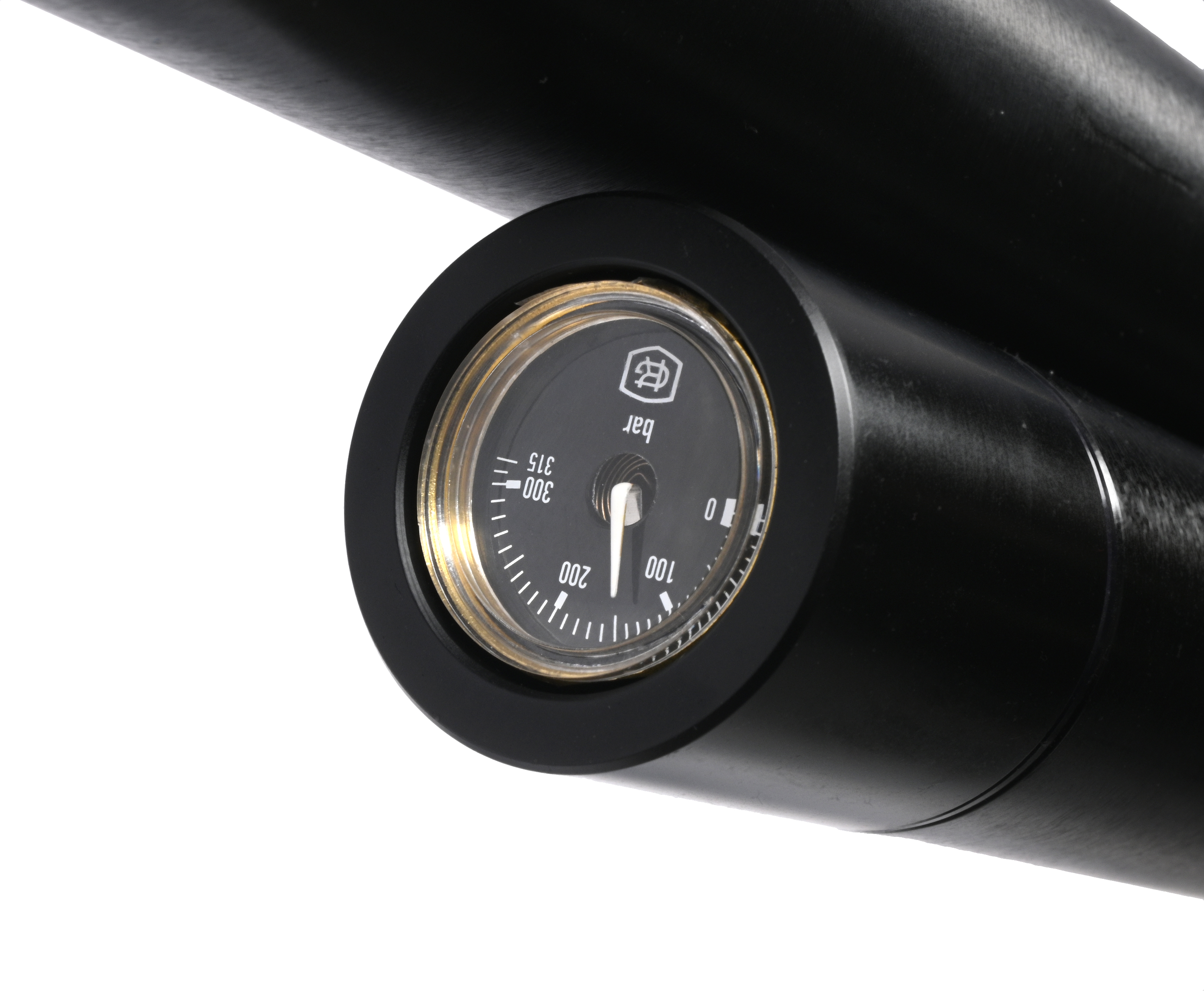 С торца баллона интегрирован манометр, на шкале которого отображается текущая степень заполнения системы. Эффективно накачать воздух в ресивер поможет специализированное компрессорное оборудование ВД, подключаемое к заправочному разъему через комплектный штуцер. На резервуаре у спусковой скобы при этом предусмотрена пластиковая накладка, формирующая цевье.