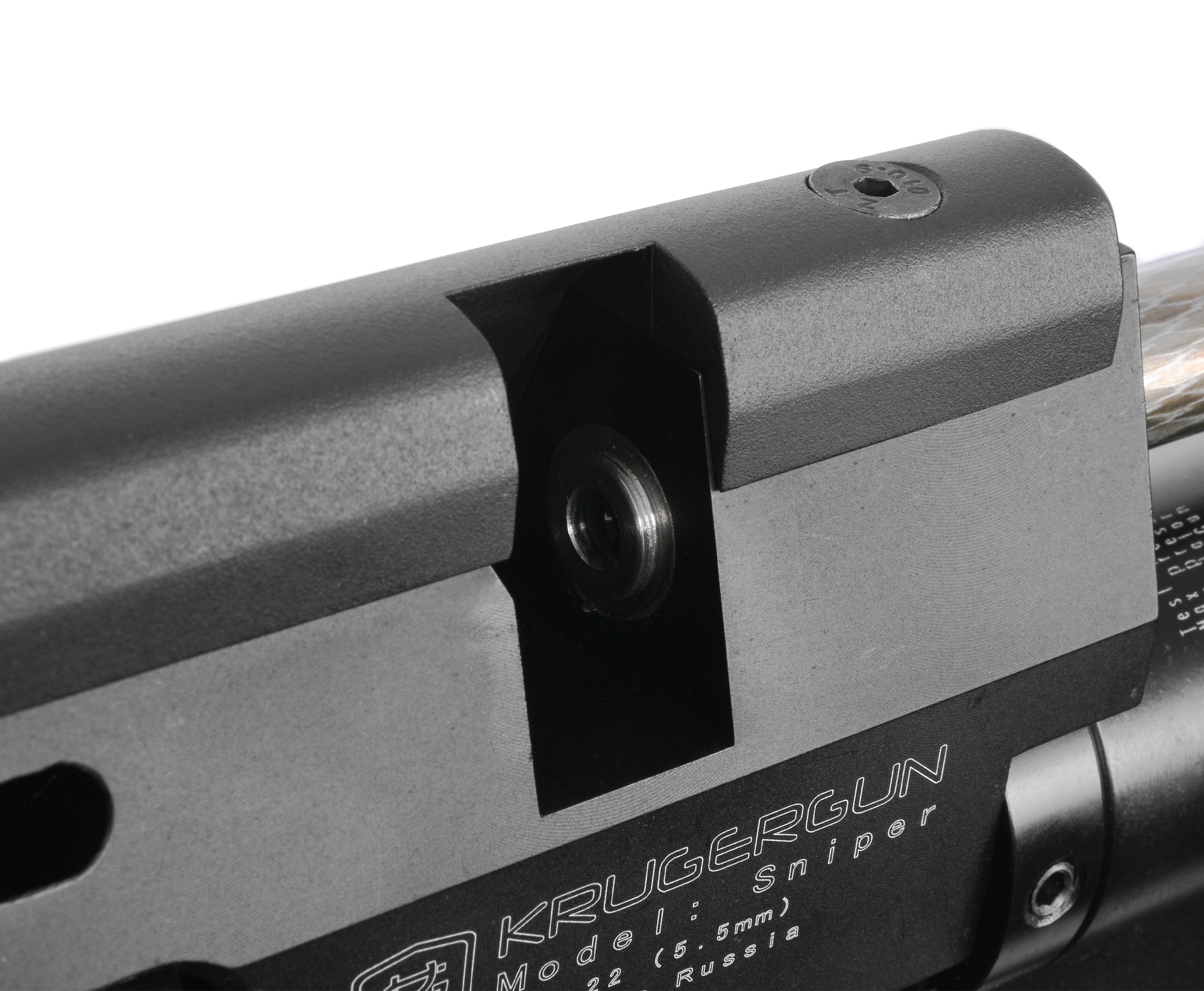 Пневматическая винтовка KrugerGun порадует точной и при этом почти бесшумной стрельбой. Это обуславливается интегрированным в ствол модератором, который приглушает резкость хлопка. В качестве боеприпасов задействуются воланчиковые пули калибром 5.5 мм - досылание оных происходит из 10-зарядного клип-барабана.