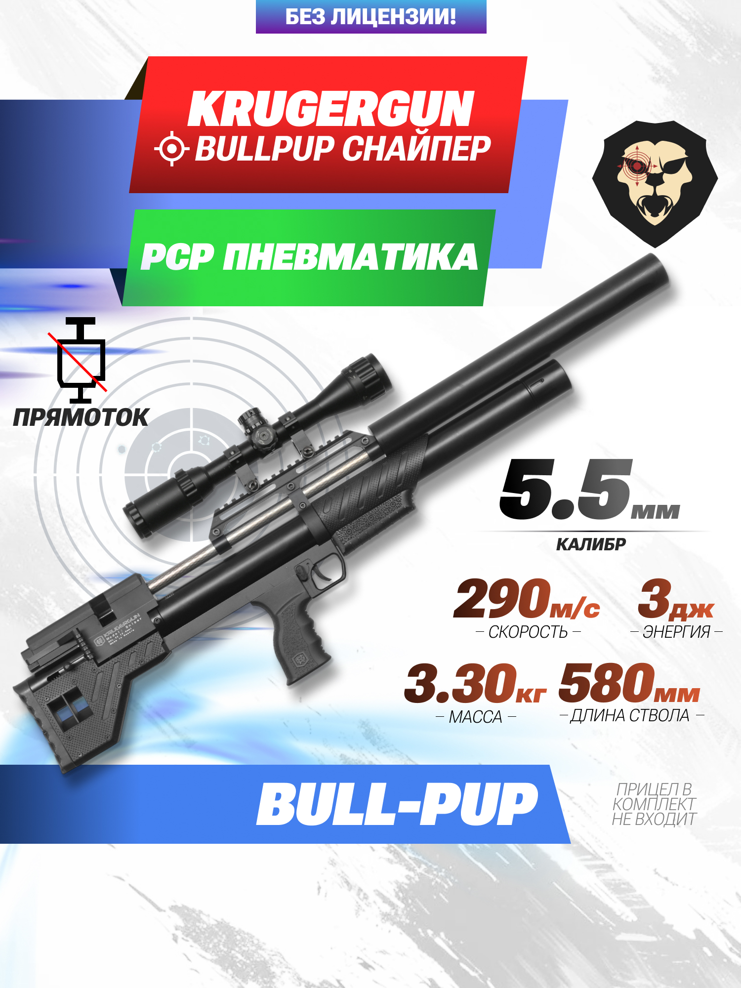Пневматическая винтовка KrugerGun Bullpup Снайпер 5.5 мм (580 мм, 510 резервуар, пластик, прямоток) купить в интернет-магазине Popadiv10.