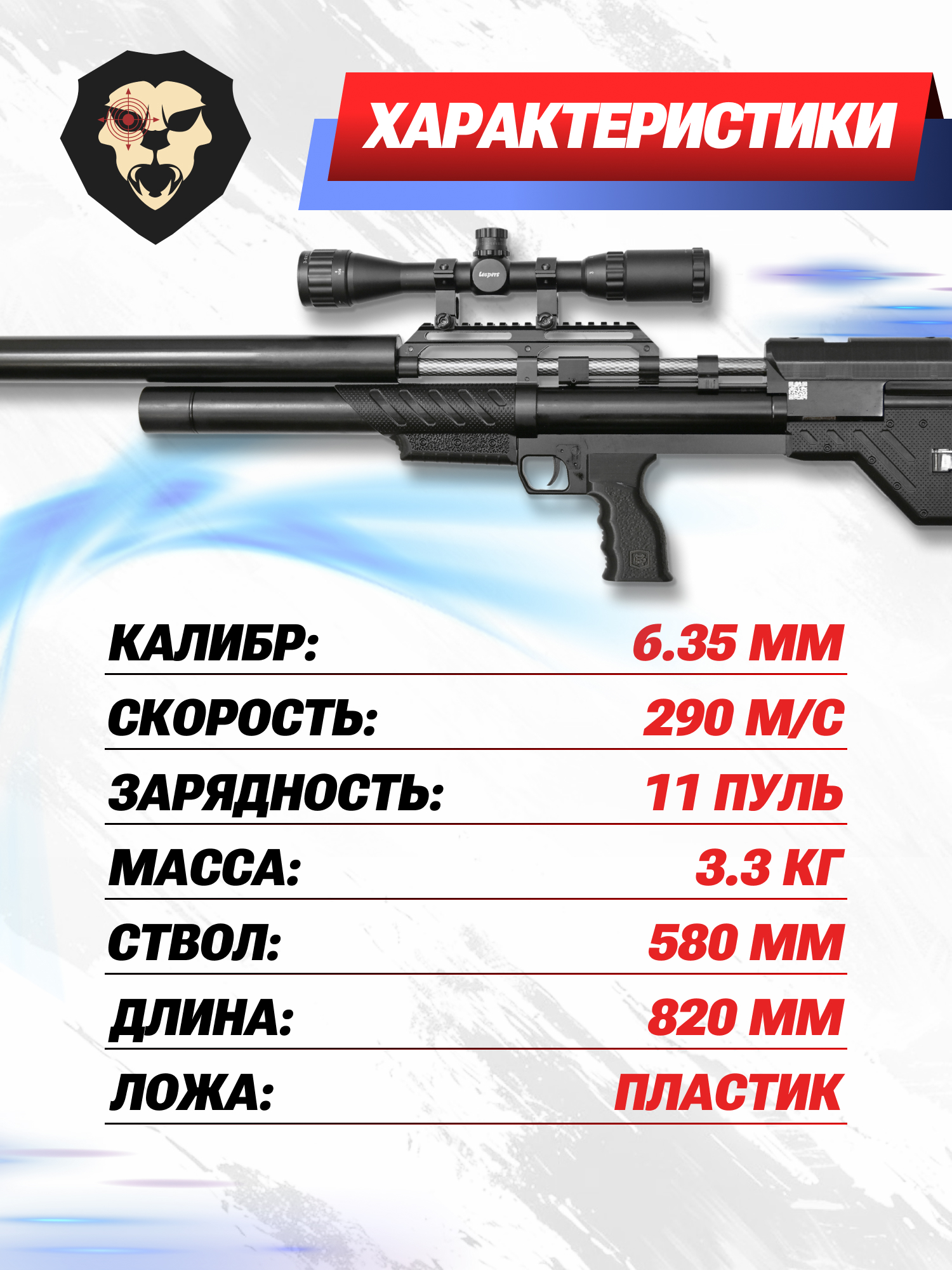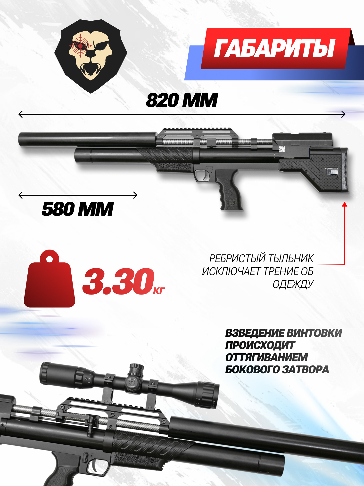 | Комплектация | Винтовка, упаковка, комплект уплотнителей, заправочный штуцер, магазин, краткая документация, копия сертификата (по запросу покупателя) |
