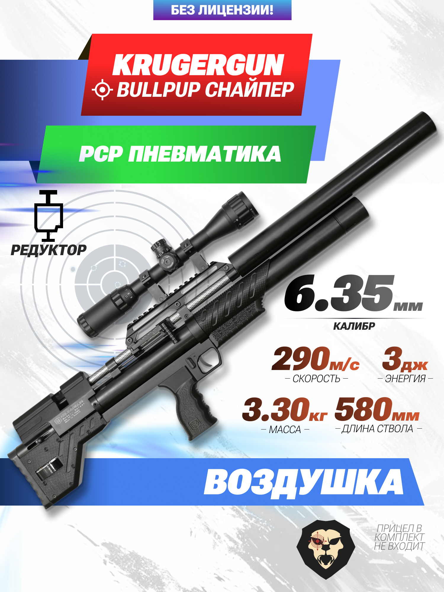 Пневматическая винтовка Krugergun Bullpup Снайпер 6.35 мм (580 мм, 510 резервуар, передний взвод, пластик, редуктор) купить в интернет-магазине Popadiv10.