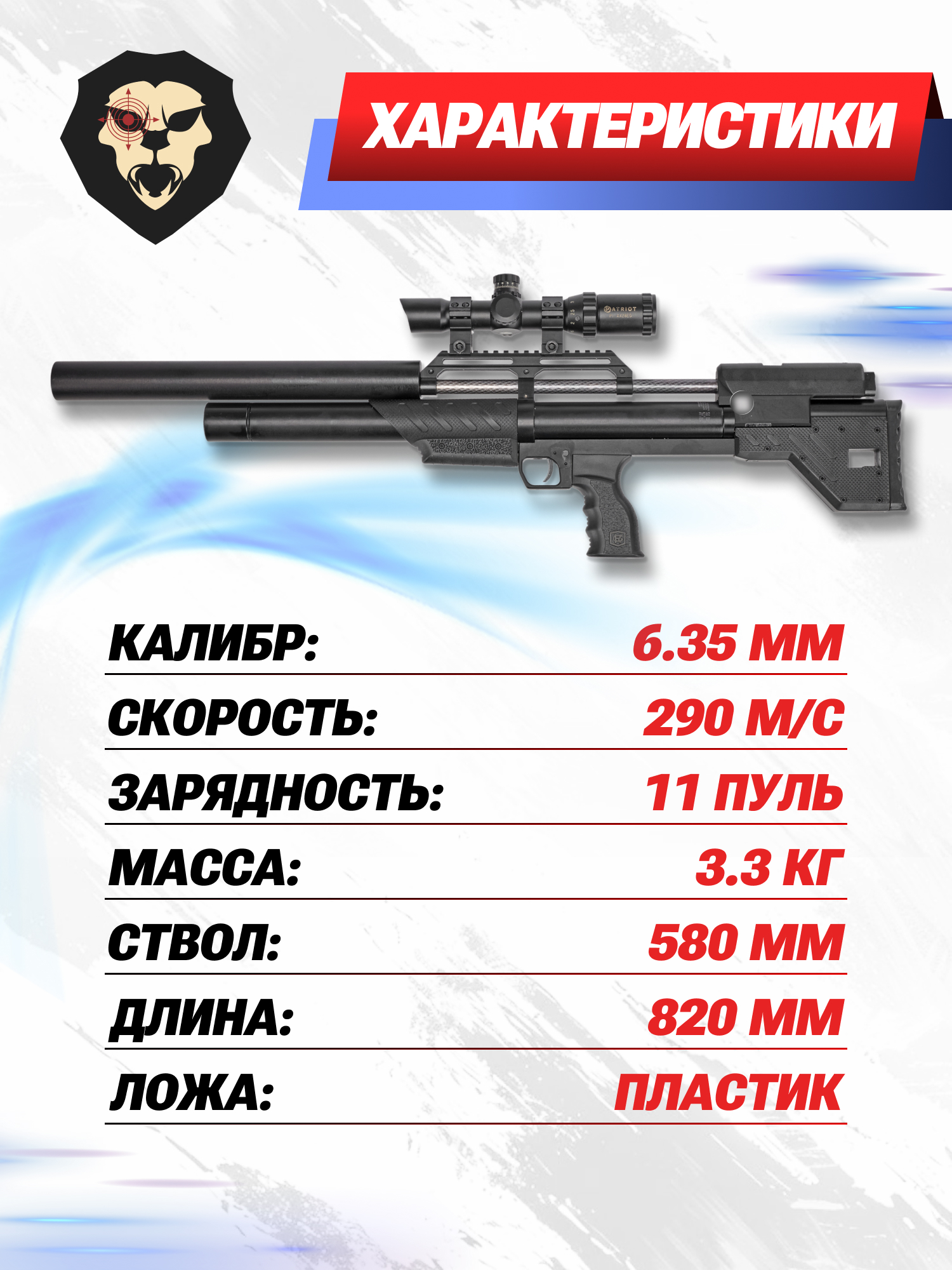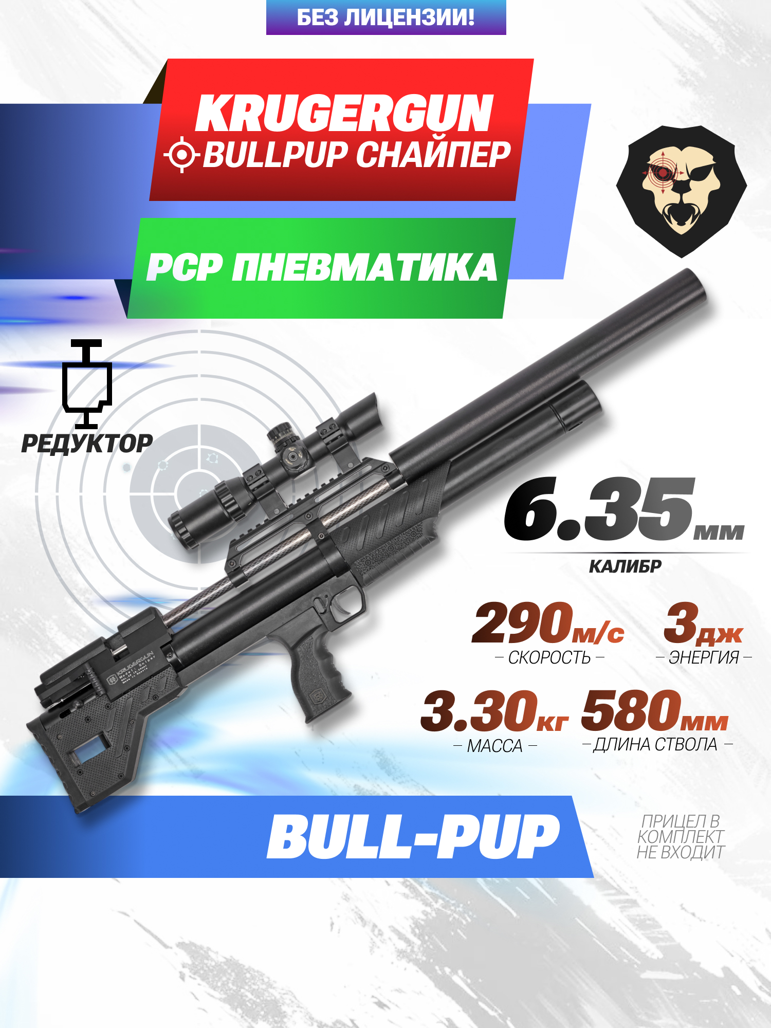 Пневматическая винтовка Krugergun Bullpup Снайпер 6.35 мм (580 мм, 510 резервуар, пластик, редуктор) купить в интернет-магазине Popadiv10.