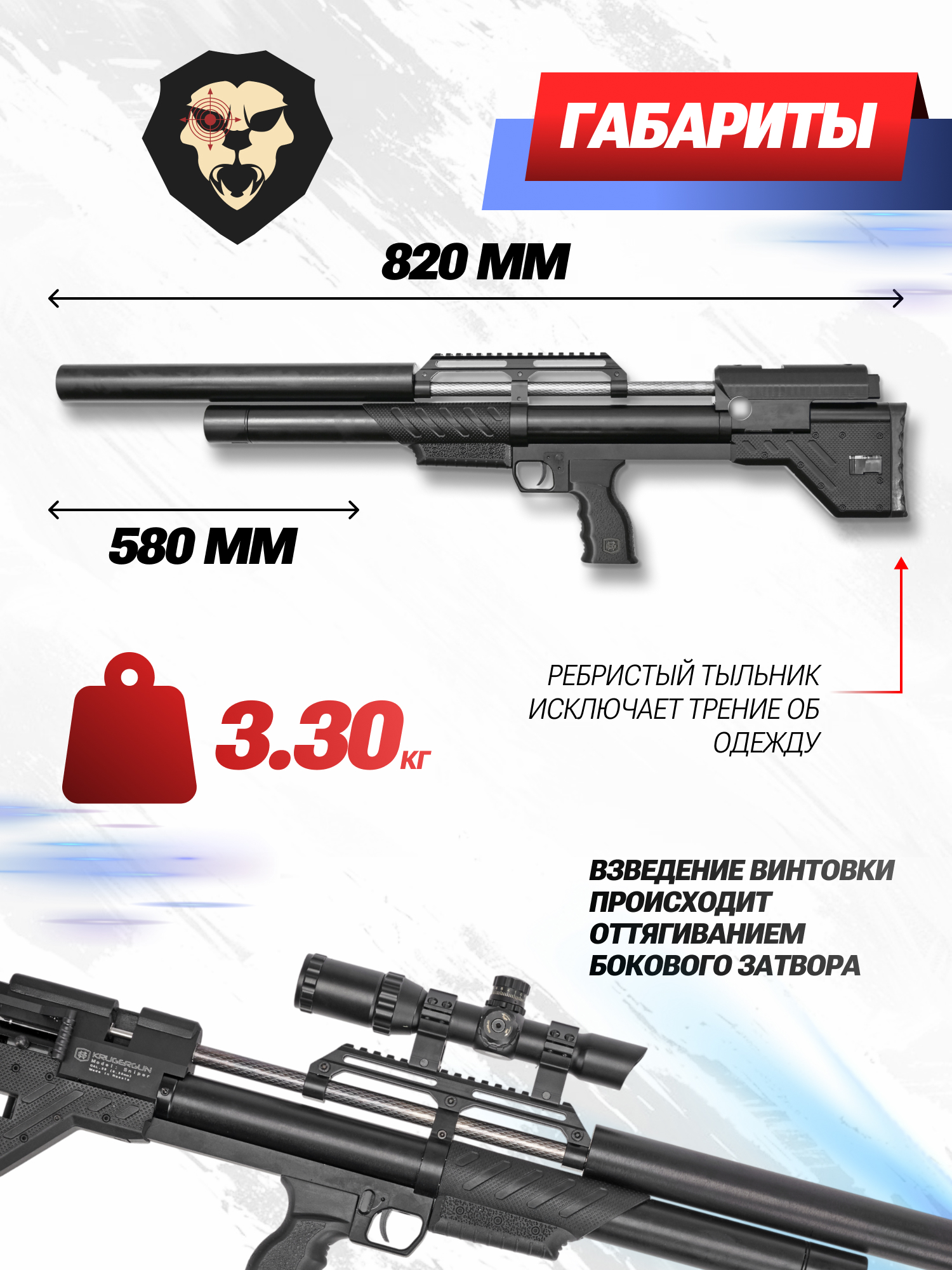 | Комплектация | Винтовка, упаковка, комплект уплотнителей, заправочный штуцер, магазин, краткая документация, копия сертификата (по запросу покупателя) |