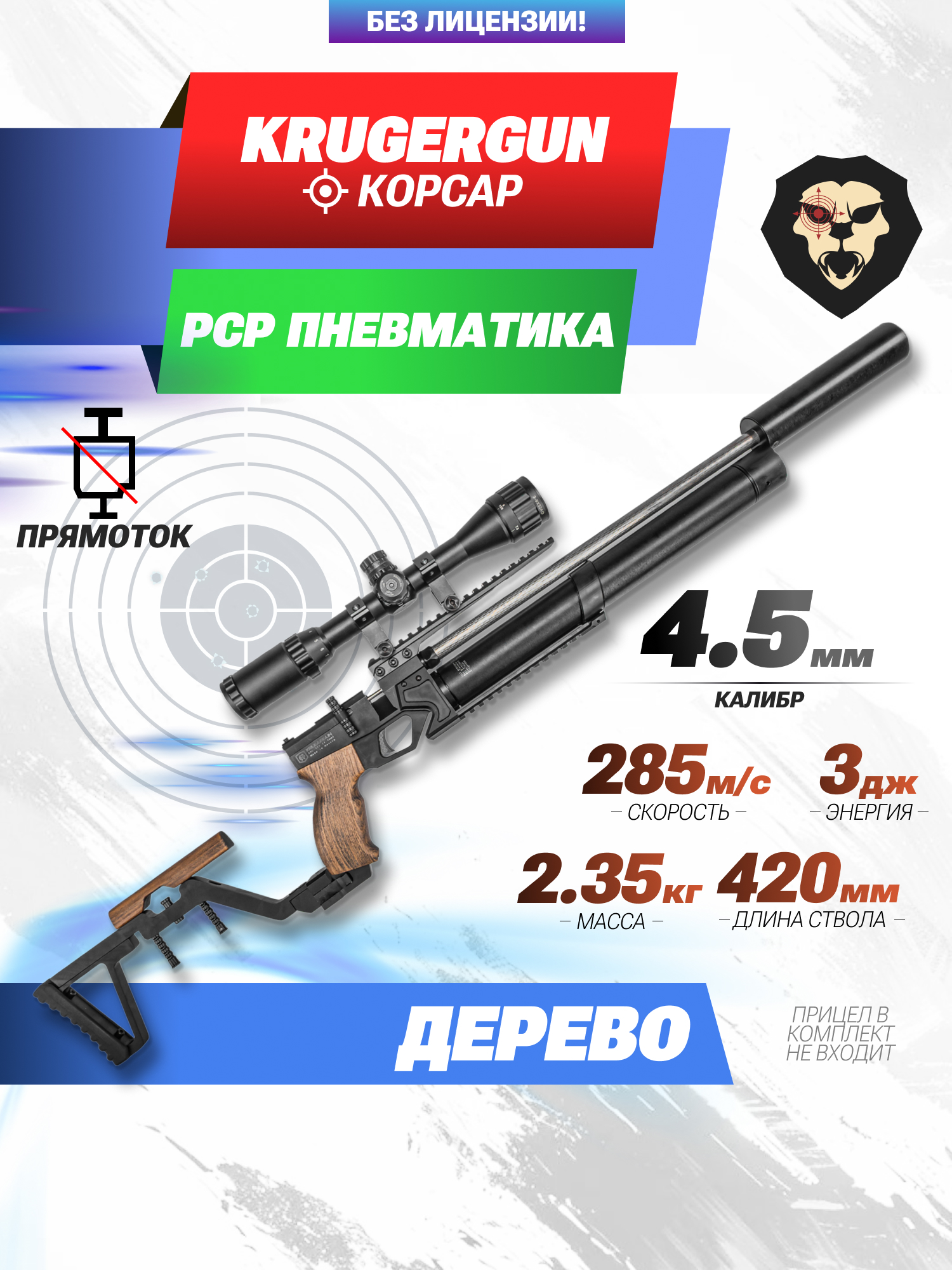 Пневматическая винтовка KrugerGun Корсар 4.5 мм (прямоток, 420 мм, дерево) купить в интернет-магазине Popadiv10.
