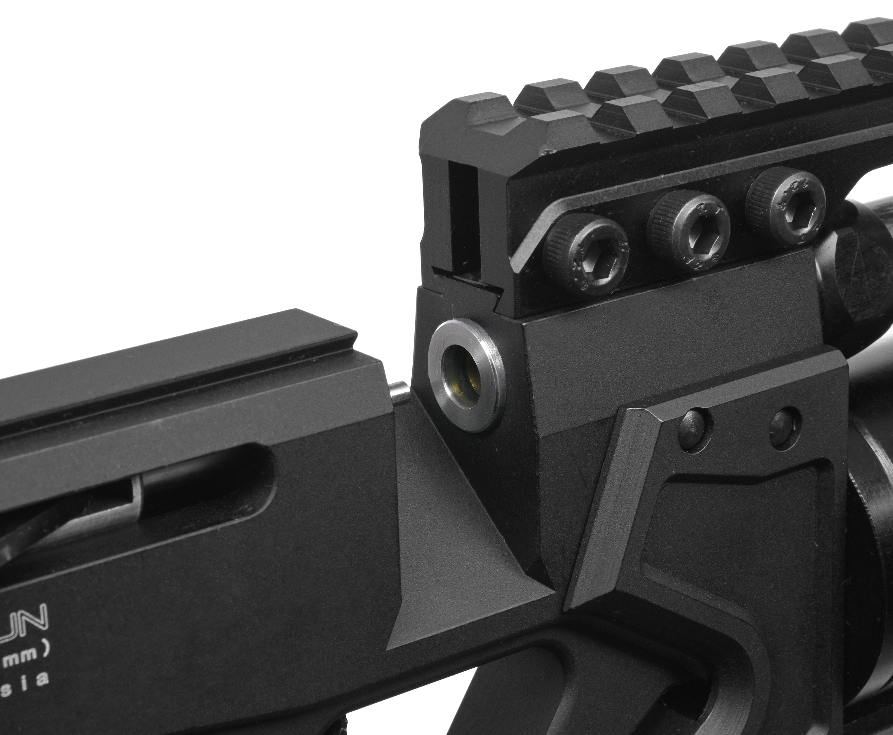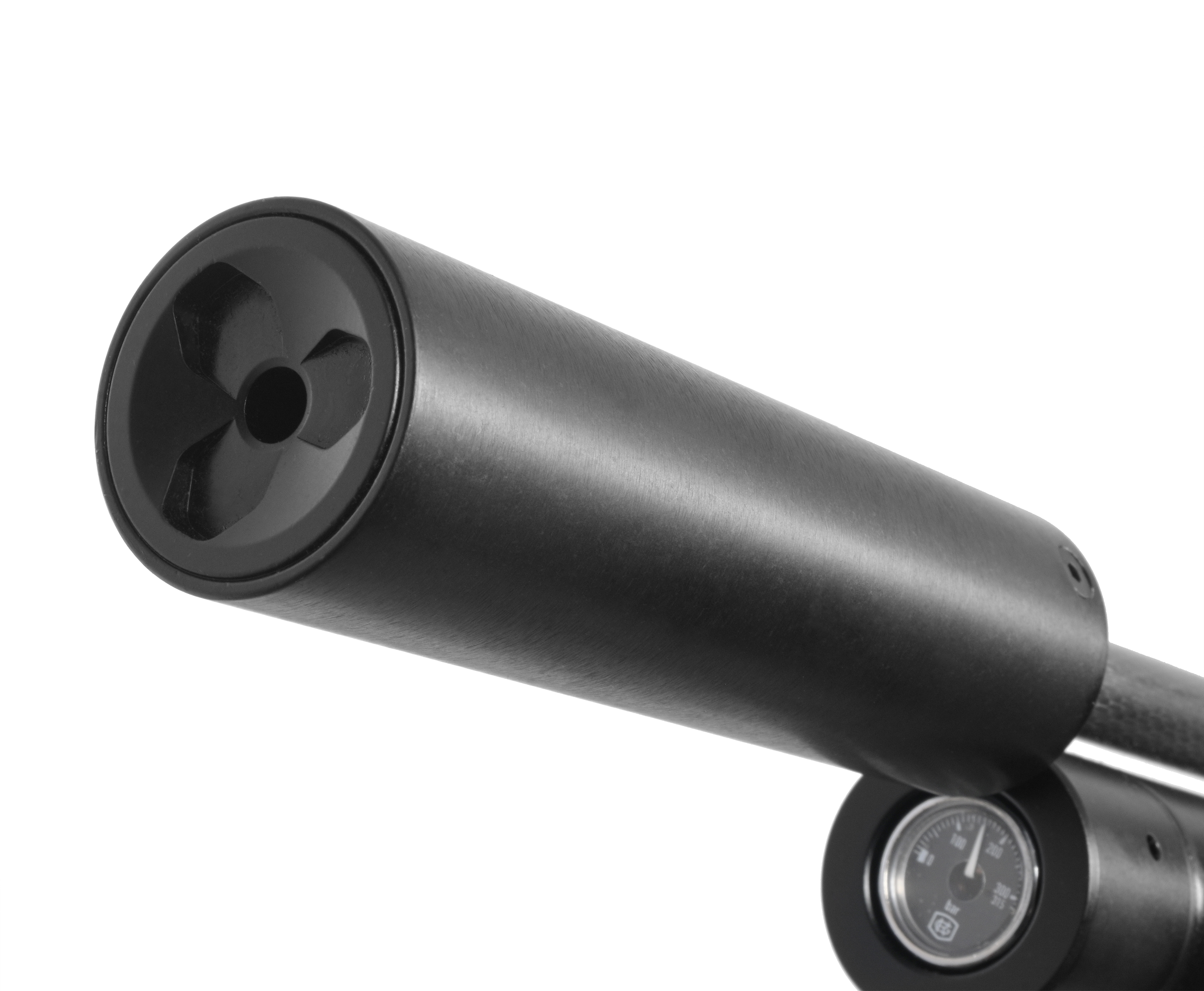 Рассматриваемая модель выпускается укомплектованная стальным стволиком Alfa Precision, который рассчитан на стрельбу воланчиковыми снарядами калибра 6.35 миллиметров. Кроме этого в комплекте с винтовкой поставляется саундмдератор, который устанавливается на 420-миллиметровый стволик, что положительно влияет на средние показатели СТП и делает выстрел беззвучным.