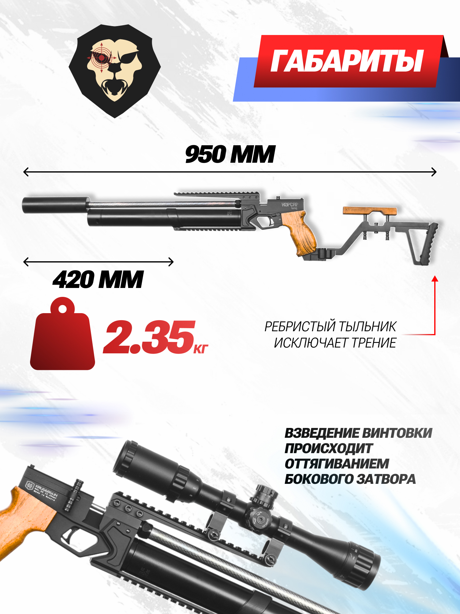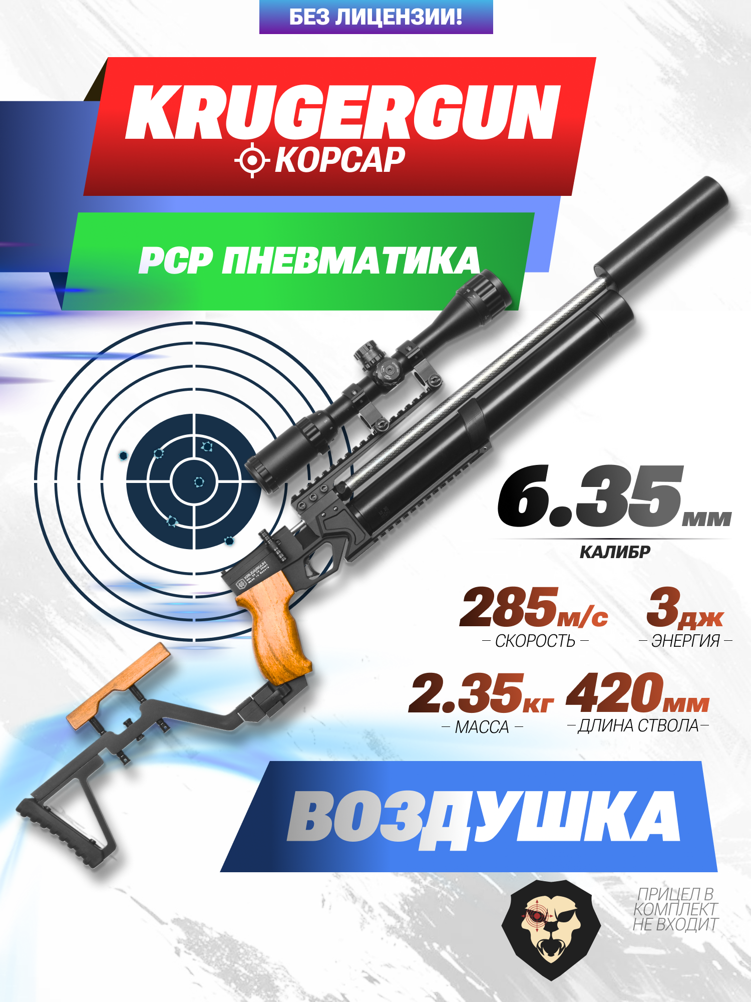 Пневматическая винтовка KrugerGun Корсар 6.35 мм (прямоток, 420 мм, дерево) купить в интернет-магазине Popadiv10.