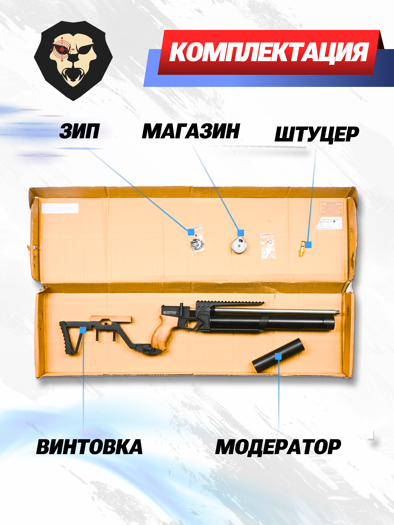 | Комплектация | Винтовка, магазин, съемный приклад, набор ЗИП, упаковка, заправочный штуцер, краткая документация, копия сертификата (по запросу покупателя) |