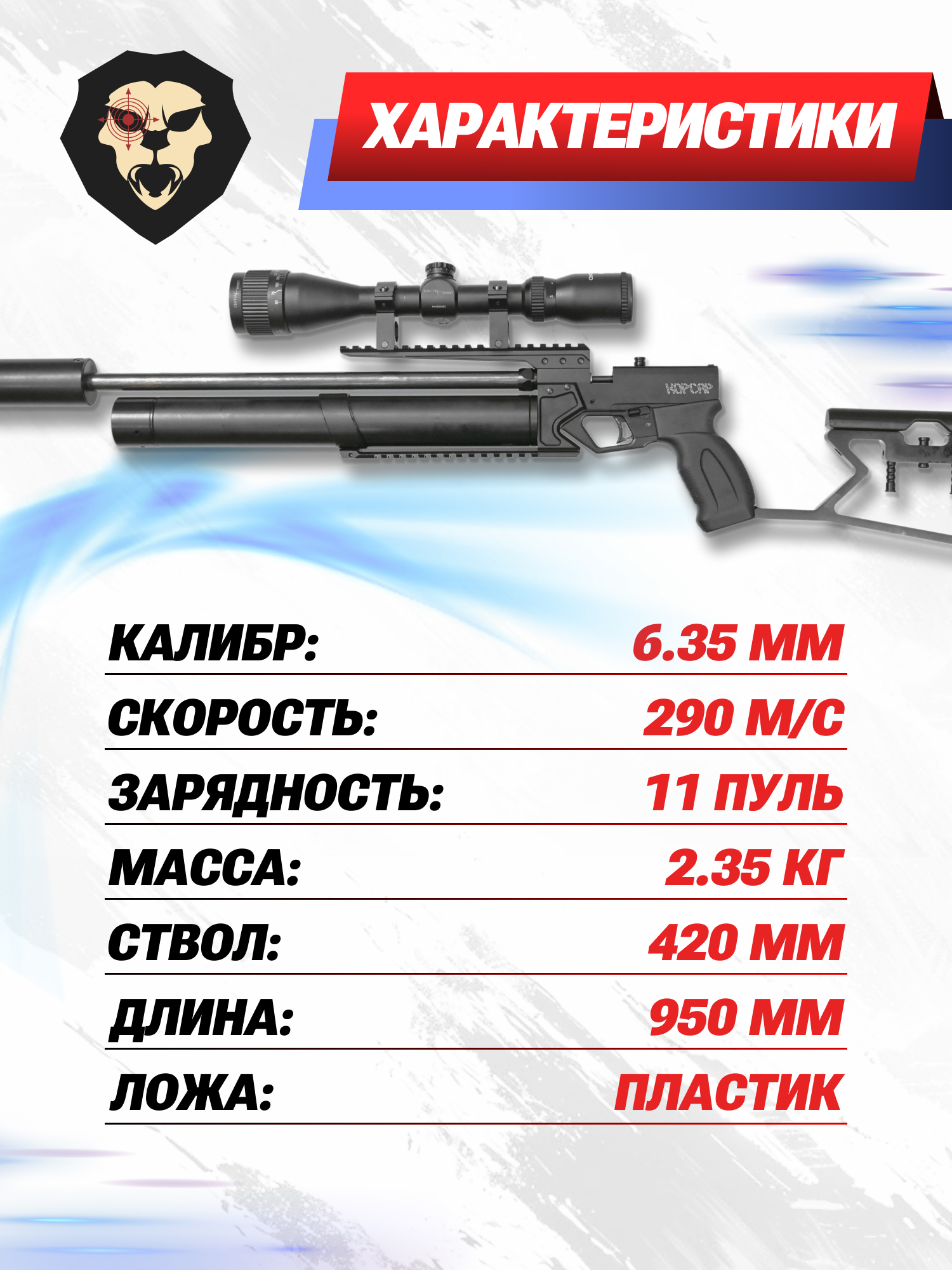 Пневматическая винтовка KrugerGun Корсар 6.35 мм (редуктор, 420 мм) купить в интернет-магазине Popadiv10.