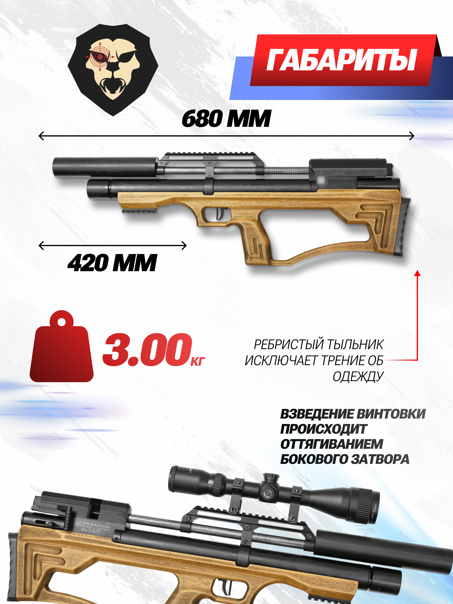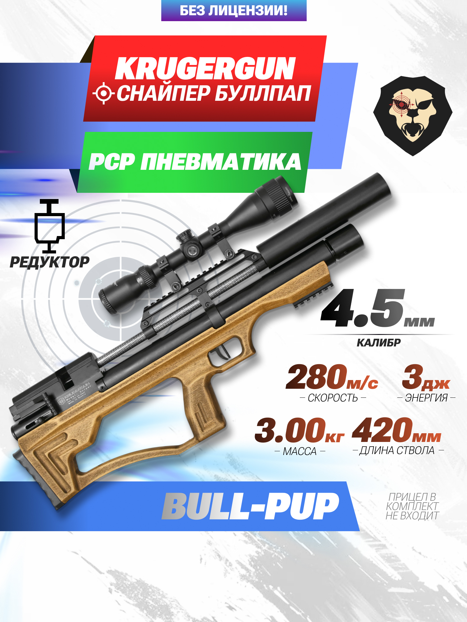 Пневматическая винтовка Krugergun Снайпер 4.5 мм Буллпап (420 мм, редуктор, резервуар 430, дерево L) купить в интернет-магазине Popadiv10.