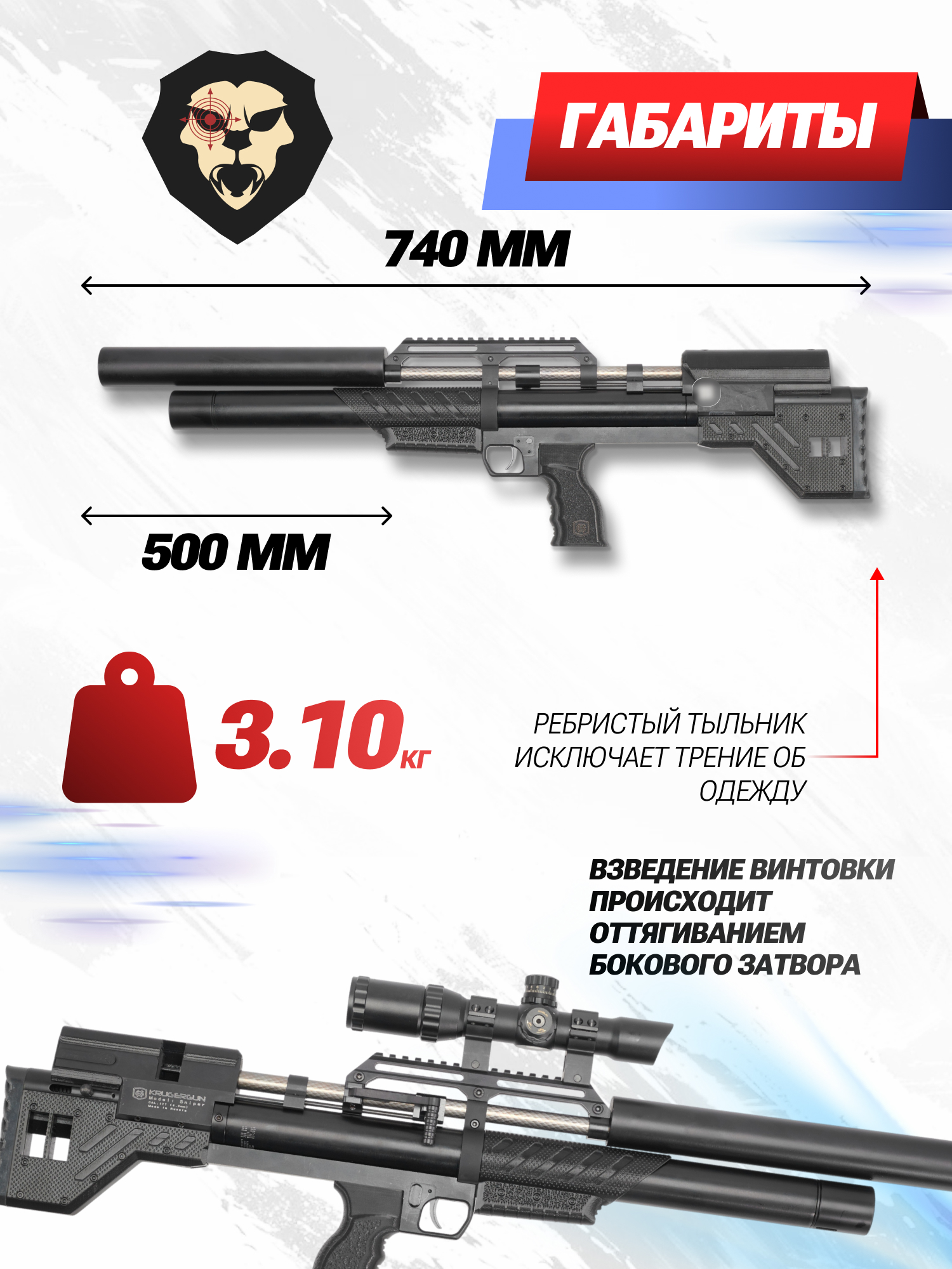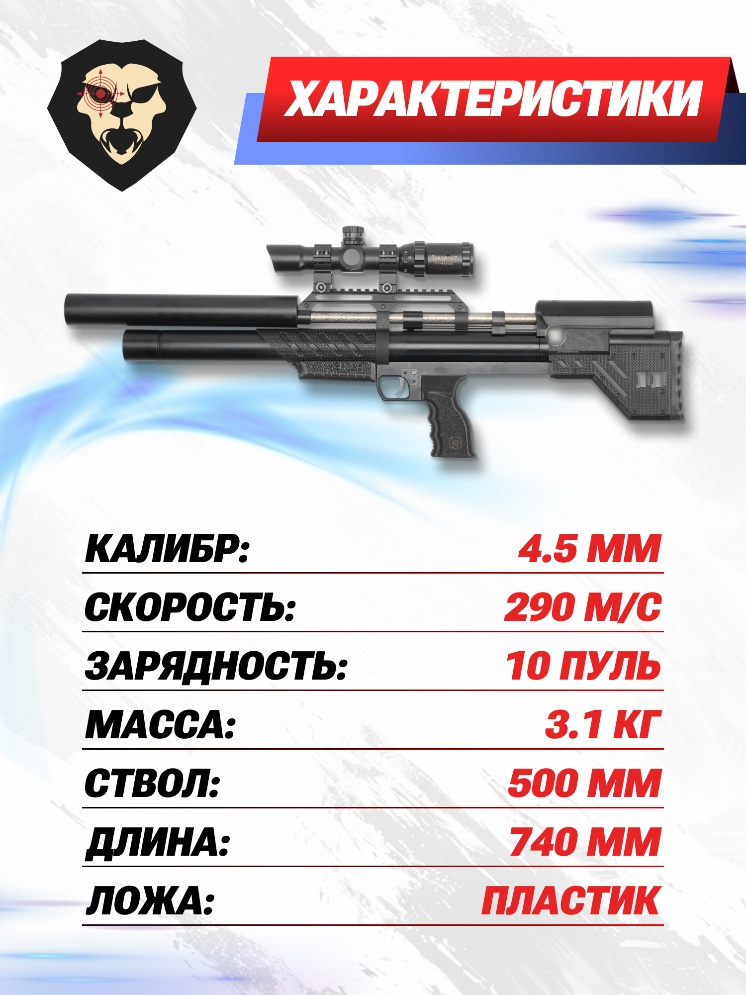 | Комплектация | Винтовка, упаковка, заправочный штуцер, магазин, набор уплотнителей, краткая документация, копия сертификата (по запросу покупателя) |