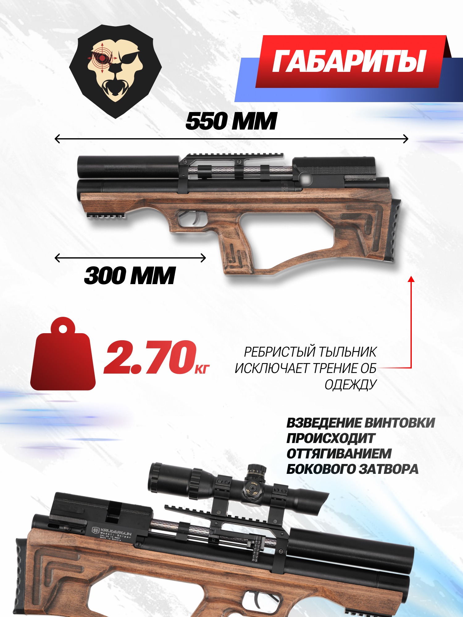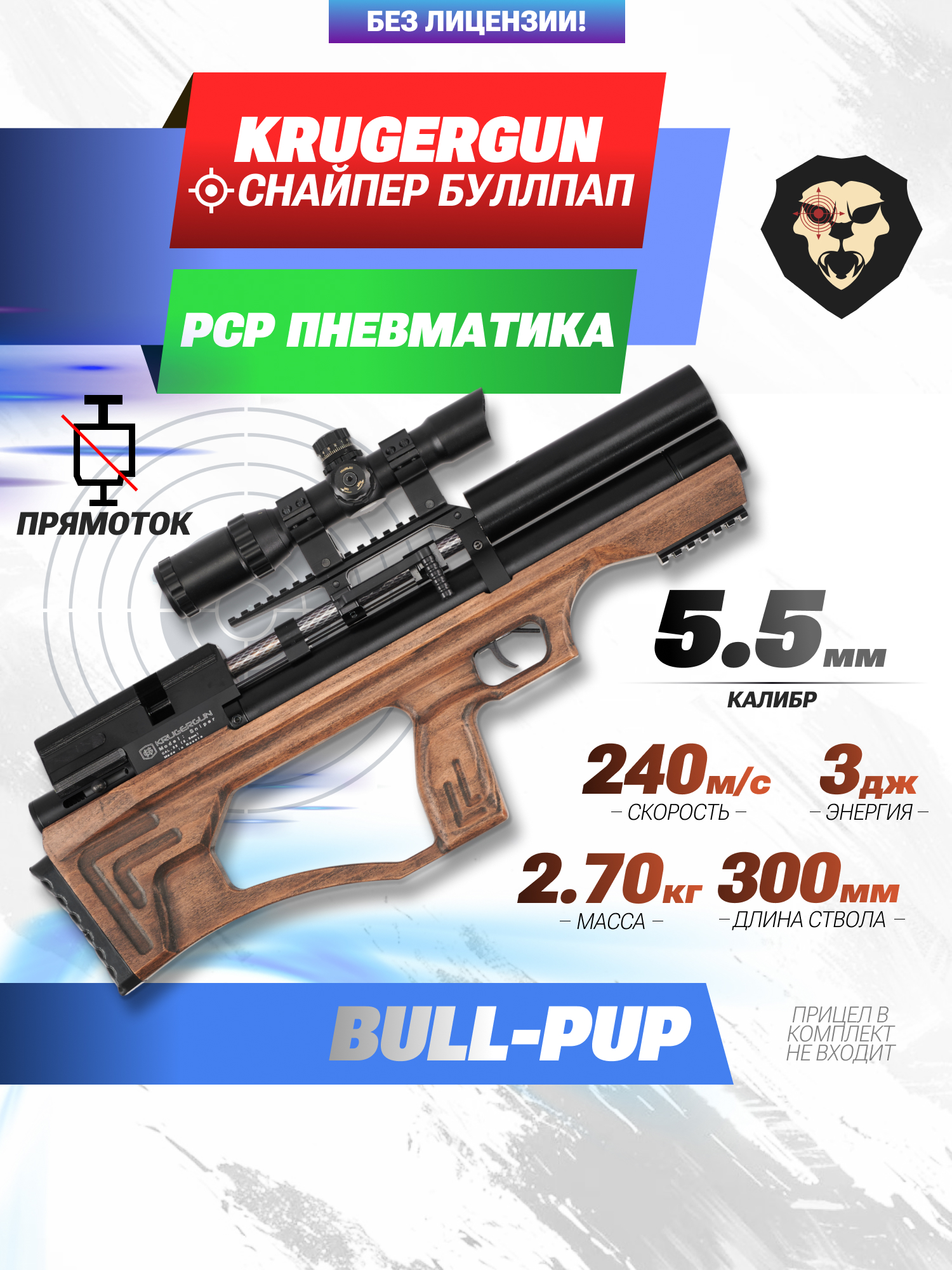 Пневматическая винтовка Krugergun Снайпер 5.5 мм Буллпап (300 мм, прямоток, дерево L, передний взвод) купить в интернет-магазине Popadiv10.