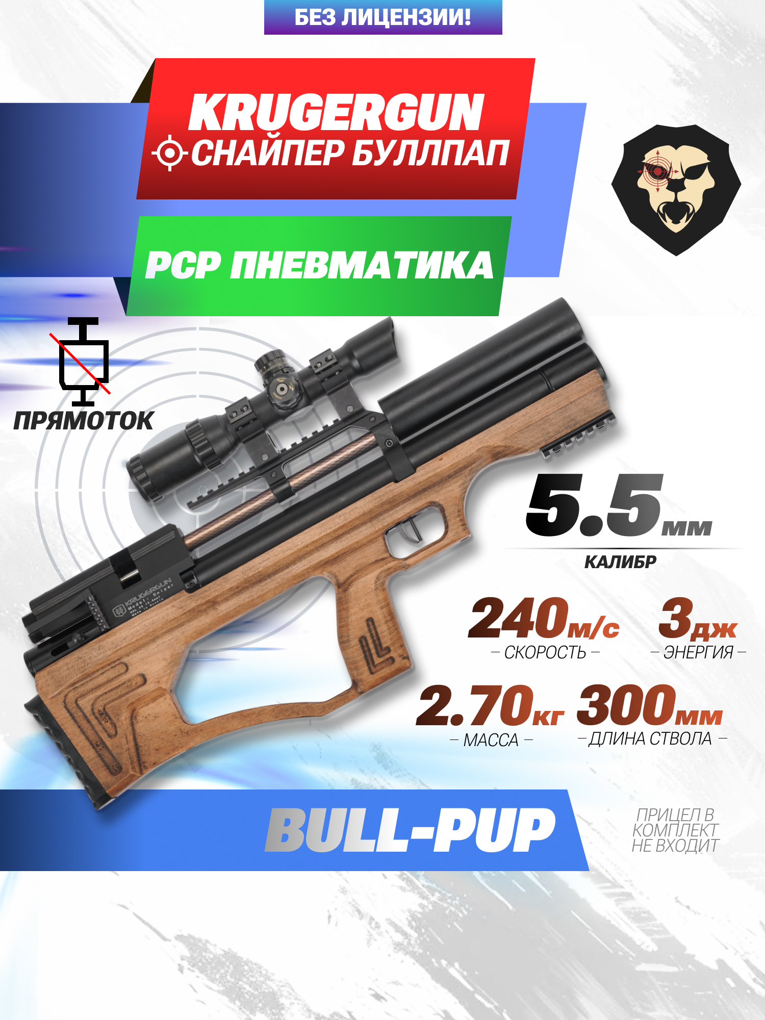 Информация о товаре "Пневматическая винтовка Krugergun Снайпер 5.5 мм Буллпап (300 мм, прямоток, дерево L)" носит ознакомительный характер, и не является публичной офертой, определяемой положениями Статьи 437 Гражданского кодекса Российской Федерации, характеристики, внешний вид, цвет и комплектация могут быть изменены производителем без уведомления.