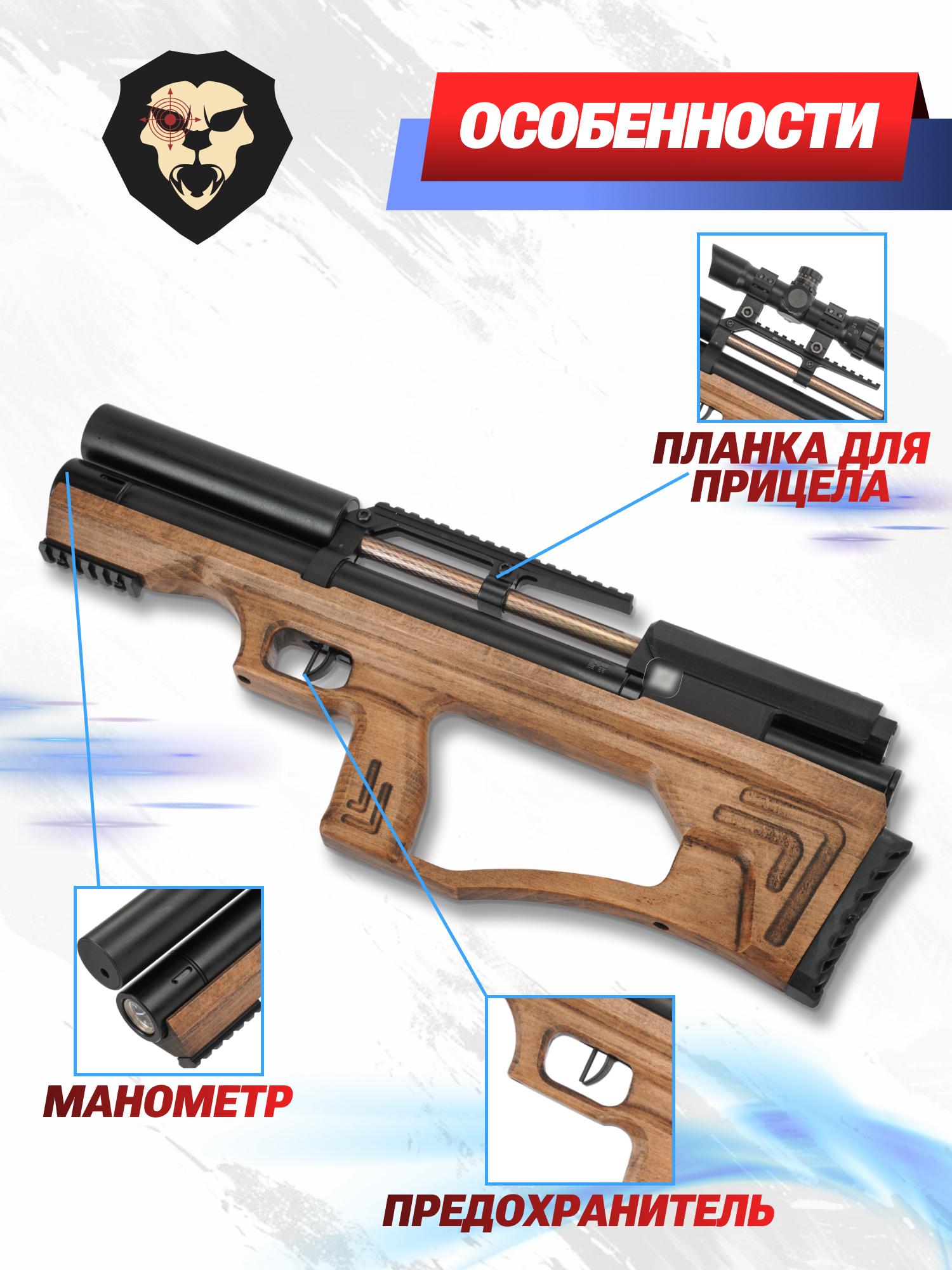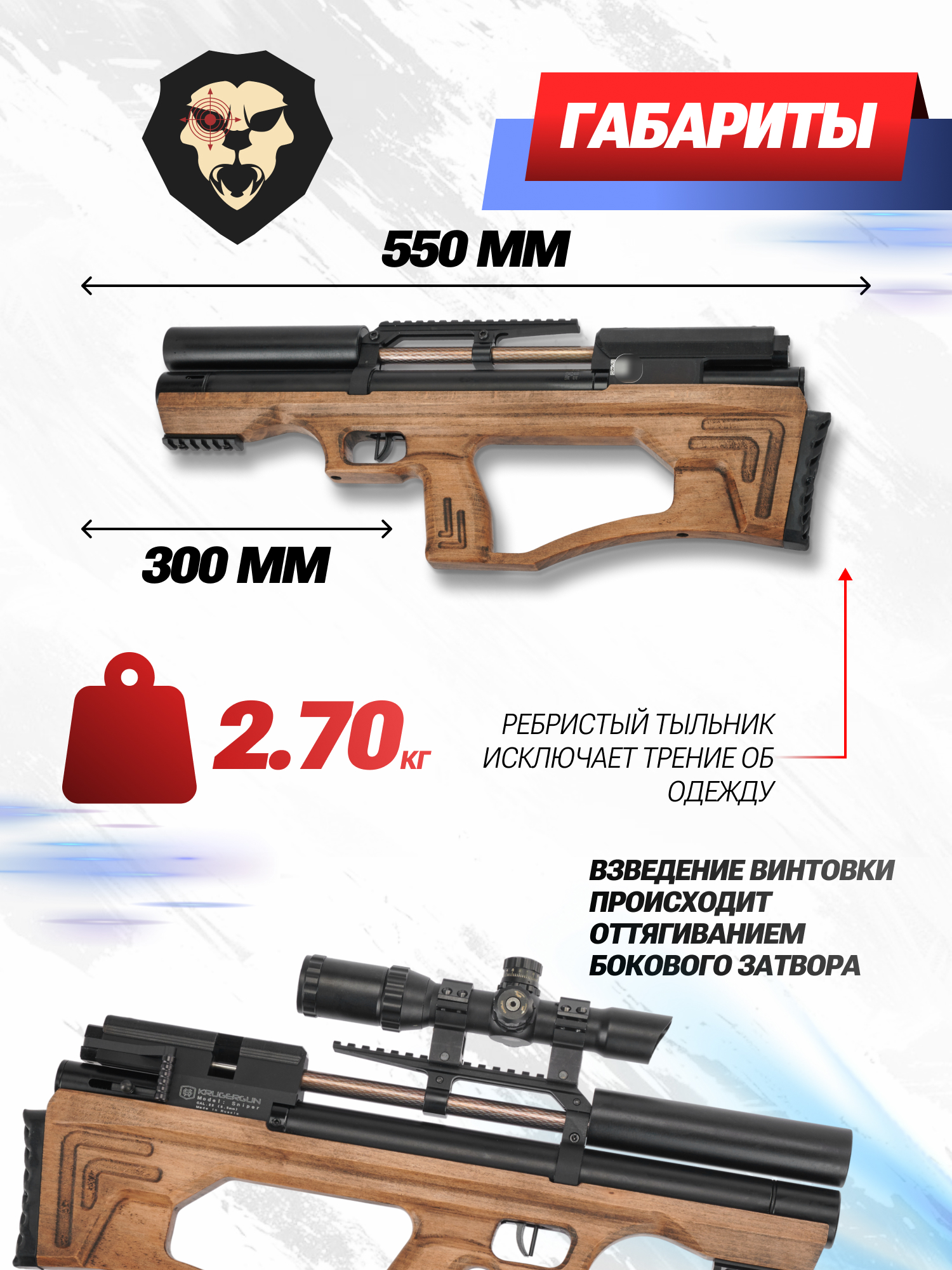 Пневматическая винтовка Krugergun Снайпер 5.5 мм Буллпап (300 мм, прямоток, дерево L) купить в интернет-магазине Popadiv10.
