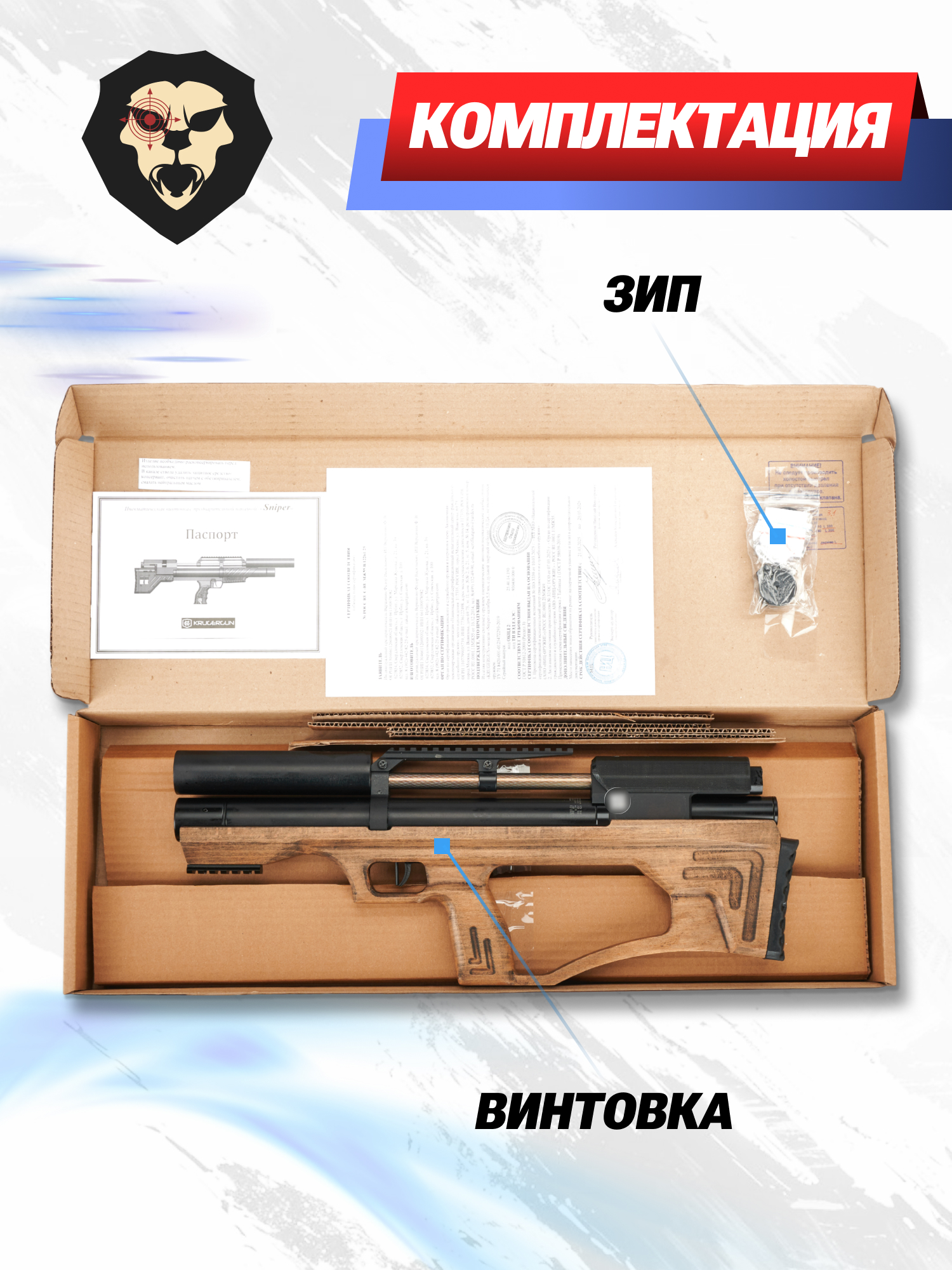| Комплектация | Винтовка, упаковка, РТИ, магазин, заправочный штуцер, краткая документация, копия сертификата (по запросу покупателя) |
