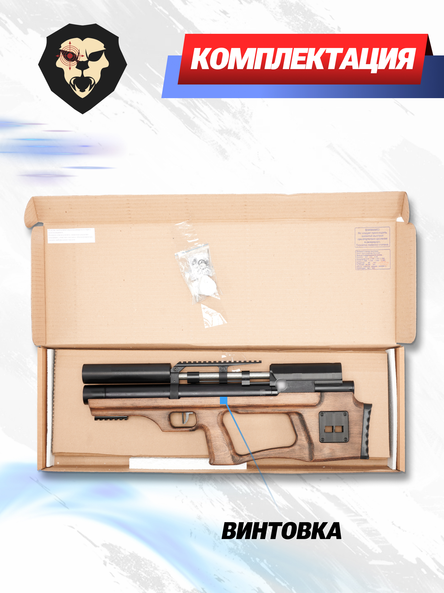 | Комплектация | Винтовка, упаковка, заправочный штуцер, магазин, комплект уплотнителей, краткая документация, копия сертификата (по запросу покупателя) |