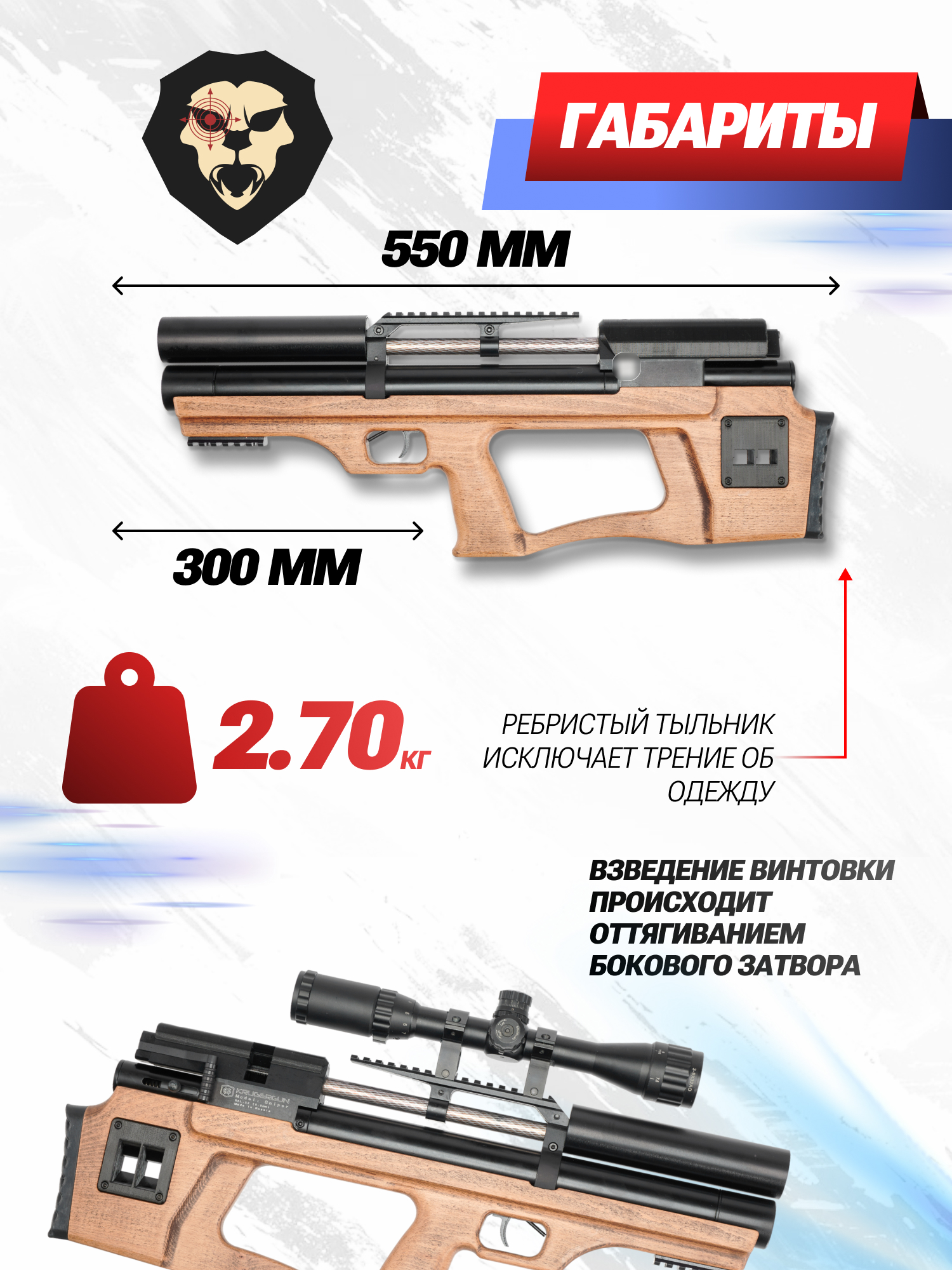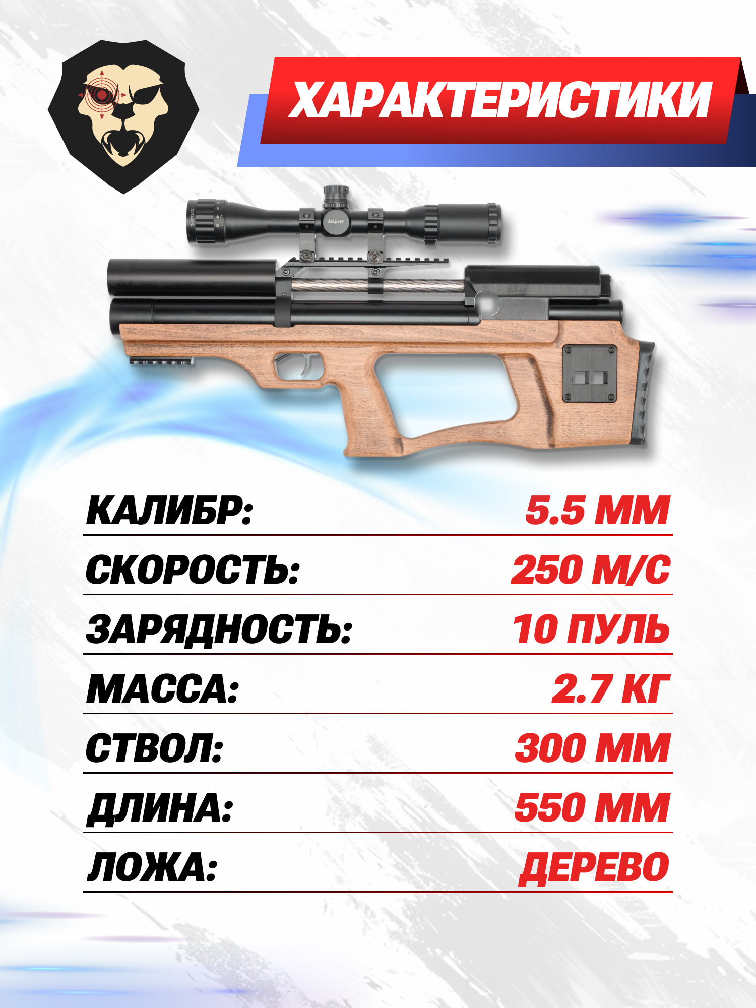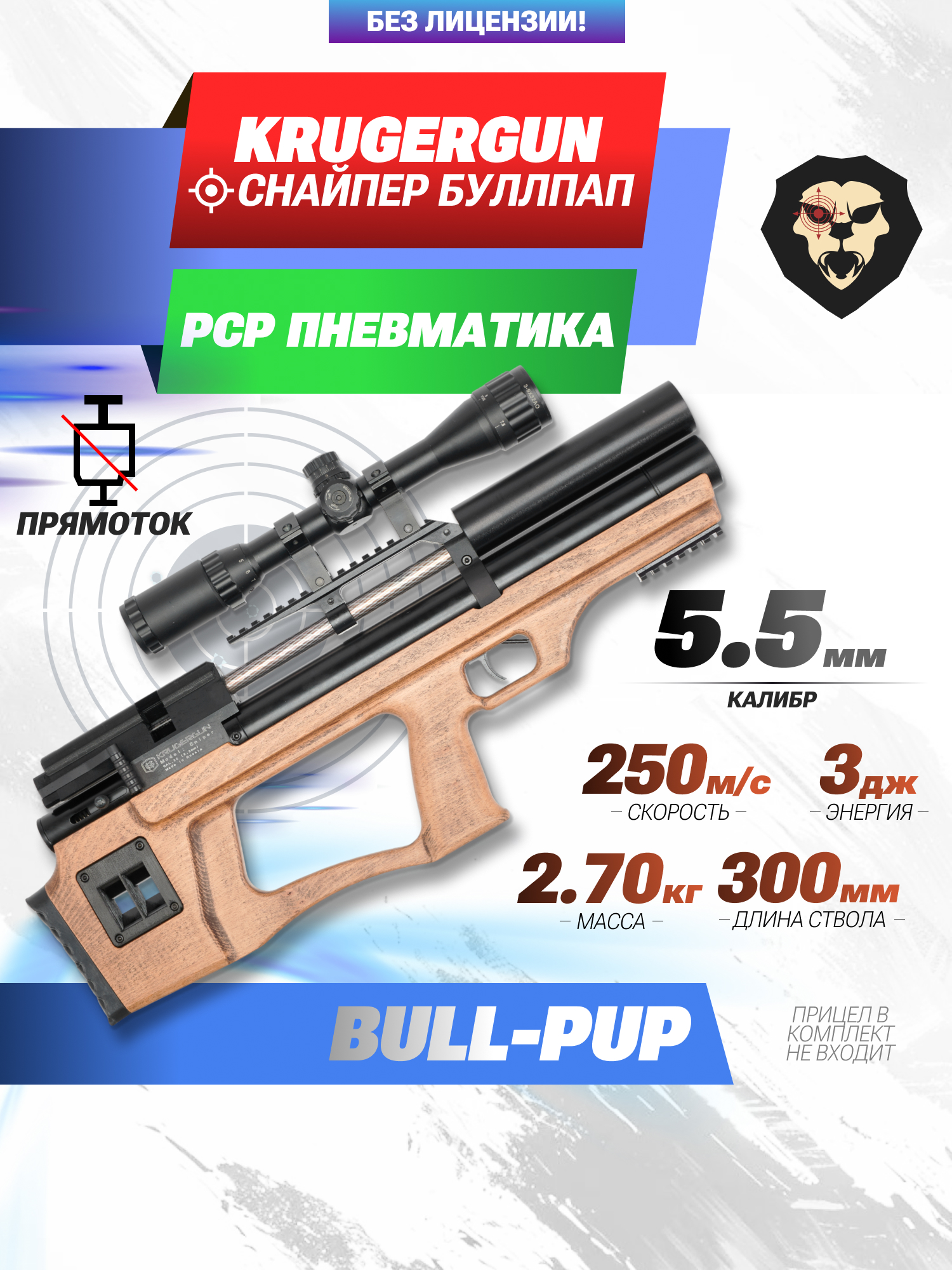 Пневматическая винтовка Krugergun Снайпер 5.5 мм Буллпап (300 мм, прямоток, дерево) купить в интернет-магазине Popadiv10.