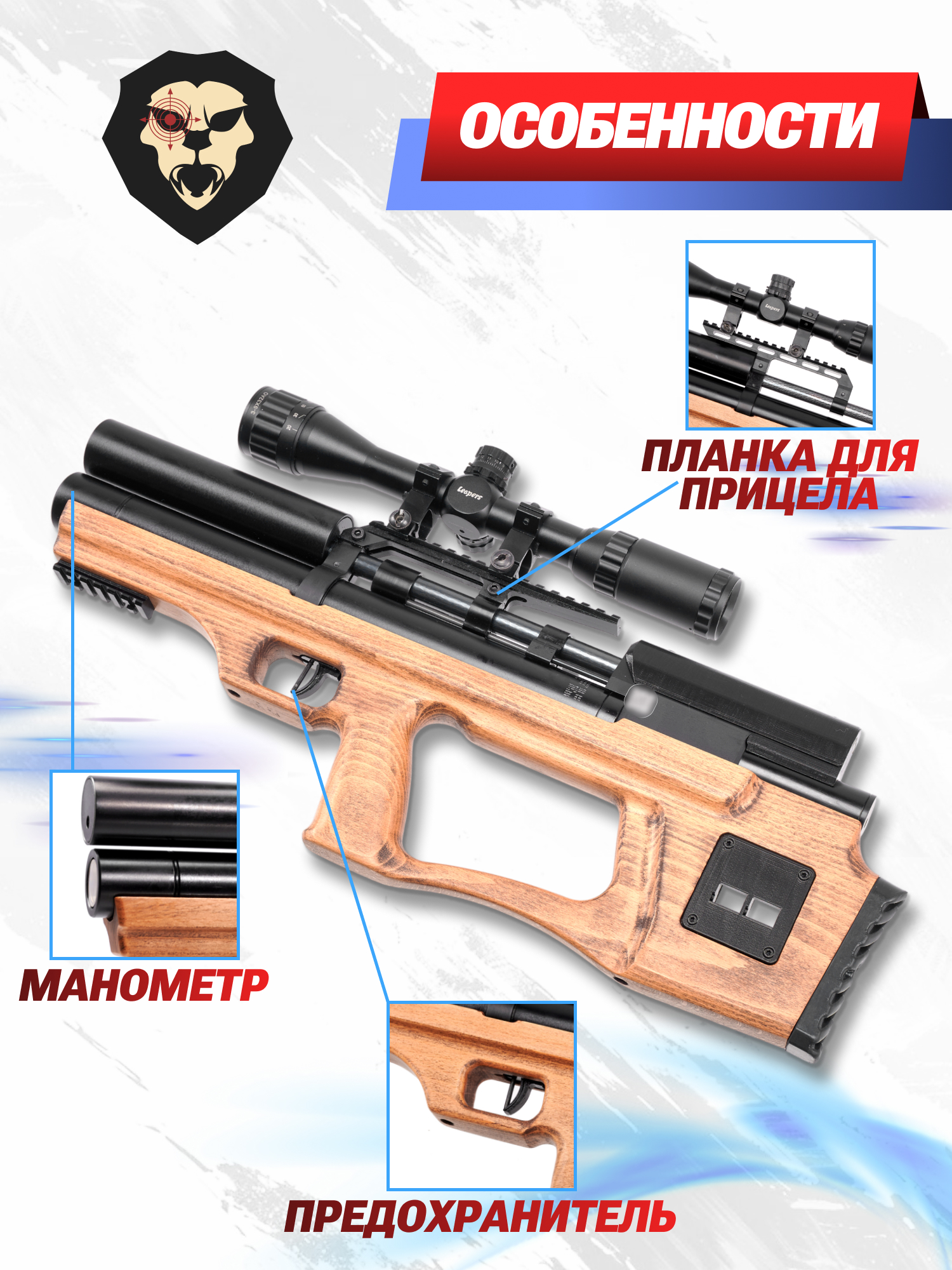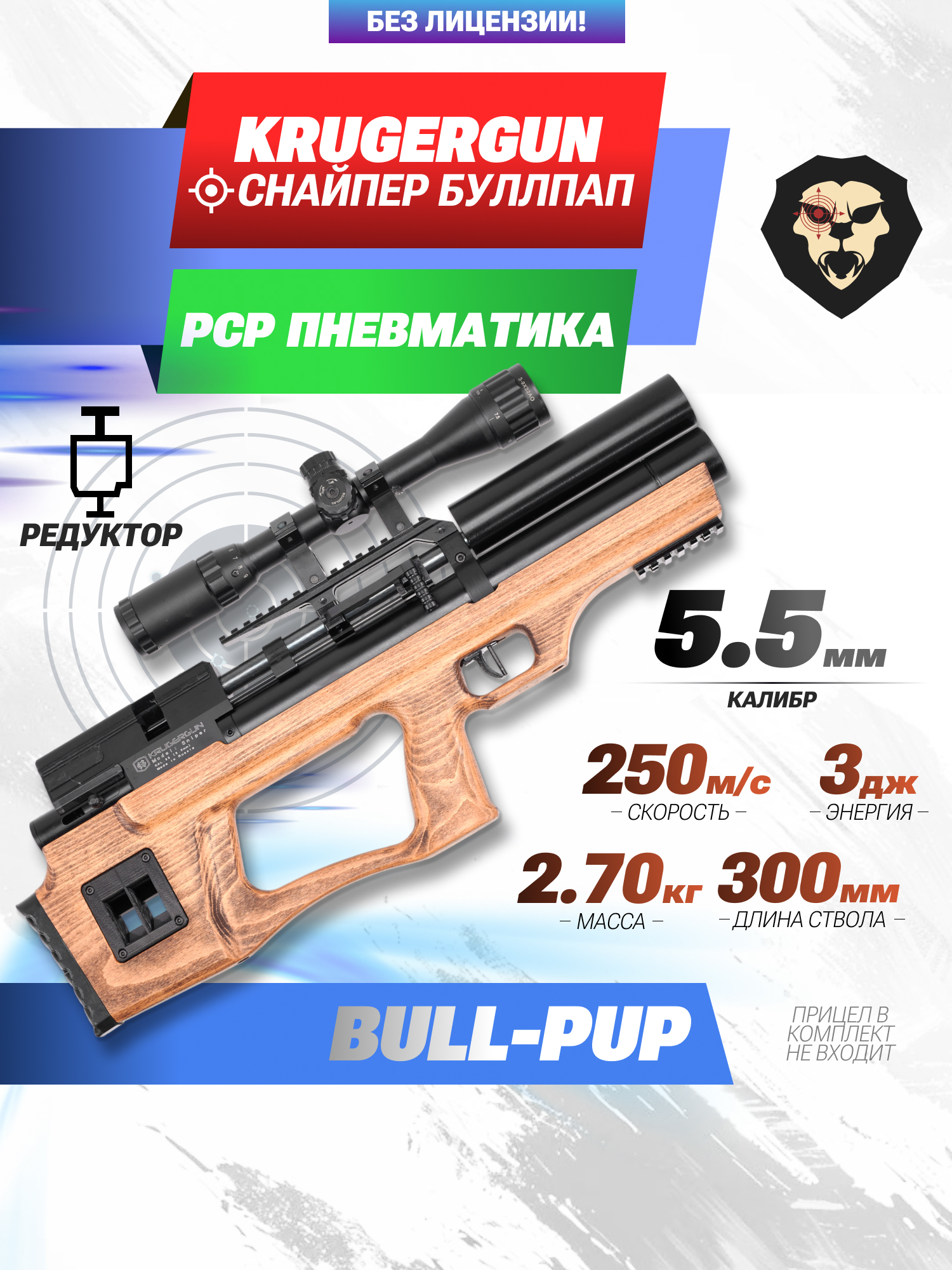 Пневматическая винтовка Krugergun Снайпер 5.5 мм Буллпап (300 мм, редуктор, взвод передний, деревянная) купить в интернет-магазине Popadiv10.