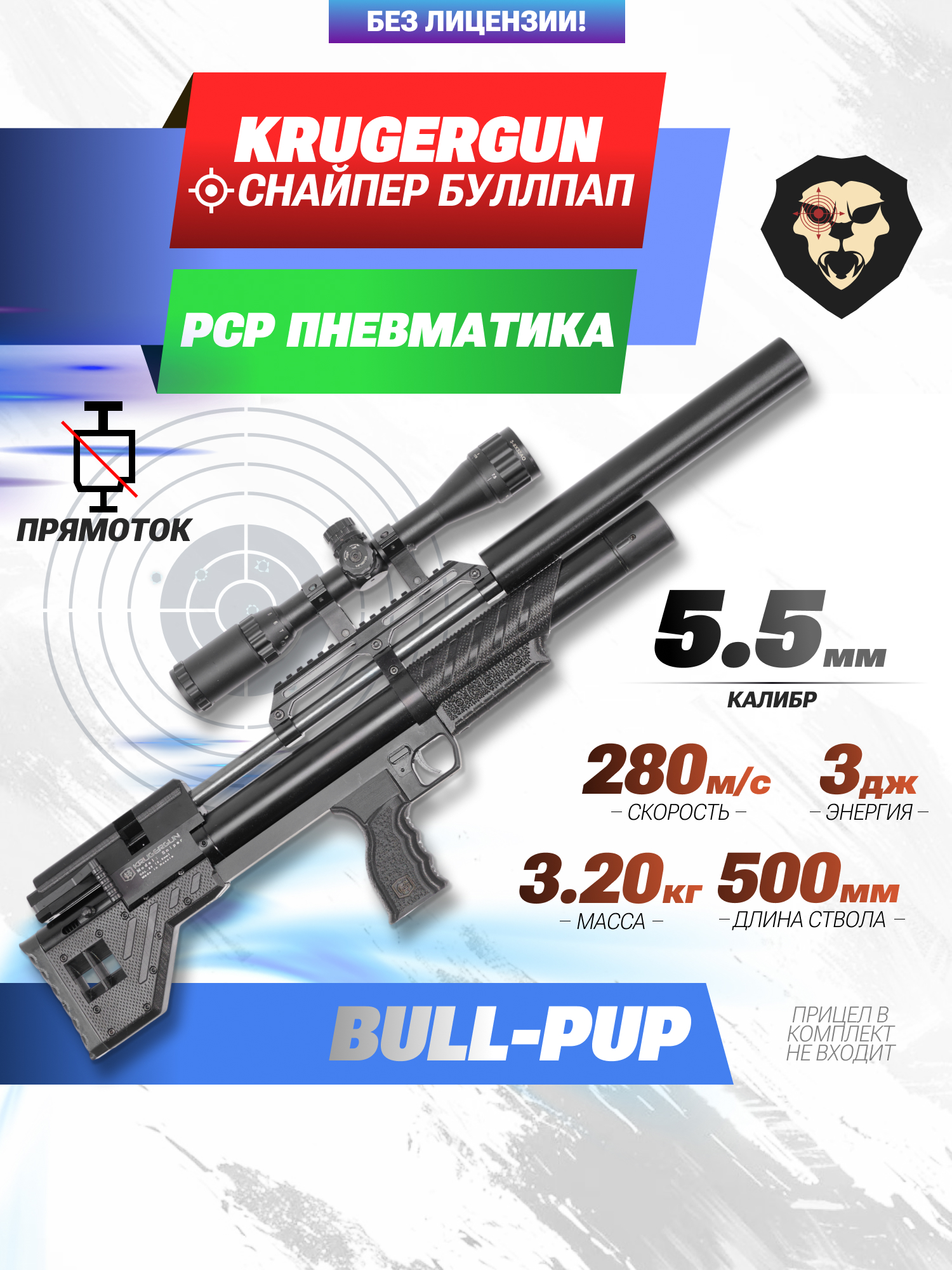 Пневматическая винтовка Krugergun Снайпер 5.5 мм Буллпап (500 мм, прямоток, пластик, резервуар 430) купить в интернет-магазине Popadiv10.