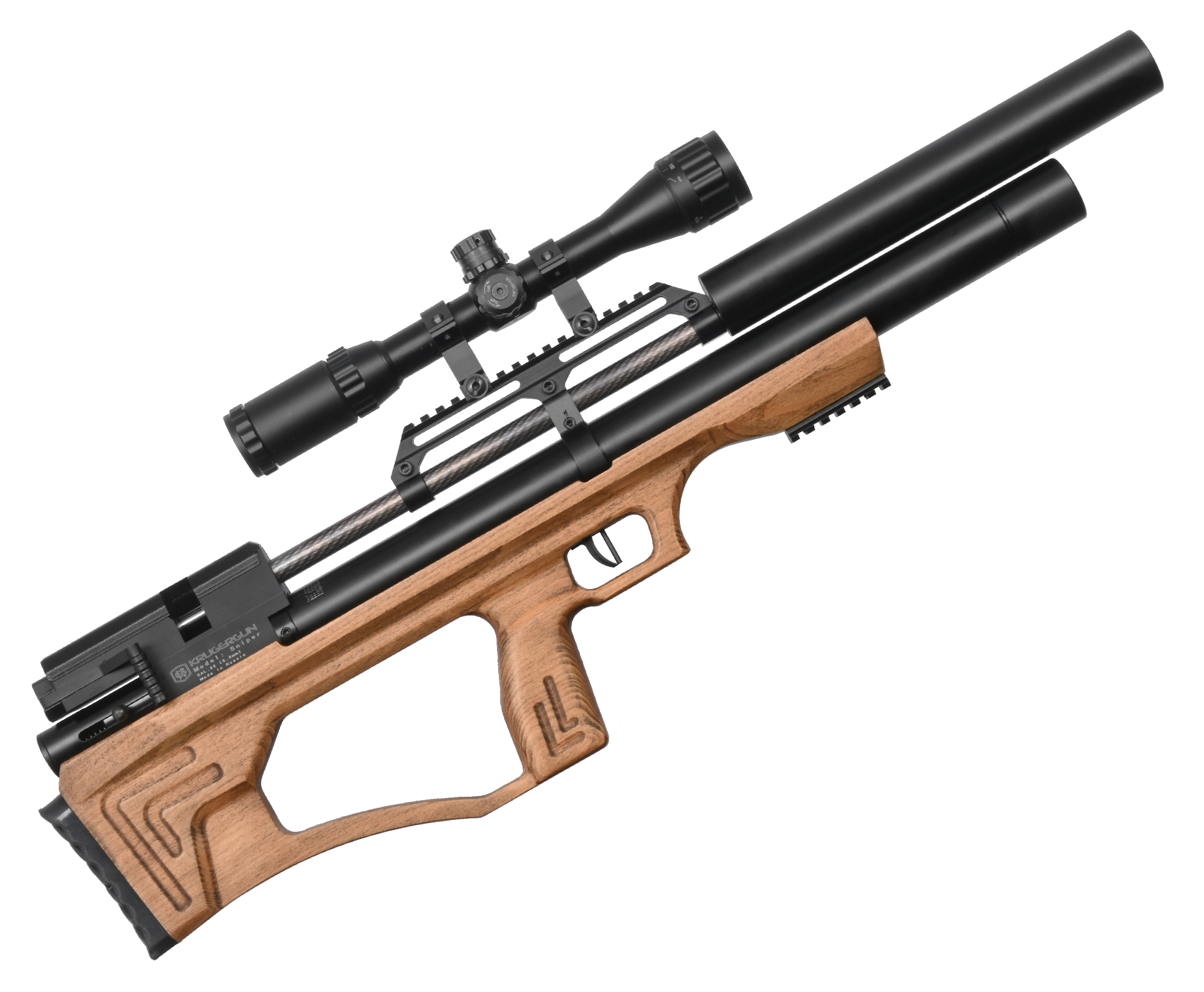 Широкую серию РСР винтовок, а также пистолетов изготавливает российская компания КрюгерГан, которая за годы работы обзавелась репутацией изготовителя качественного пневматического оружия. Для расширения серии винтовок в компоновке буллпап компанией было разработано новое исполнение деревянного ложа.