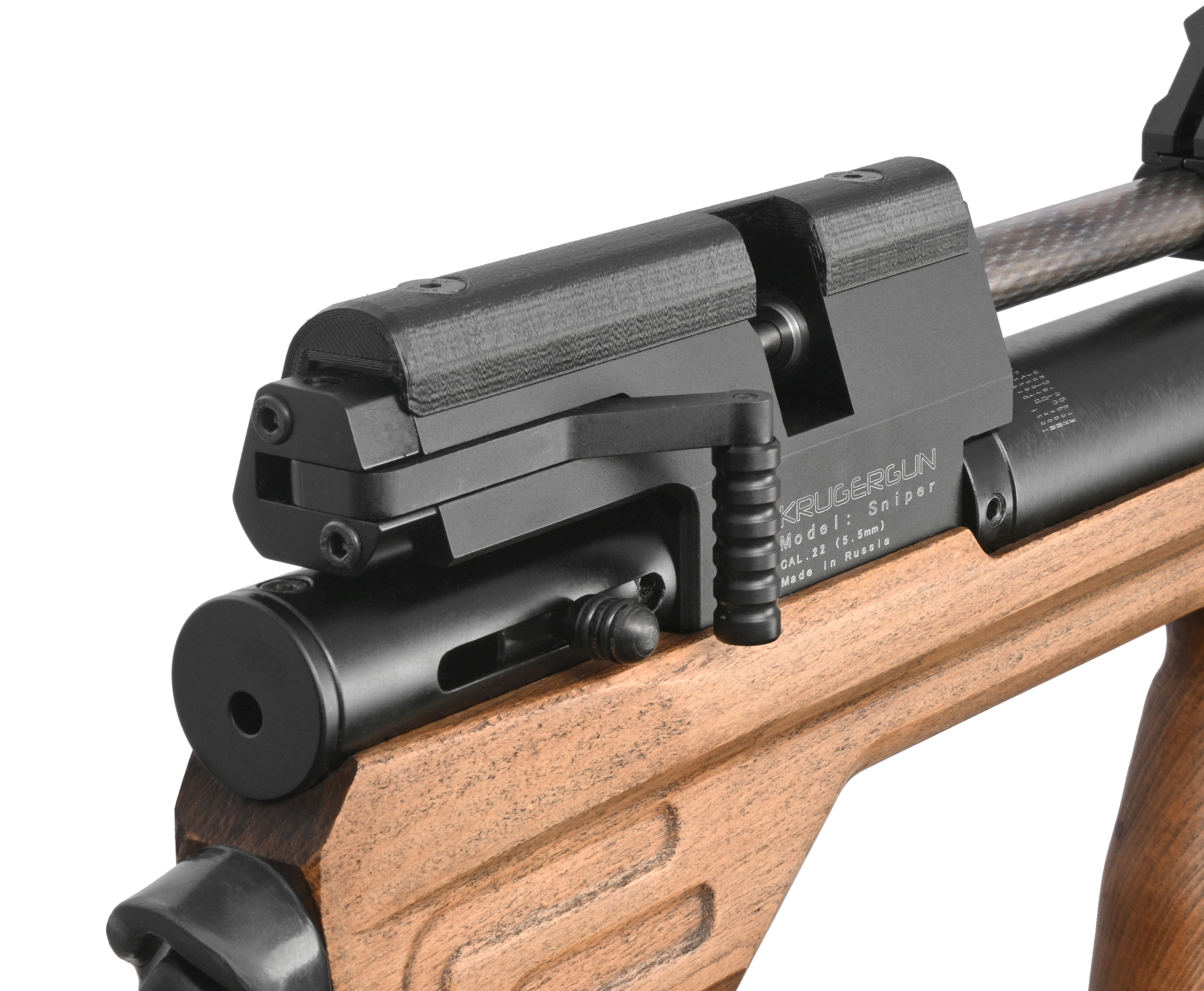 Пневматическая винтовка Снайпер KrugerGun, поступая на гражданский рынок оснащается изготовителем штатным вариантом мостика с креплением Weaver 22 мм. Мостик используется для установки оптических приспособлений и опционально может заменятся на кронштейны КрюгерГан со схожим типом крепления.