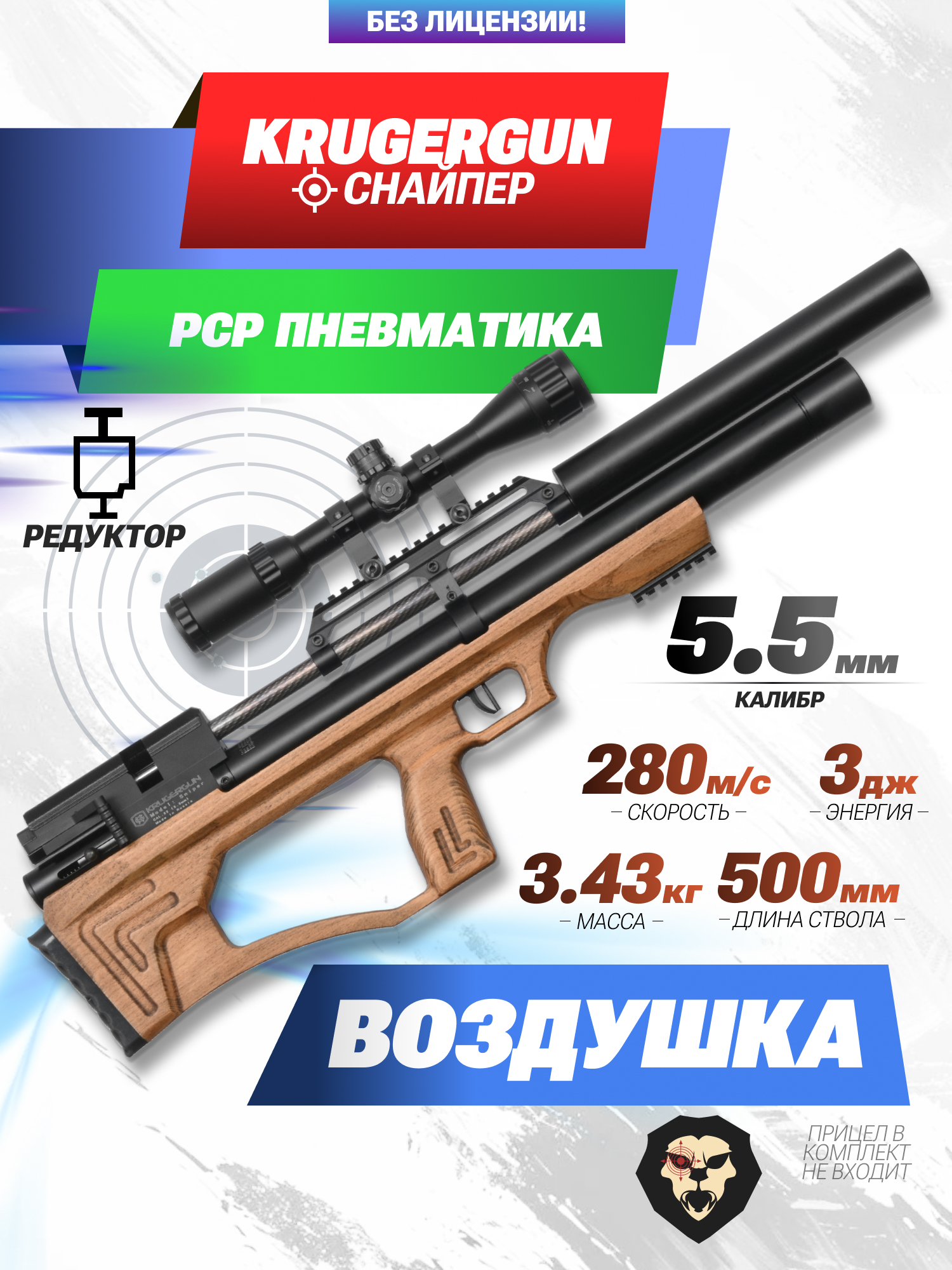 Пневматическая винтовка Krugergun Снайпер 5.5 мм Буллпап (500 мм, редуктор, дерево L, резервуар 510) купить в интернет-магазине Popadiv10.