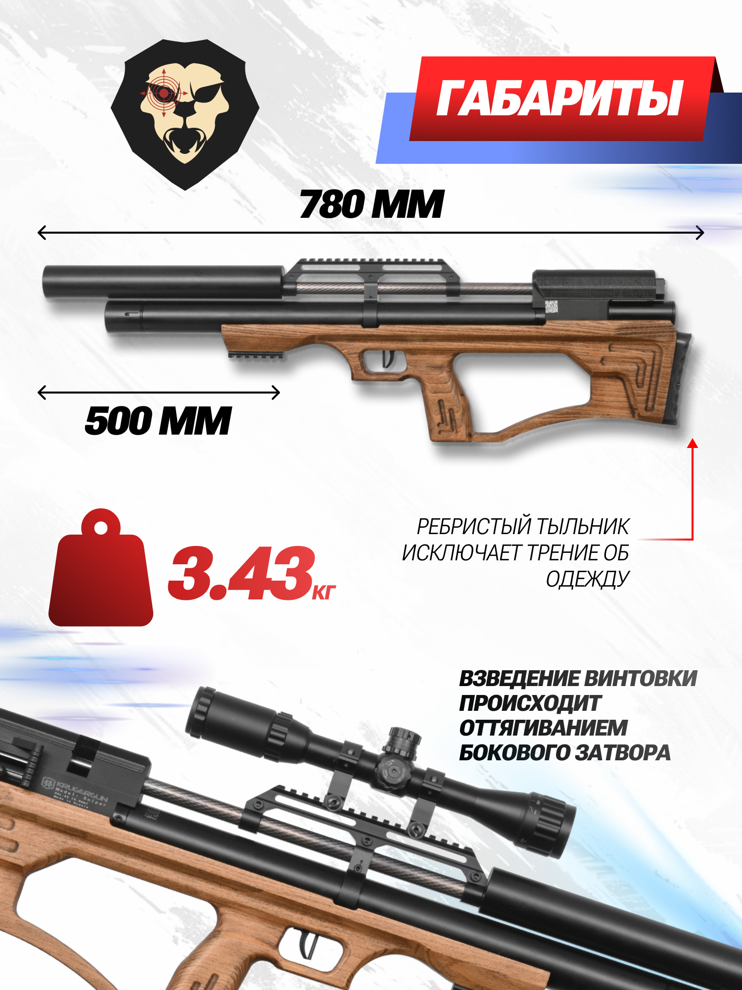 | Комплектация | Винтовка, магазин, набор уплотнителей, упаковка, заправочный штуцер, краткая документация, копия сертификата (по запросу покупателя) |