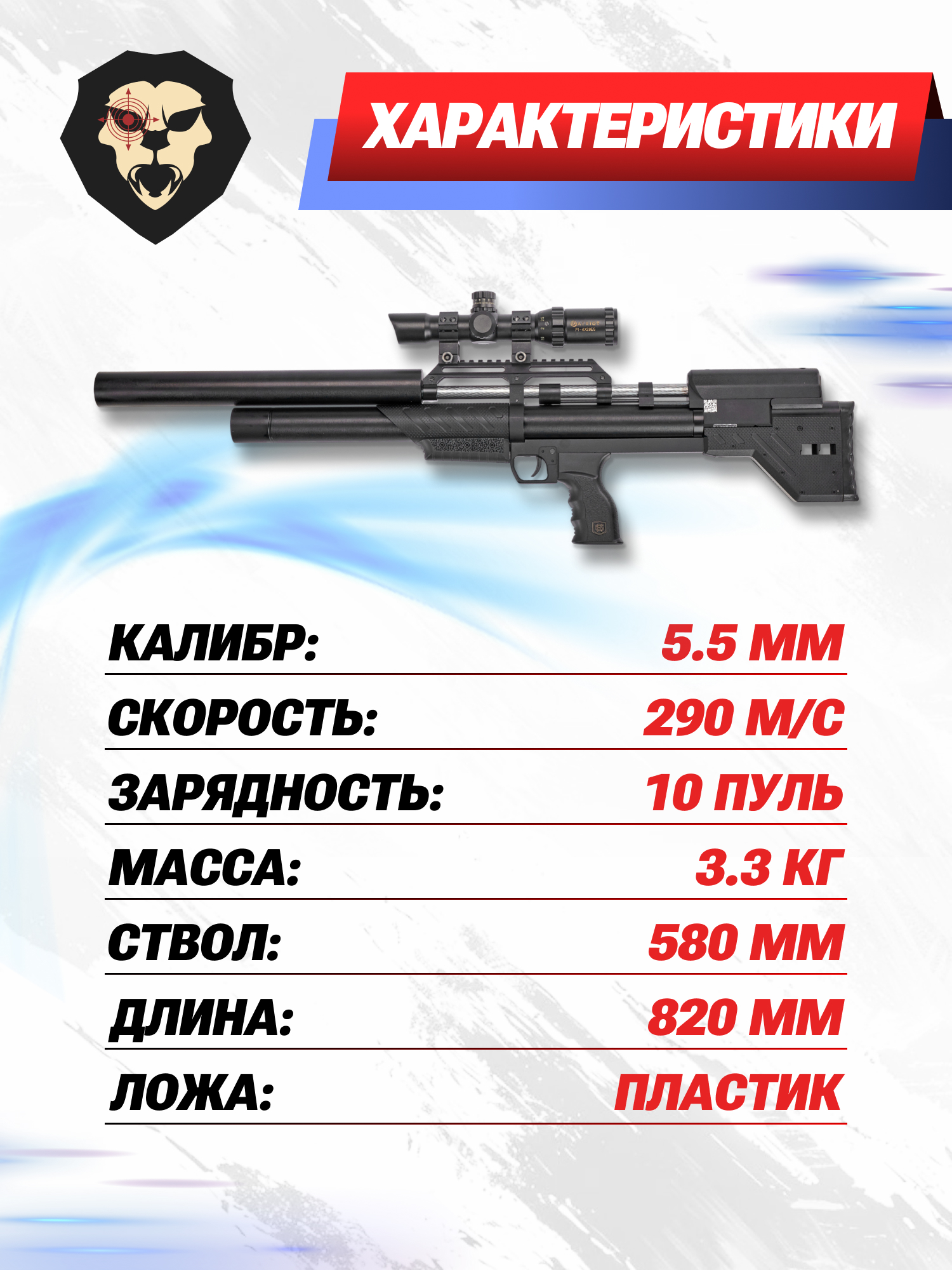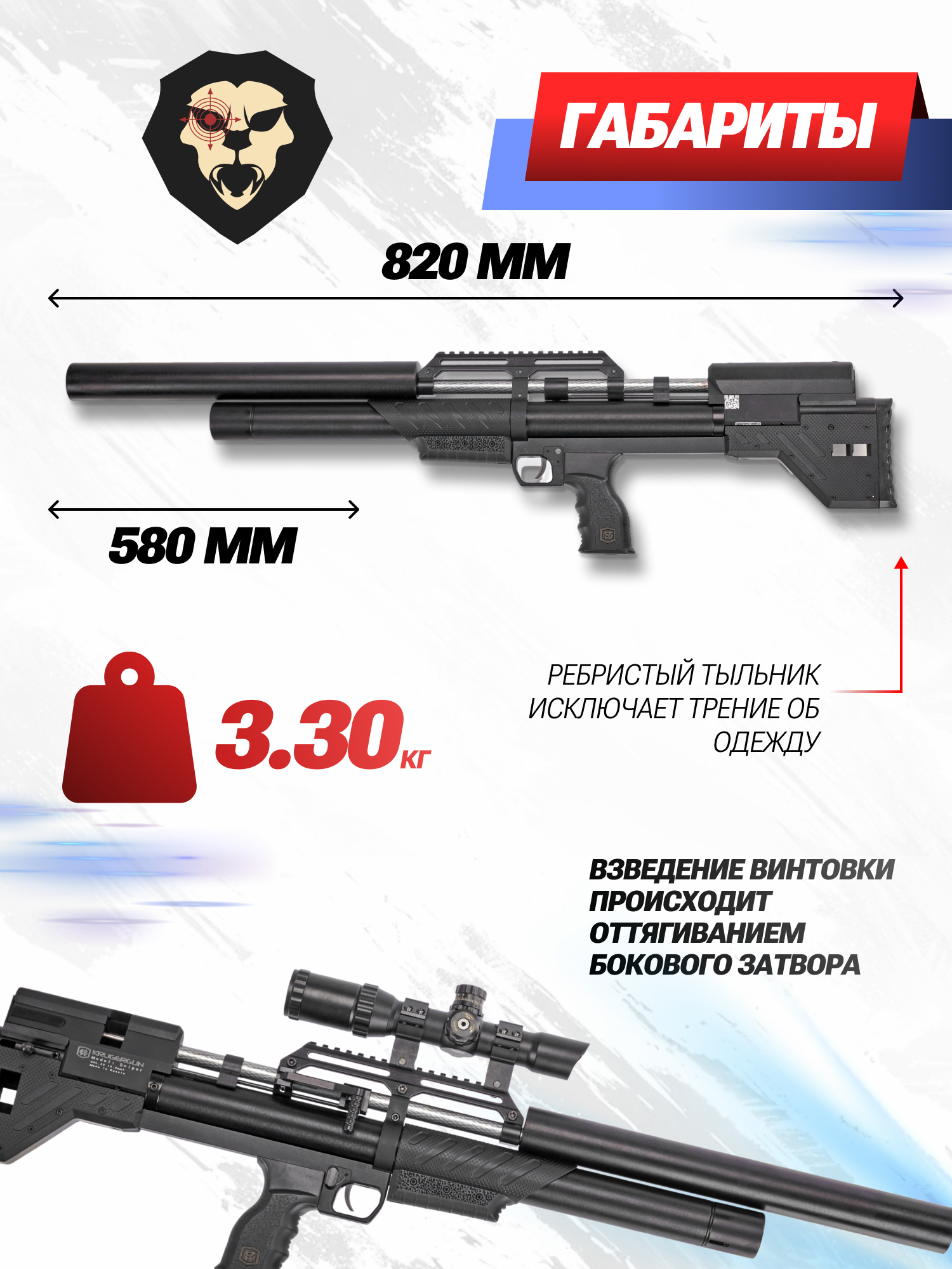 | Комплектация | Винтовка, упаковка, заправочный штуцер, магазин, набор уплотнителей, краткая документация, копия сертификата (по запросу покупателя) |