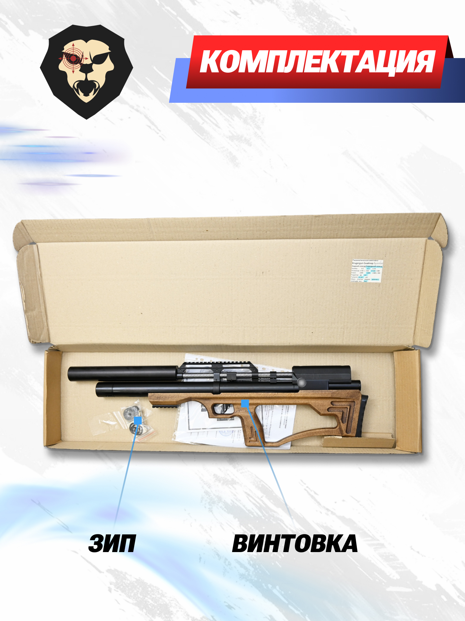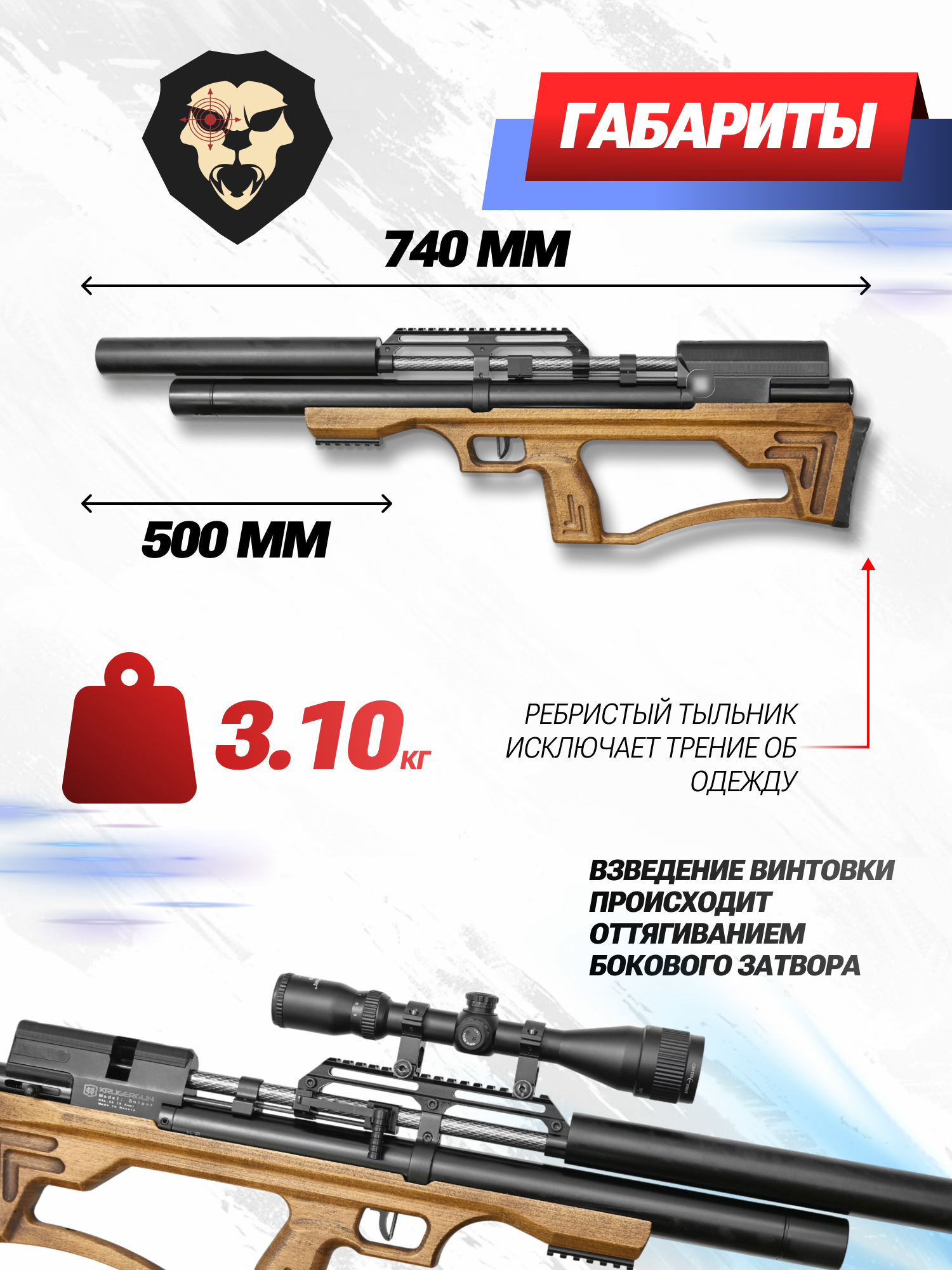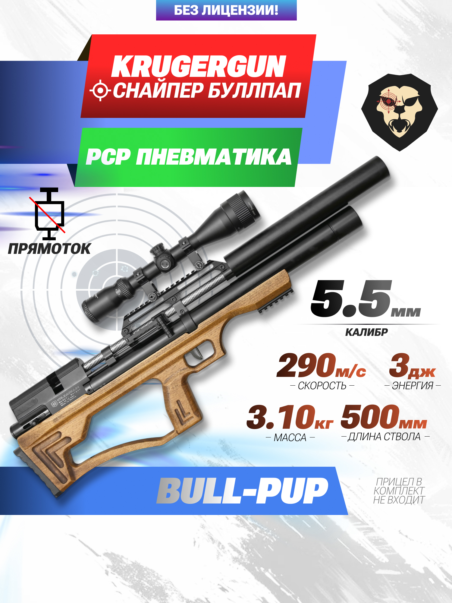 Информация о товаре "Пневматическая винтовка Krugergun Снайпер 5.5 мм Bullpup (500 мм, прямоток, взвод передний, дерево L, резервуар 510)" носит ознакомительный характер, и не является публичной офертой, определяемой положениями Статьи 437 Гражданского кодекса Российской Федерации, характеристики, внешний вид, цвет и комплектация могут быть изменены производителем без уведомления.