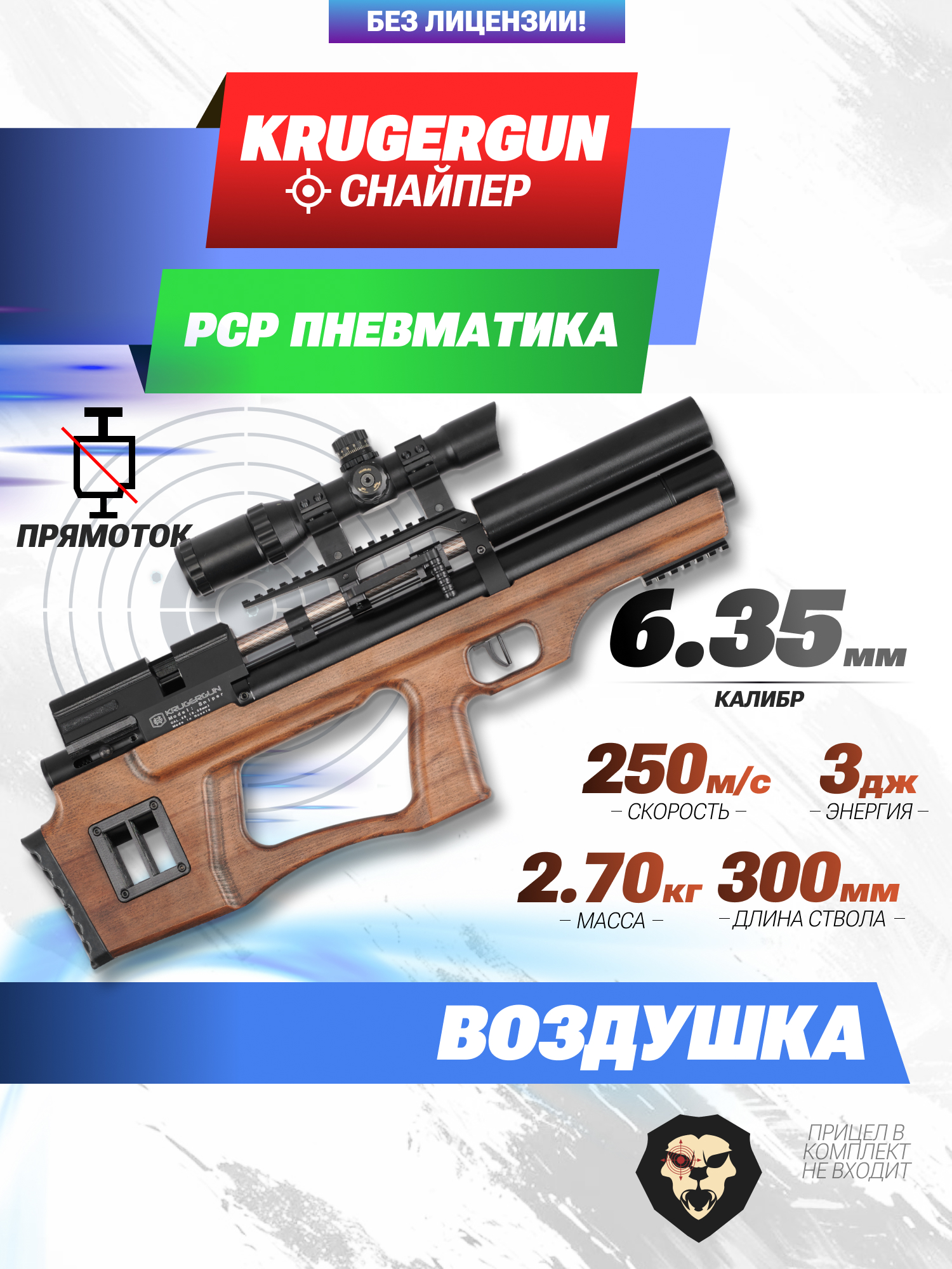 Пневматическая винтовка Krugergun Снайпер 6.35 мм Буллпап (300 мм, прямоток, передний взвод, дерево) купить в интернет-магазине Popadiv10.