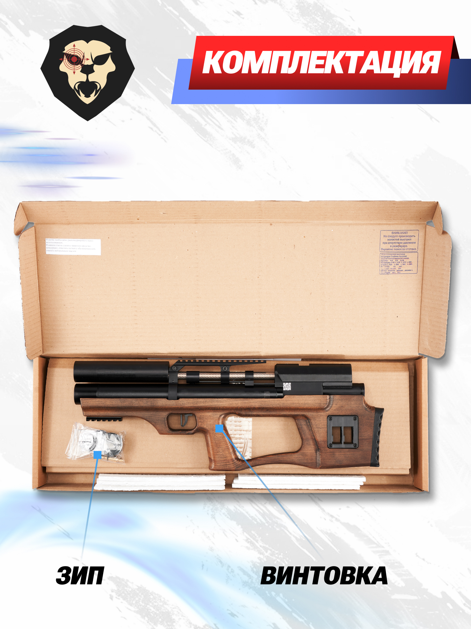 | Комплектация | Винтовка, упаковка, заправочный штуцер, магазин, комплект уплотнителей, краткая документация, копия сертификата (по запросу покупателя) |