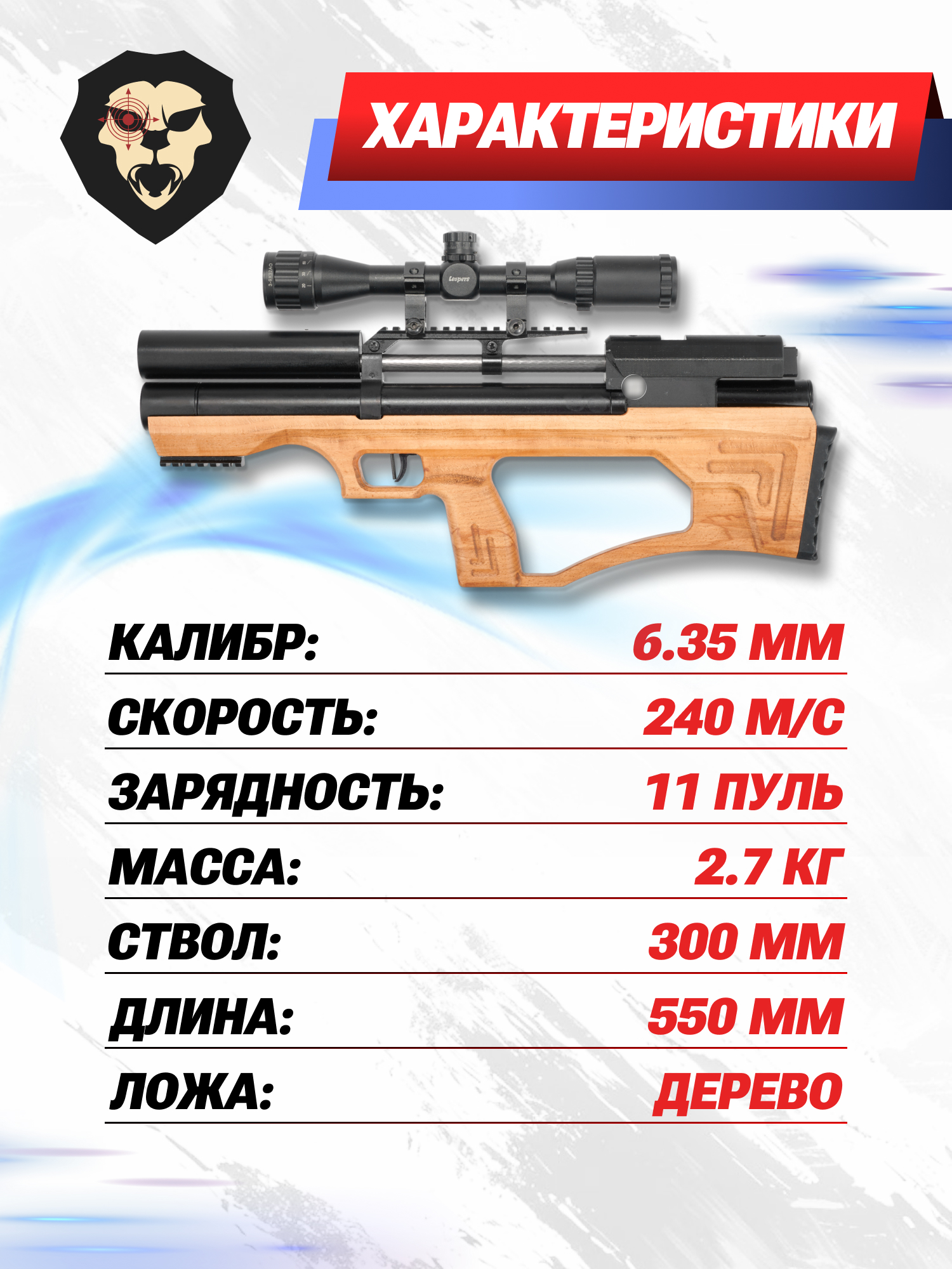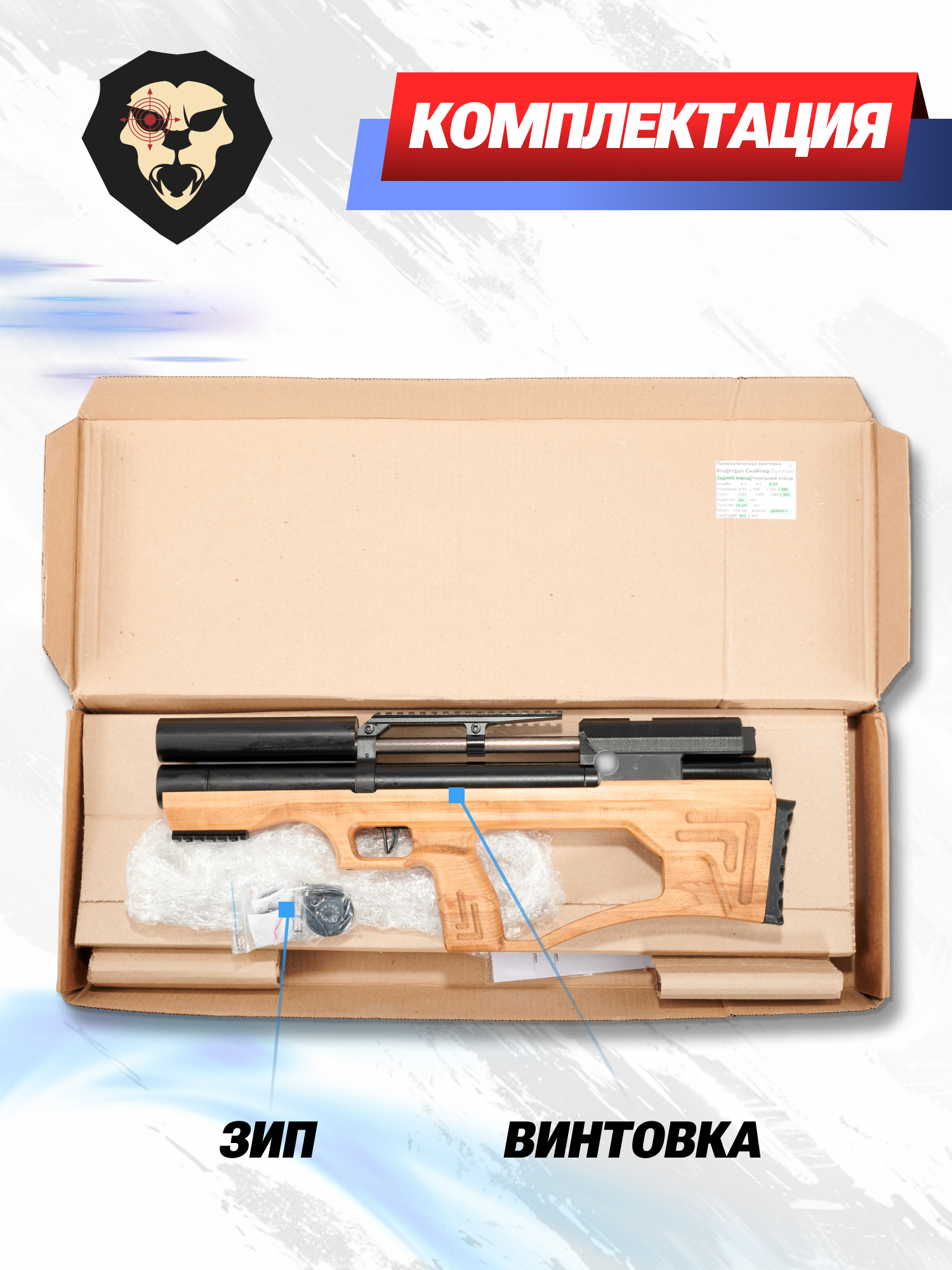 Информация о товаре "Пневматическая винтовка Krugergun Снайпер 6.35 мм Буллпап (300 мм, редуктор, дерево L)" носит ознакомительный характер, и не является публичной офертой, определяемой положениями Статьи 437 Гражданского кодекса Российской Федерации, характеристики, внешний вид, цвет и комплектация могут быть изменены производителем без уведомления.
