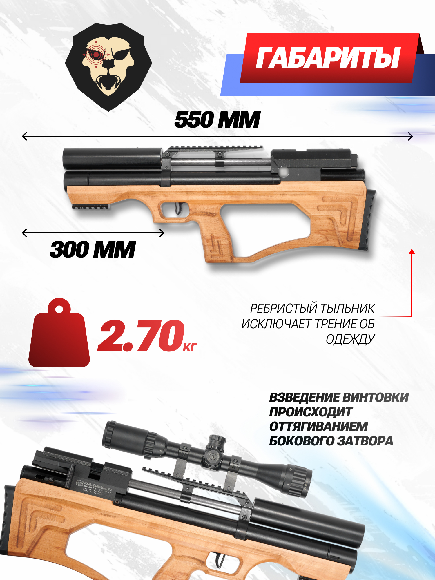 Пневматическая винтовка Krugergun Снайпер 6.35 мм Буллпап (300 мм, редуктор, дерево L) купить в интернет-магазине Popadiv10.
