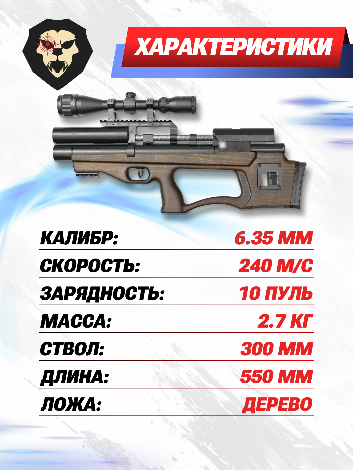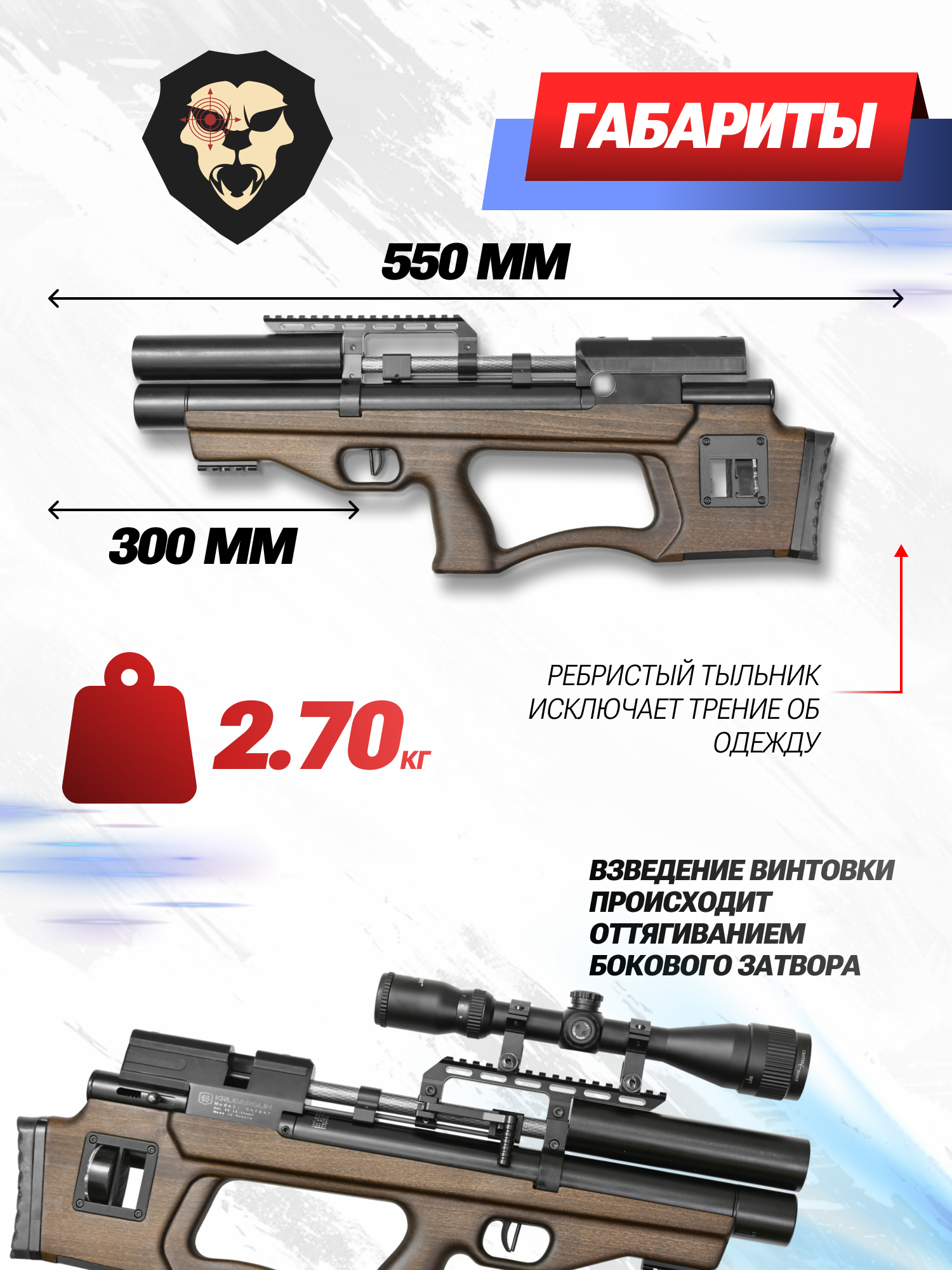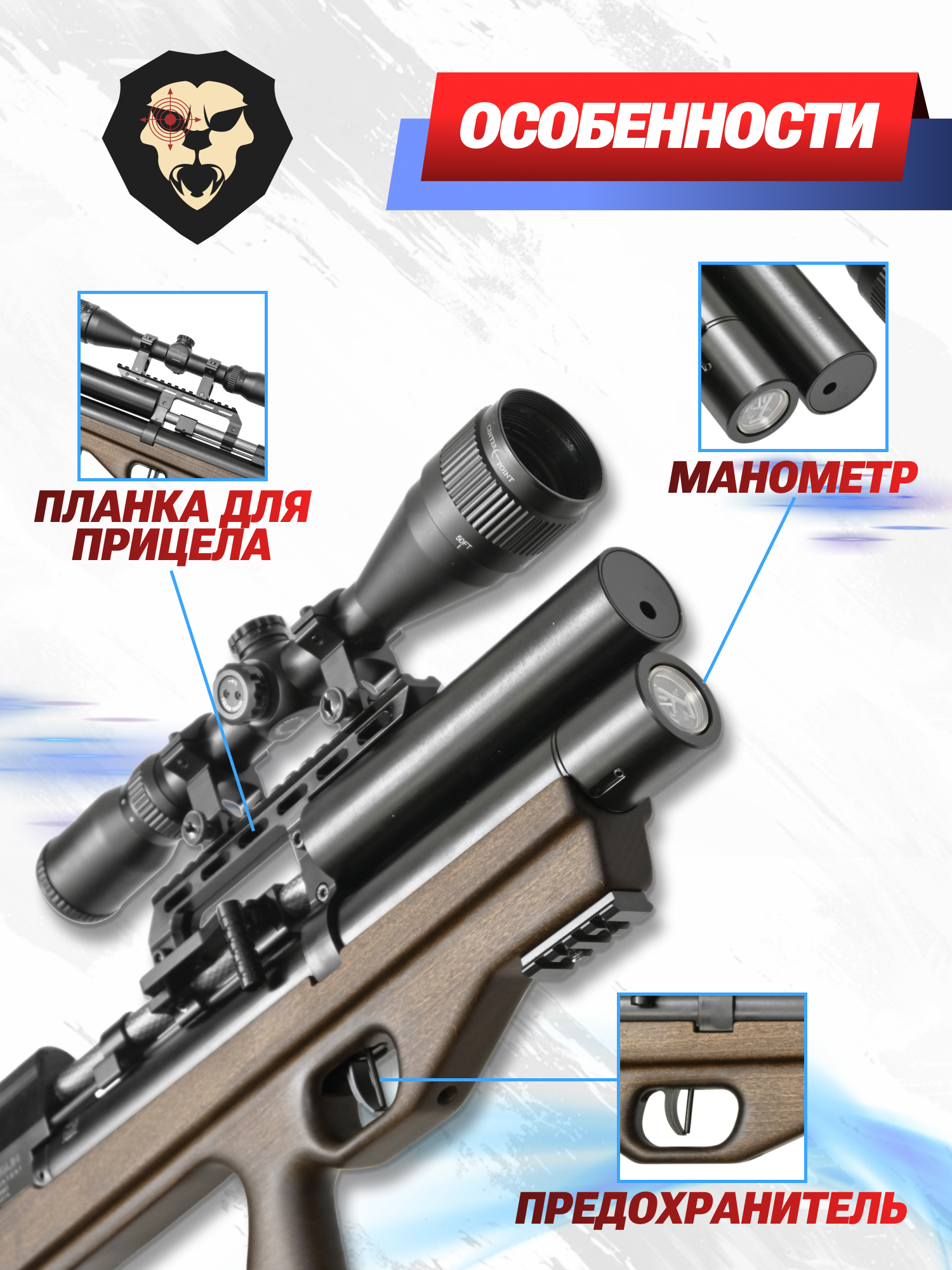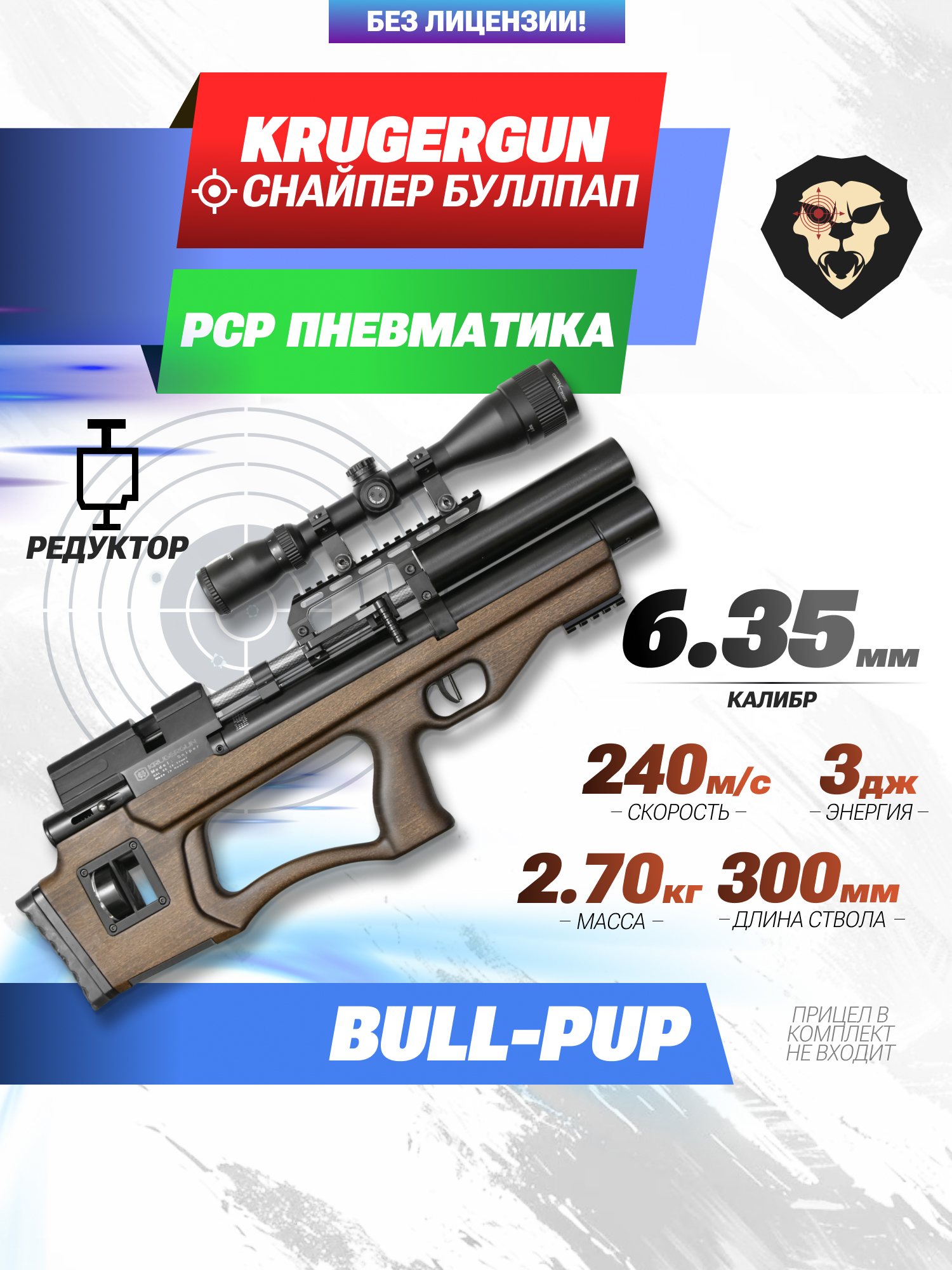 Пневматическая винтовка Krugergun Снайпер 6.35 мм Буллпап (300 мм, редуктор, высокий мостик, передний взвод, дерево) купить в интернет-магазине Popadiv10.