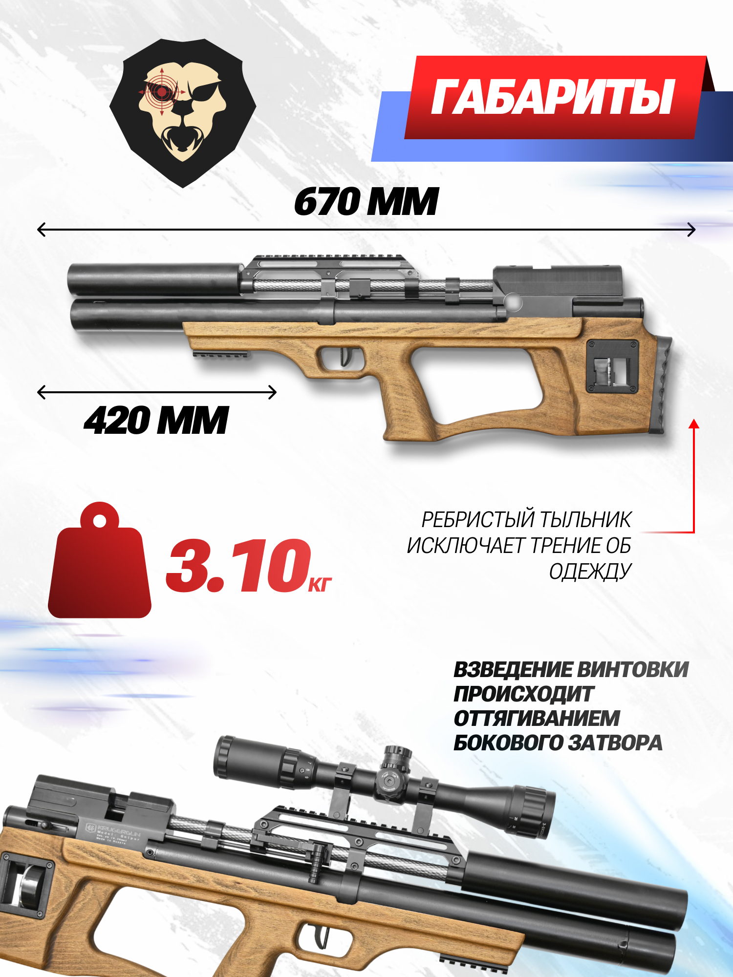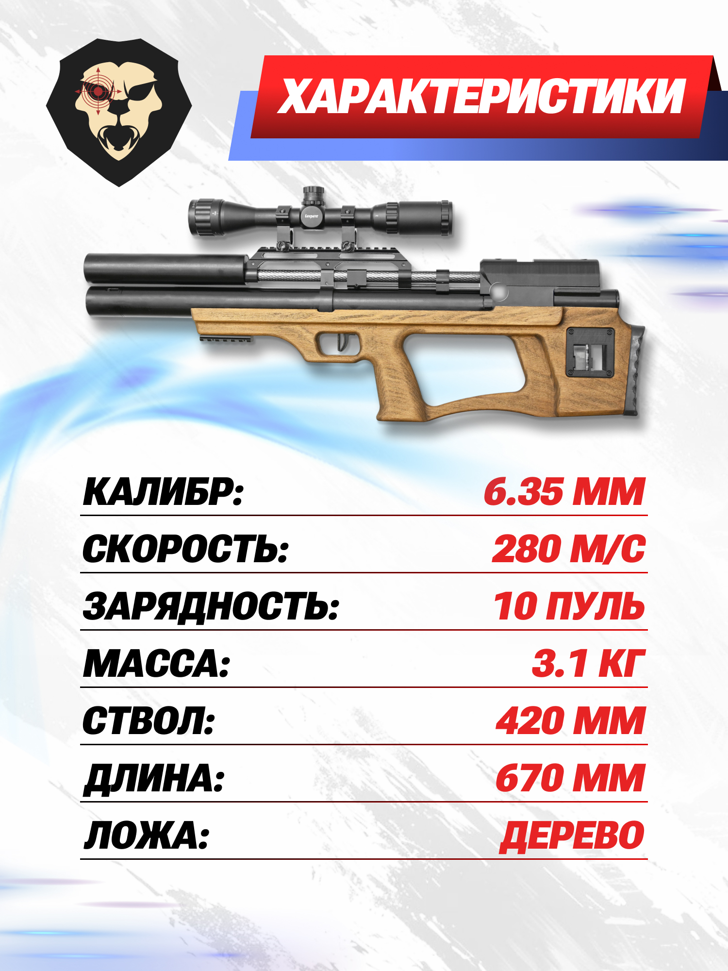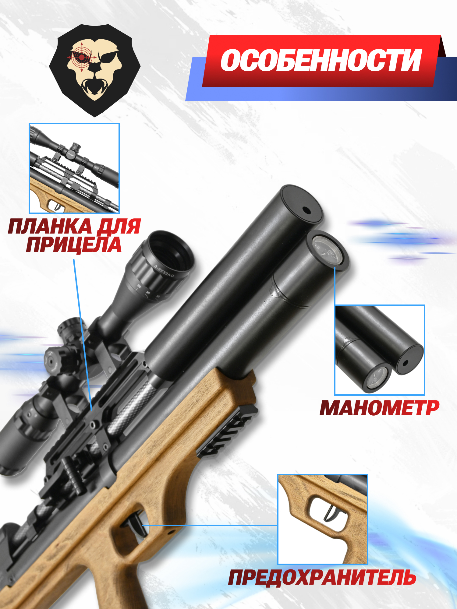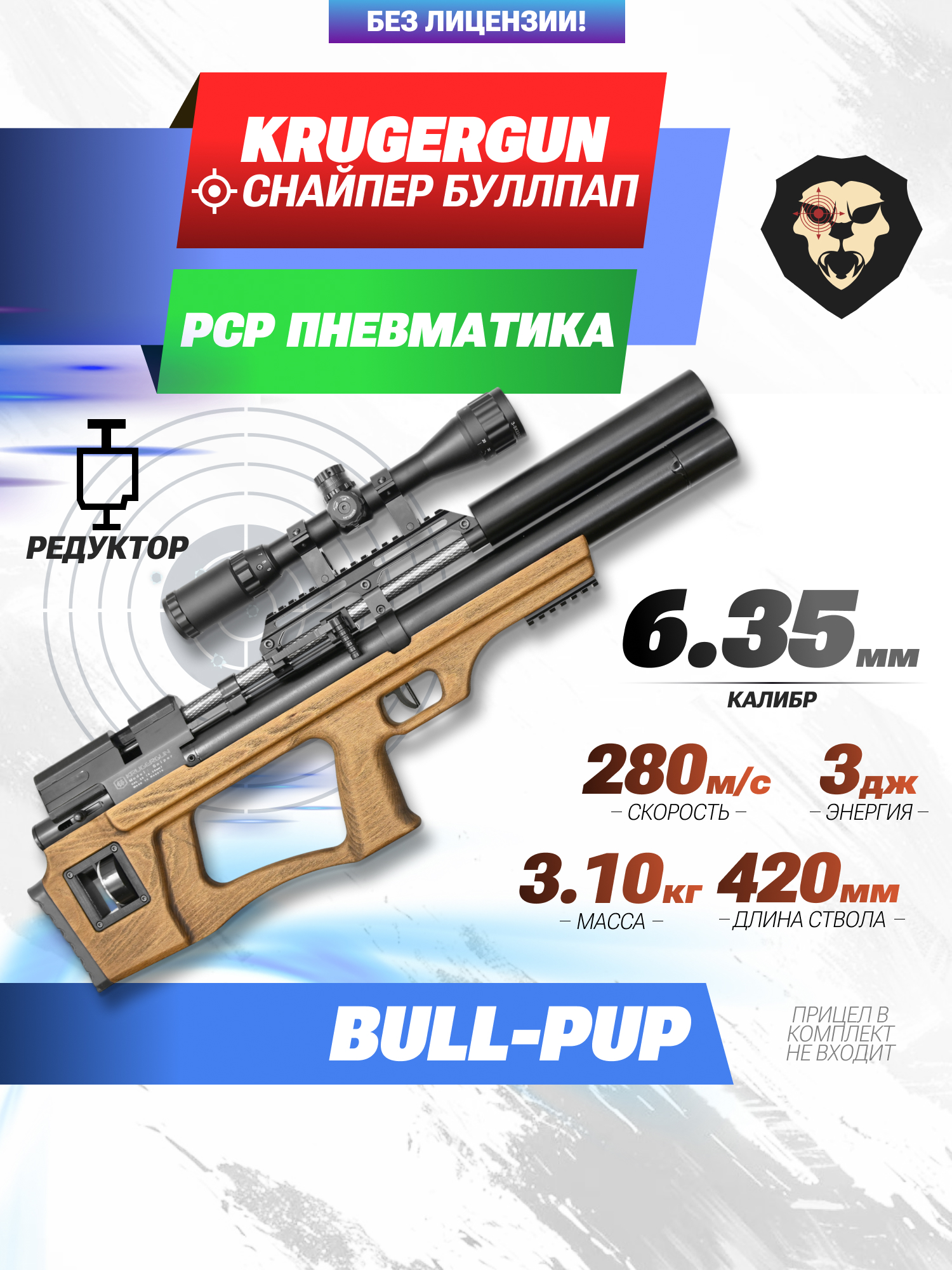 Пневматическая винтовка Krugergun Снайпер 6.35 мм Буллпап (420 мм, 510 резервуар, редуктор, взвод передний, дерево) купить в интернет-магазине Popadiv10.