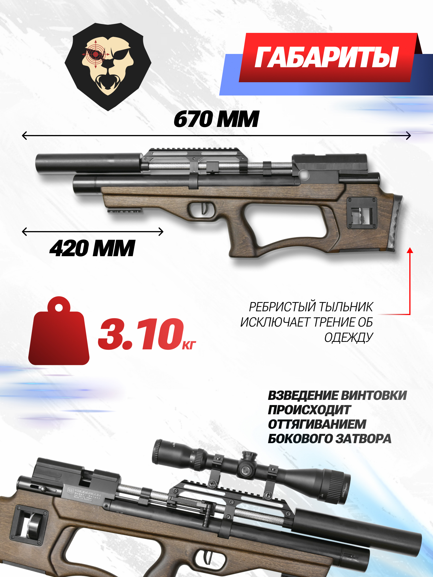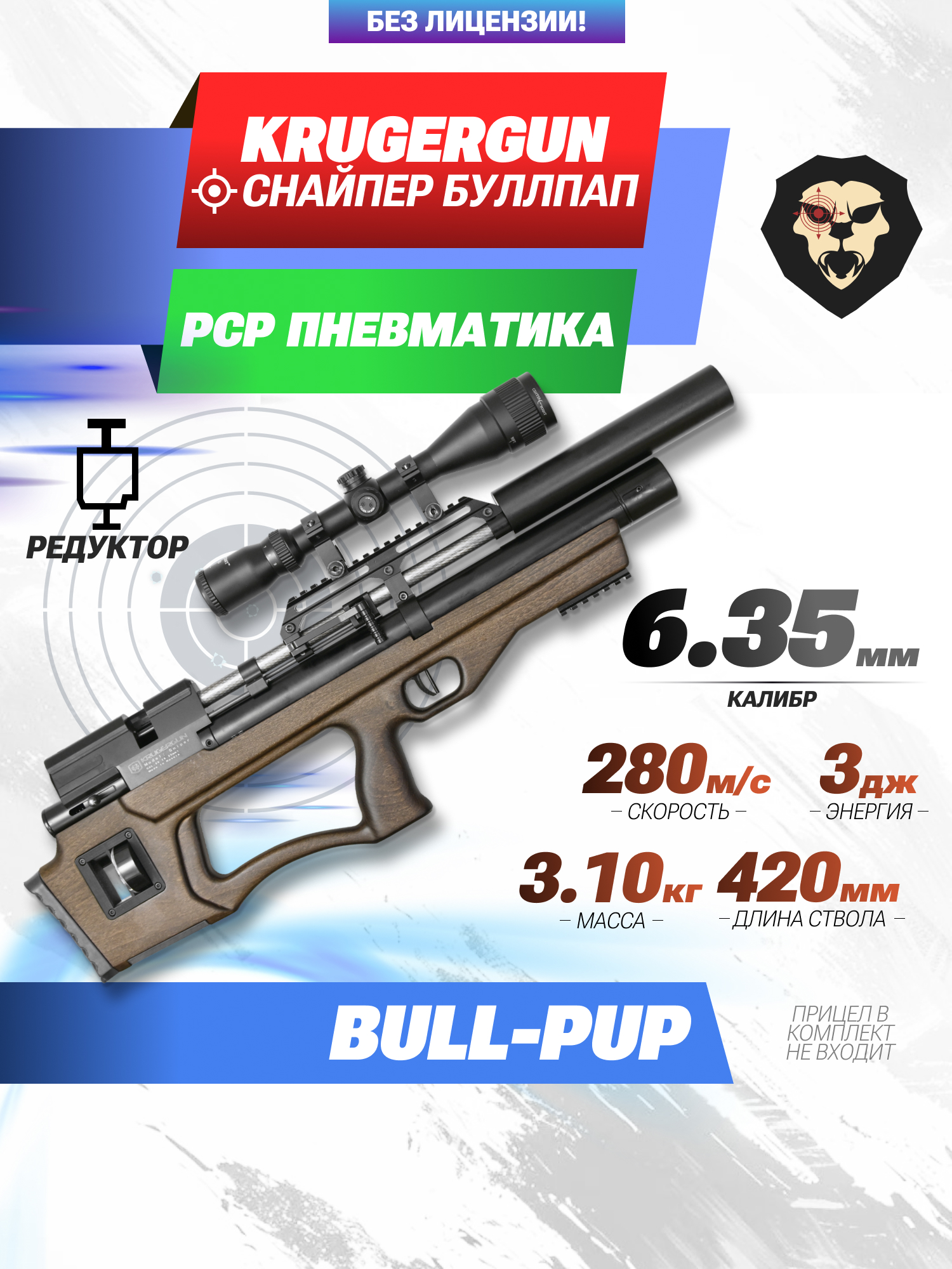 Пневматическая винтовка Krugergun Снайпер 6.35 мм Буллпап (420 мм, редуктор, ресивер 430, взвод передний, деревянная) купить в интернет-магазине Popadiv10.