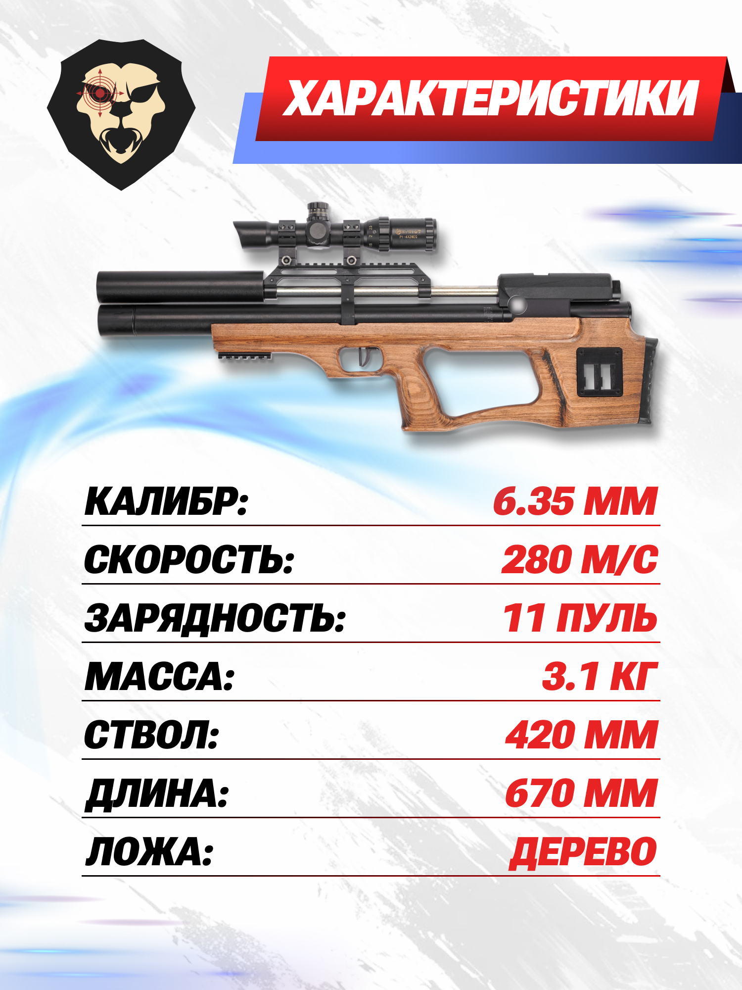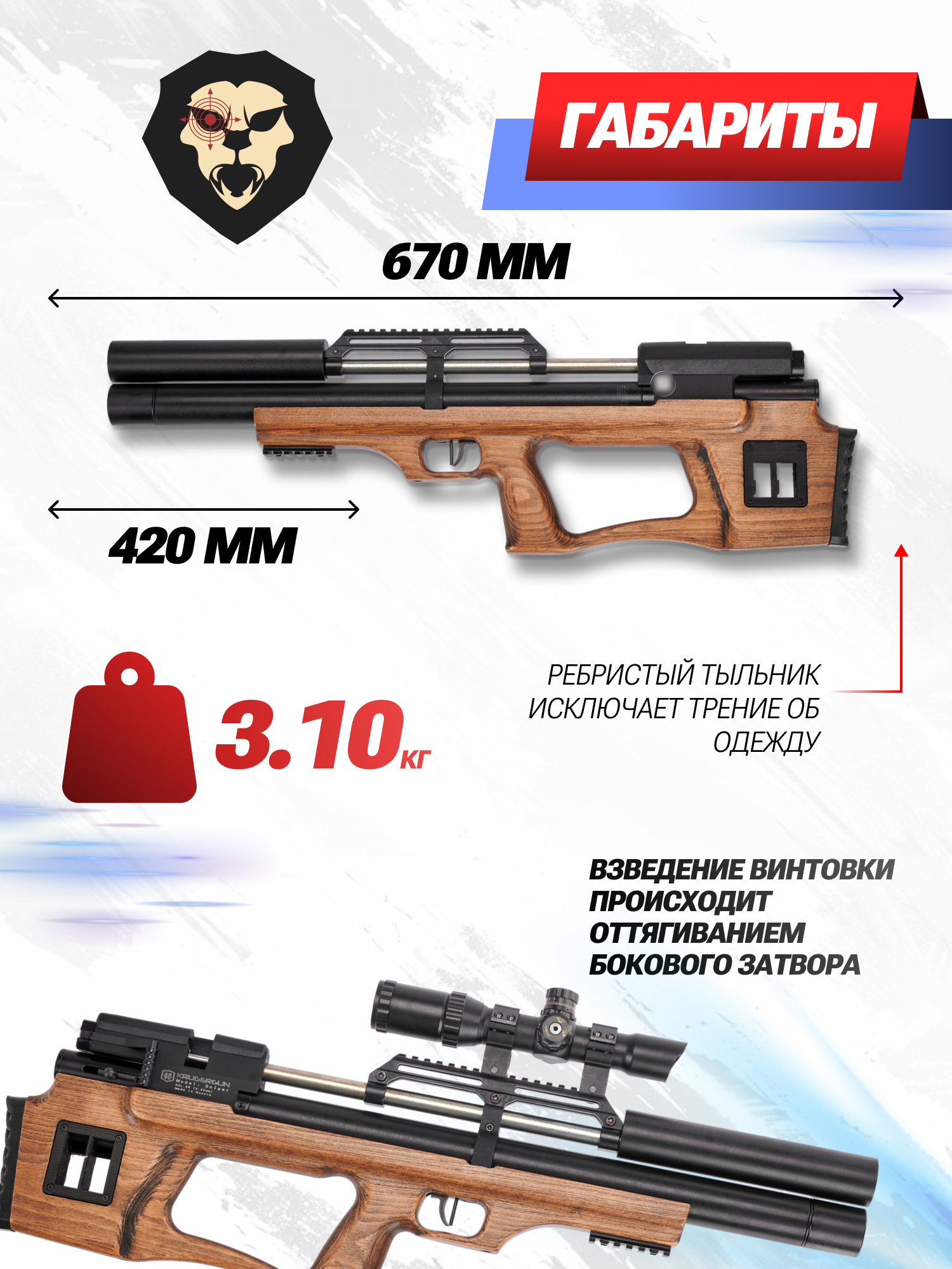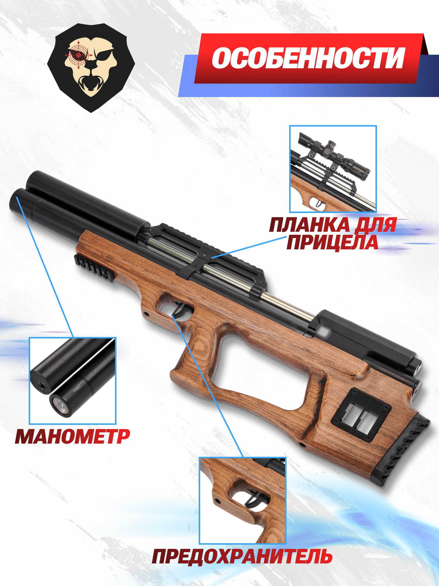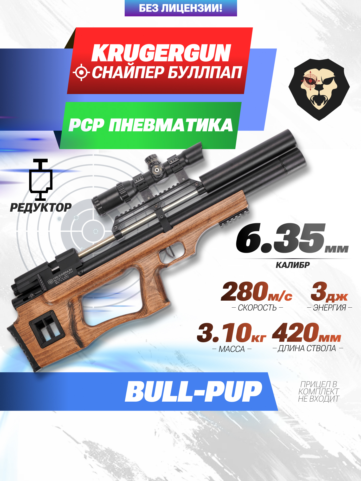 Пневматическая винтовка Krugergun Снайпер 6.35 мм Буллпап (420 мм, резервуар 510, редуктор, дерево) купить в интернет-магазине Popadiv10.