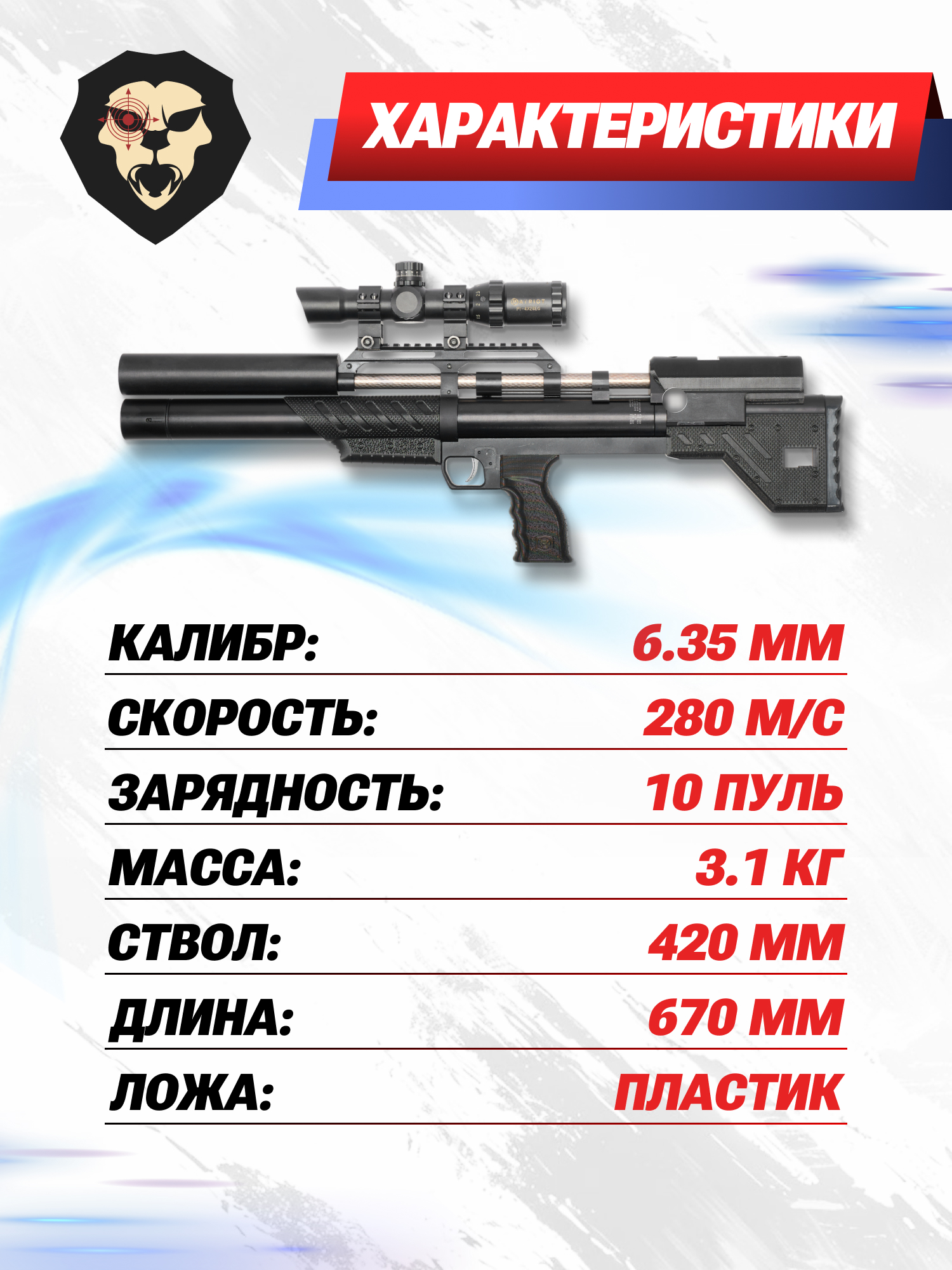 | Тип | PCP пневматика |