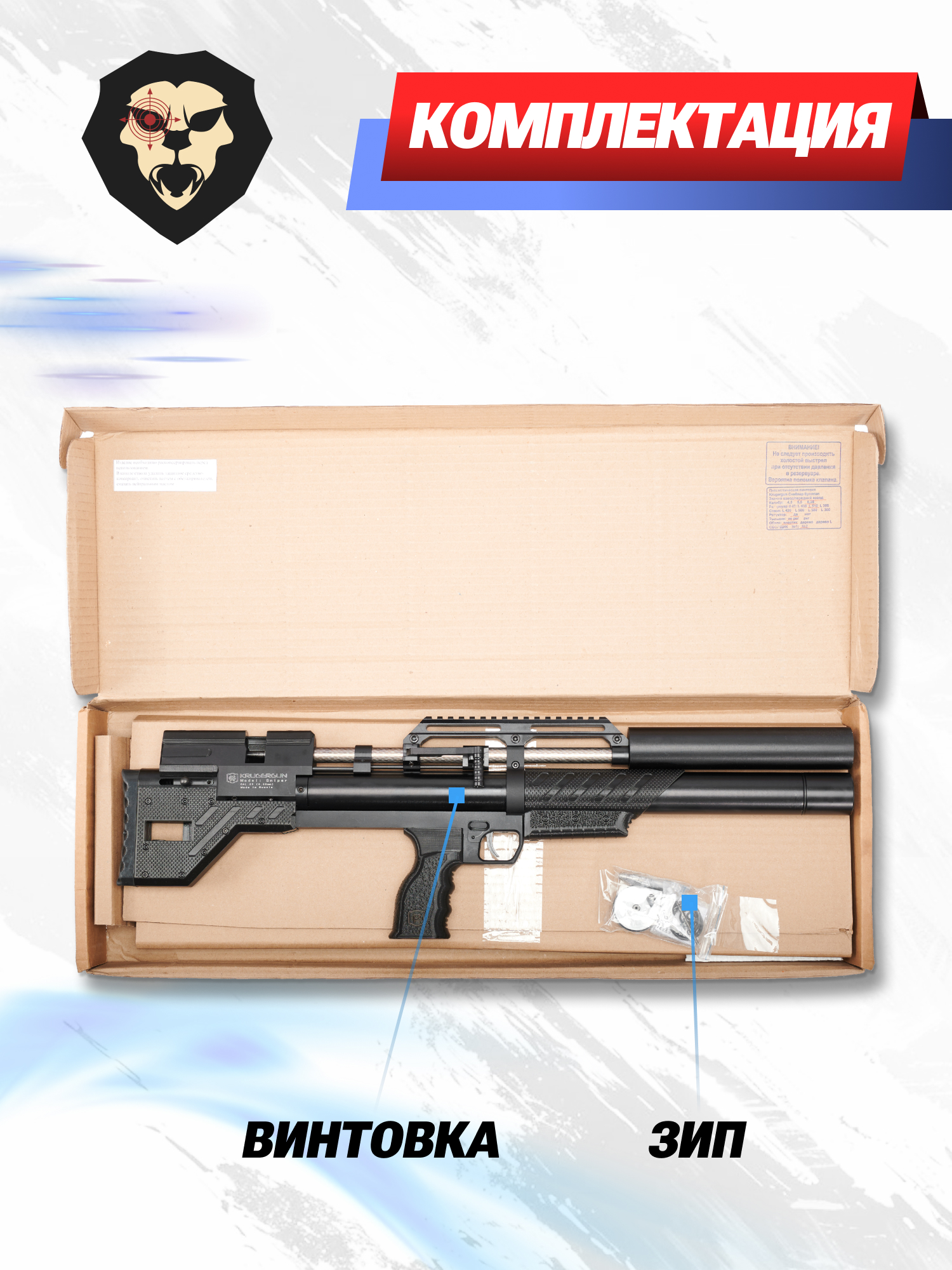 | Комплектация | Винтовка, комплект уплотнителей, упаковка, заправочный штуцер, магазин, краткая документация, копия сертификата (по запросу покупателя) |